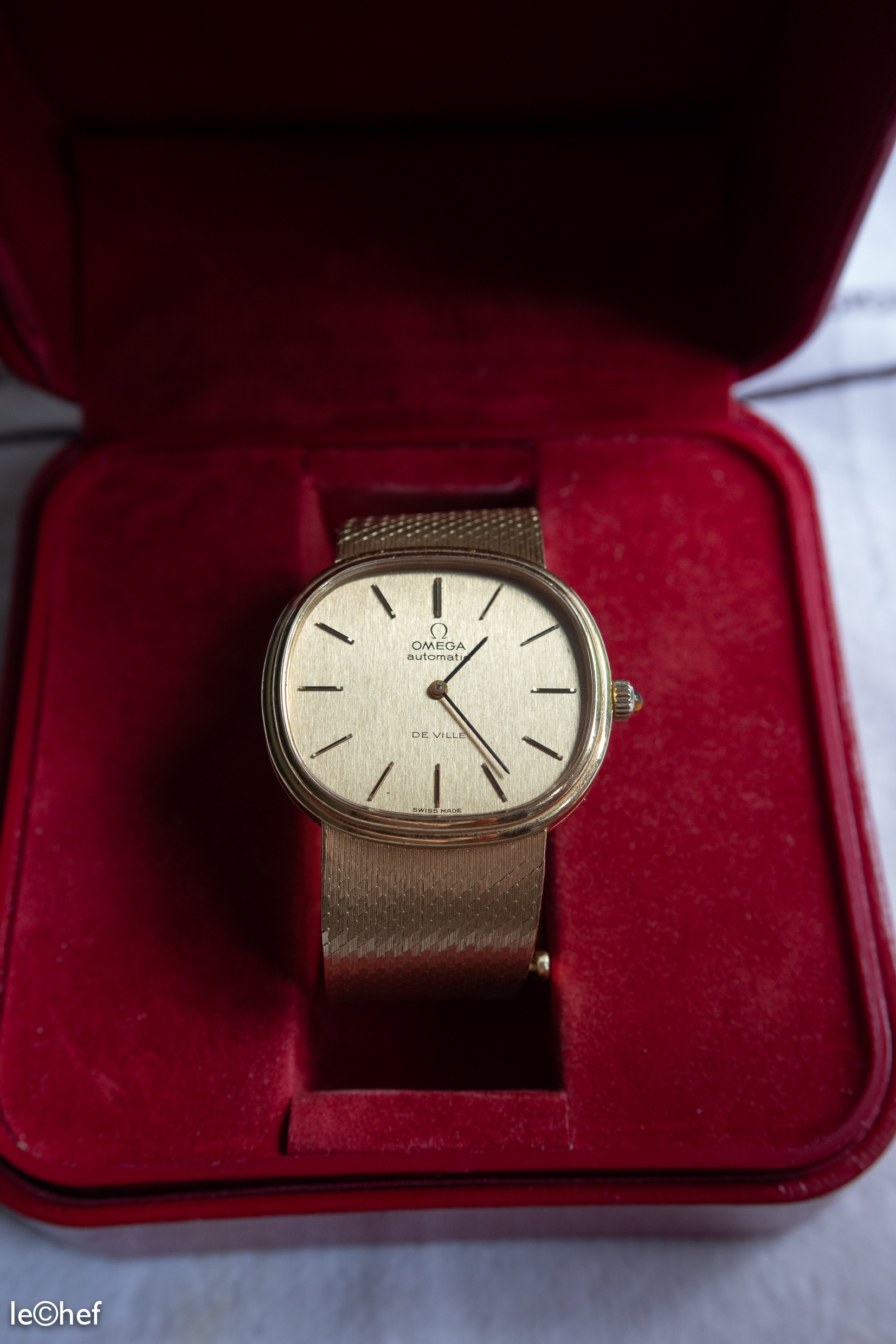 ·A friend has asked me to help him find out more about this watch. His wife bought it for him in London 20 years ago at a used jewelry store. It has box but no papers. It's a DeVille automatic, and from the case back and clasp appears to be 14K or 18K gold. I'm guessing it's early/mid 70's but I cannot find anything of real detail about it on line. I have also suggested that he insure it, but have no idea for how much. Any help would be much appreciated. Shots are attached.