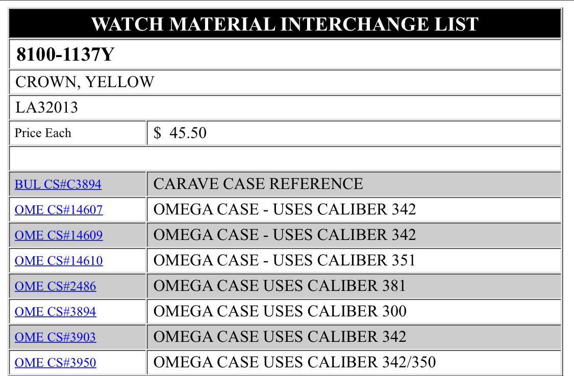 Jules Borel shows two gold crowns listed by Omega as fitting this case reference.