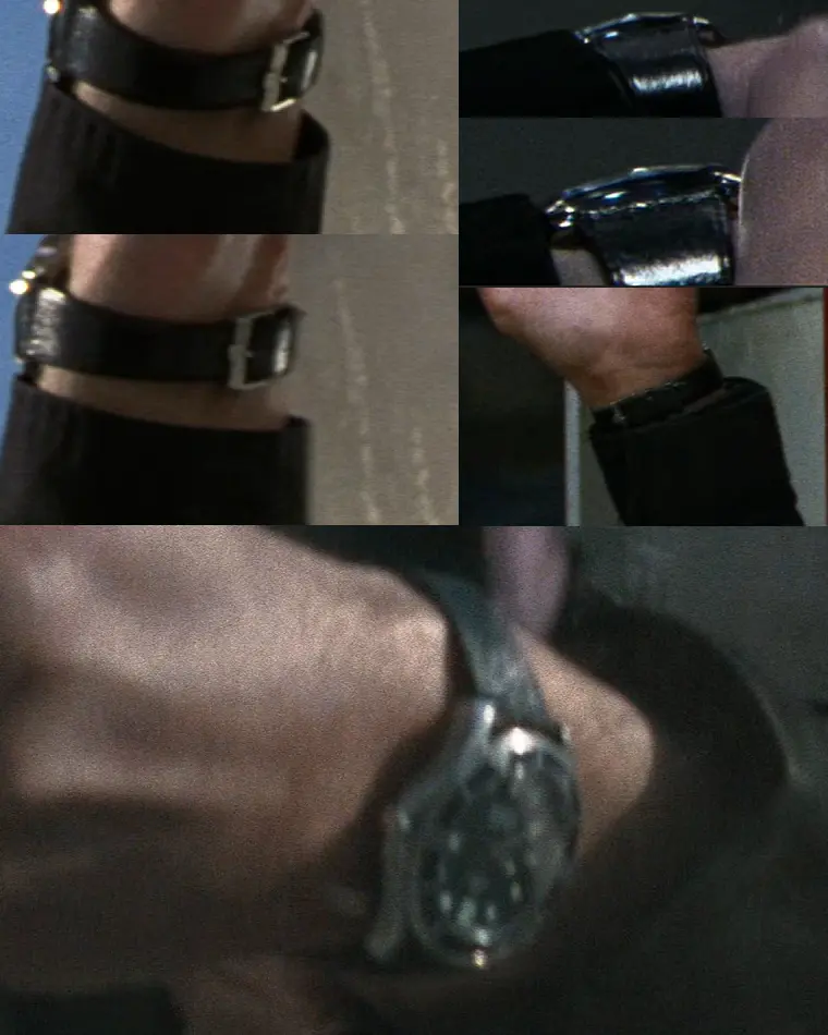 路Alright, I like a puzzle. I was on my semi-annual rewatch of GoldenEye, this time on a 4K web stream version from Amazon. While it's not a great 4K master, there is starting to be enough detail that you can make out elements of the black leather strap used on Alec Trevelyan/006's watch, as well as Bond's watch in the prologue scenes - there is a scene where they both have this configuration in the same shot so it's not one watch being reused.