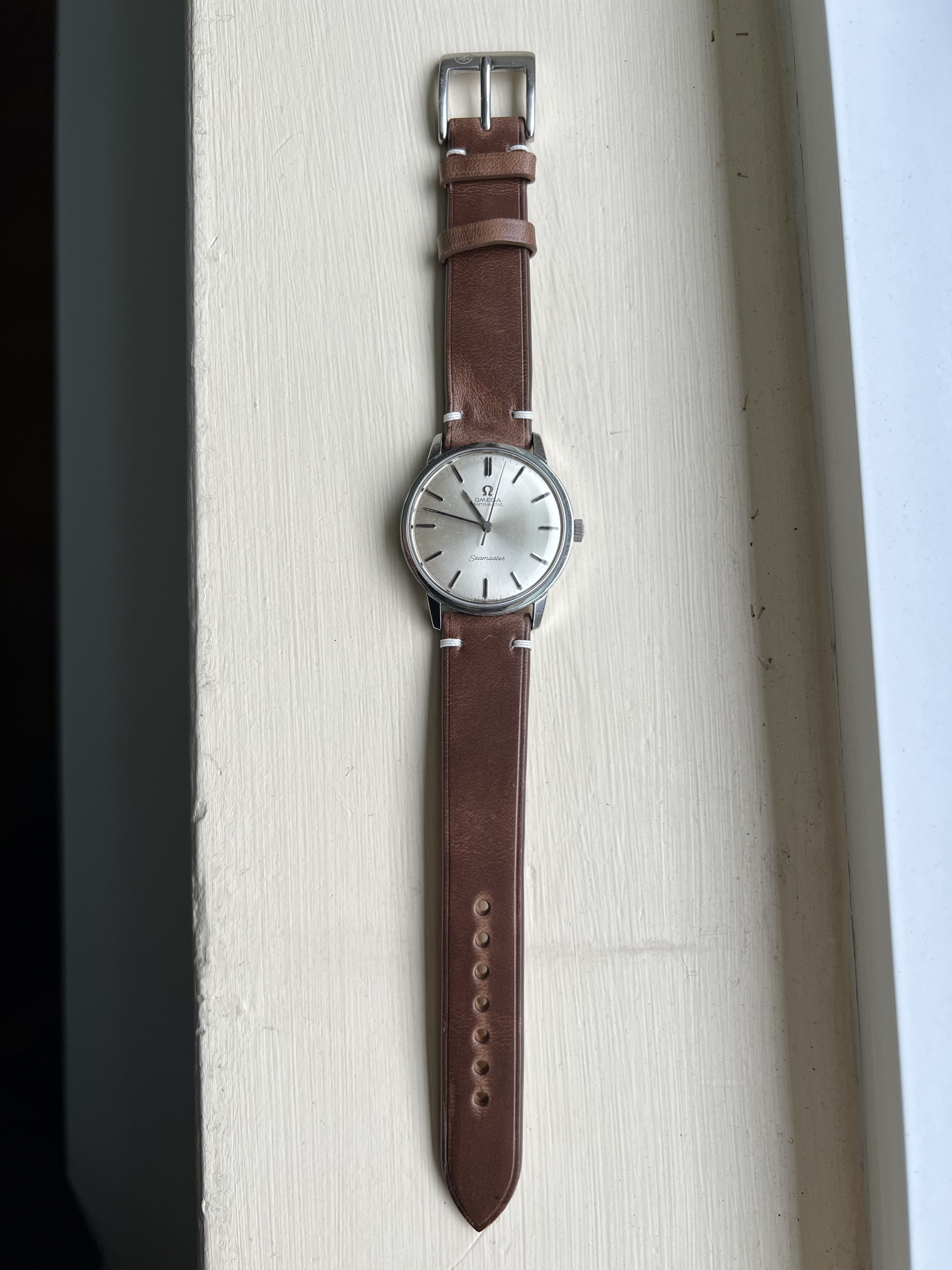 I recently picked up a 1966 Seamaster with this strap on it. I feel that the strap isn’t really a good fit and especially doesn’t fit the manufacture time period of the watch. Would it be a beads or rice strap or perhaps black leather?