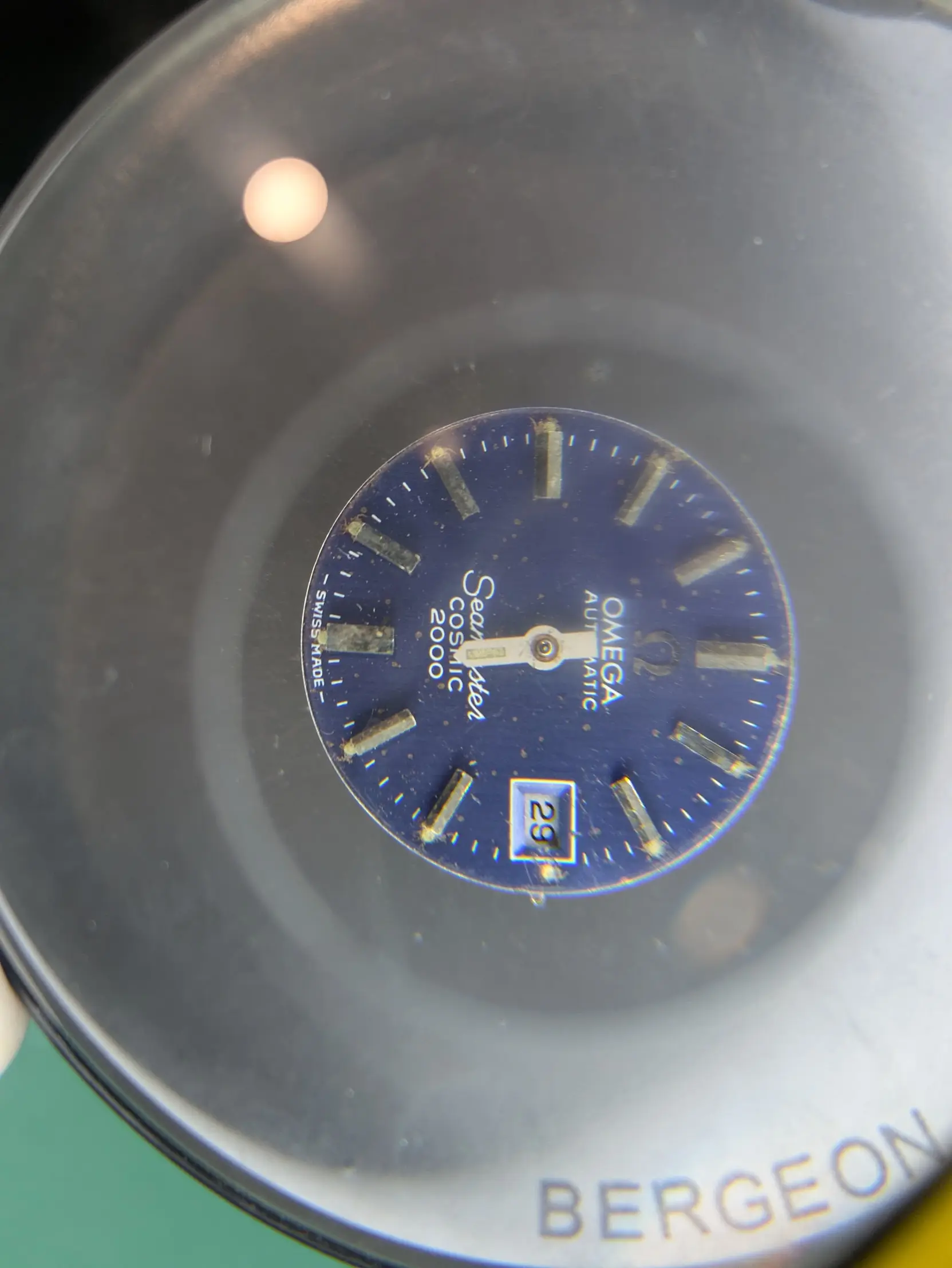 It LOOKS in the salmon dial watch like there is a red piece of .... something front and back, but I am not sure what it is! Does anyone know/have pictures? I'm on the fence about buying parts to finish the blue watch (its dial is bubbled/flaked off but it is oddly attractive). I went to steal a pallet fork from it today (thanks to getting the wrong one in the mail on a different project, a 681 Ladies Dynamic), and noticed the big problem I thought i had (a VERY loose rotor!) ended up being that the automatic pivot wasn't tightened down, so it is MORE fixable than I thought.