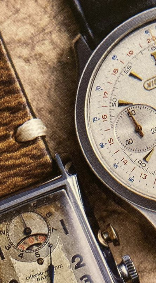This image came up from a Japanese fellow that I follow on instagram back in February. It's a photo of a page from the "Chronos" Magazine from Japan, but his original image was focused on the Nicolet watch next to this intriguing tank chronograph: