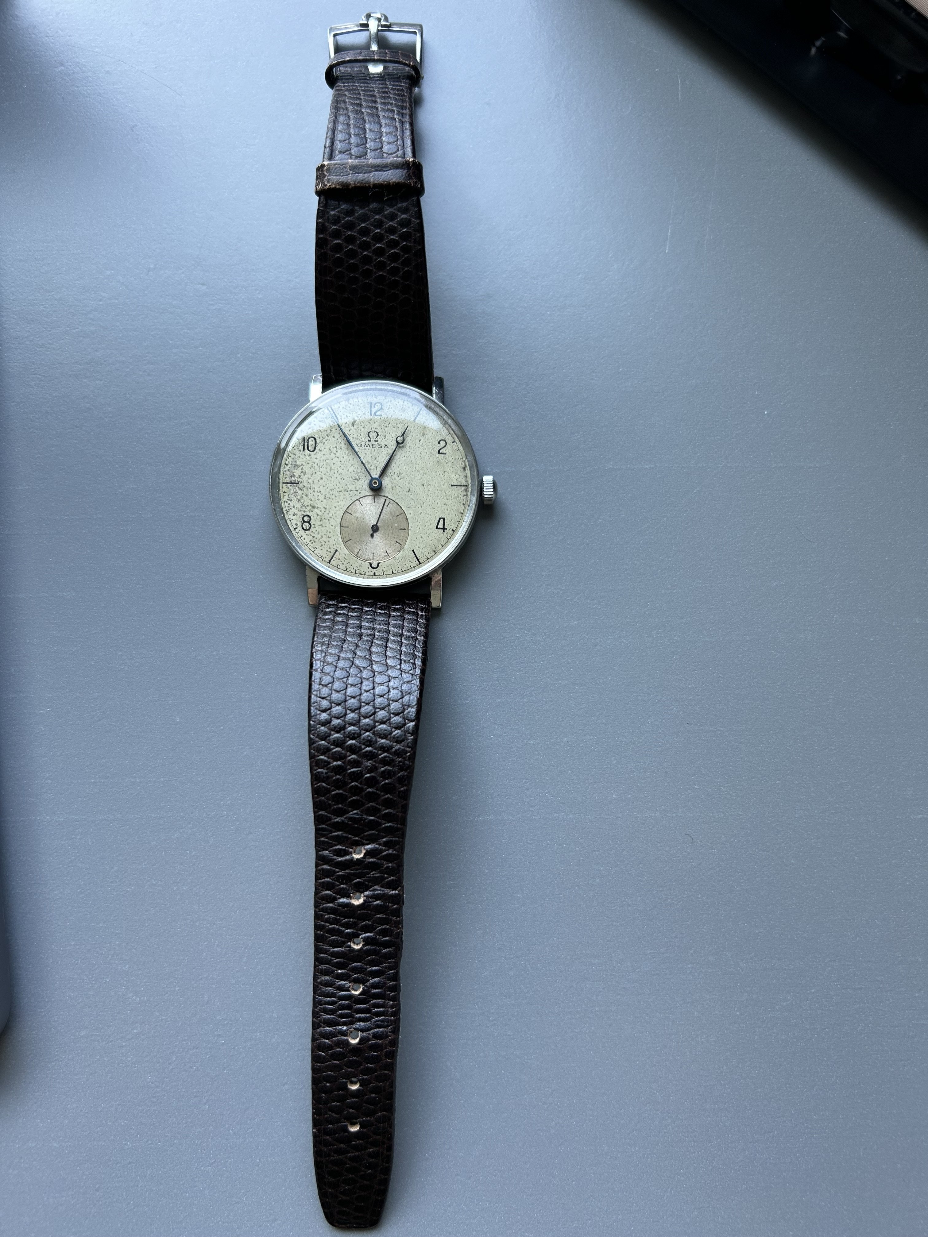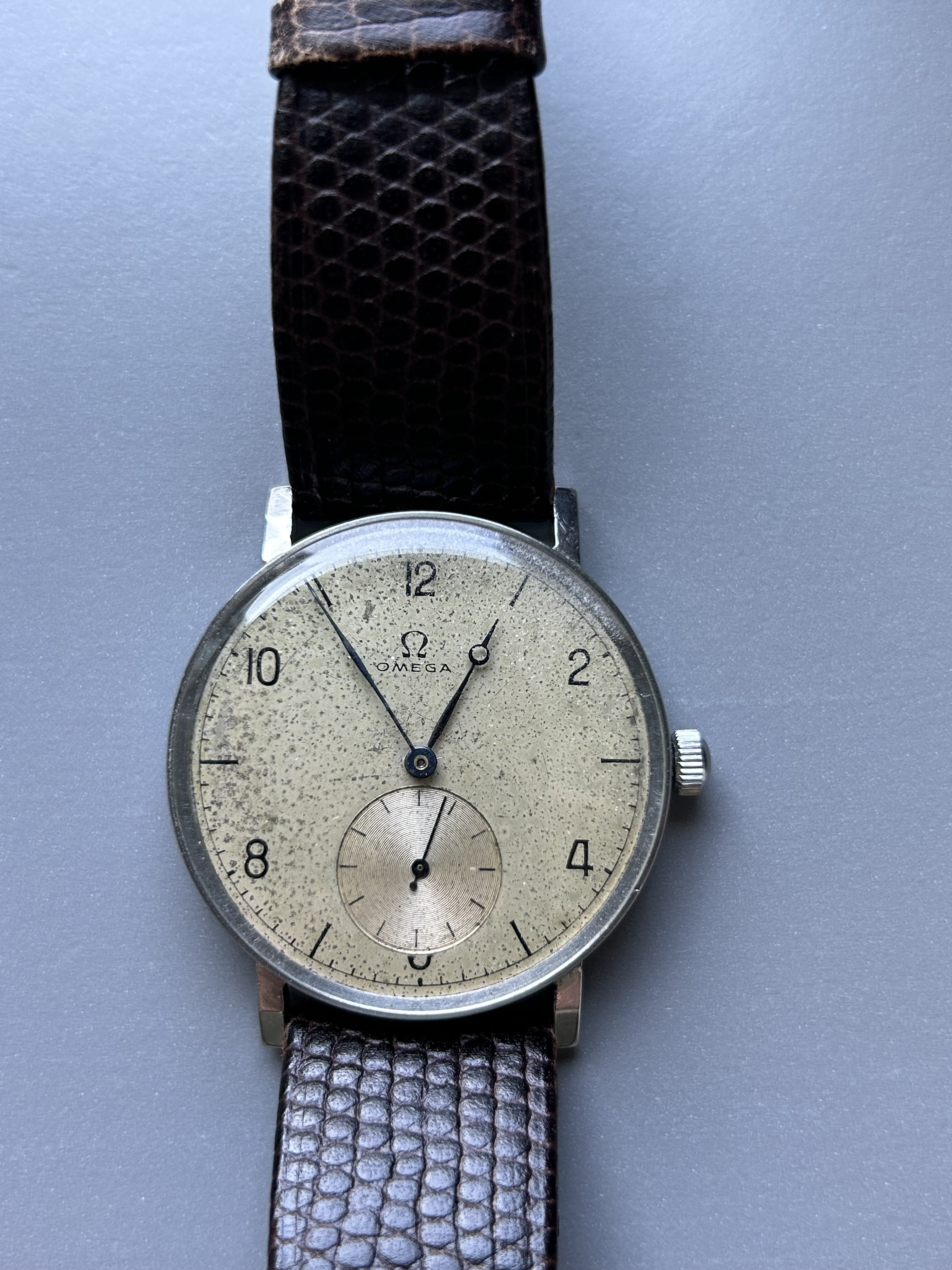 My uncle gave me this old Omega, which he believes is from the 50s or 60s. He got it decades ago, but he/I are unable to find any information on the model given the dial and hand combination. Any thoughts?