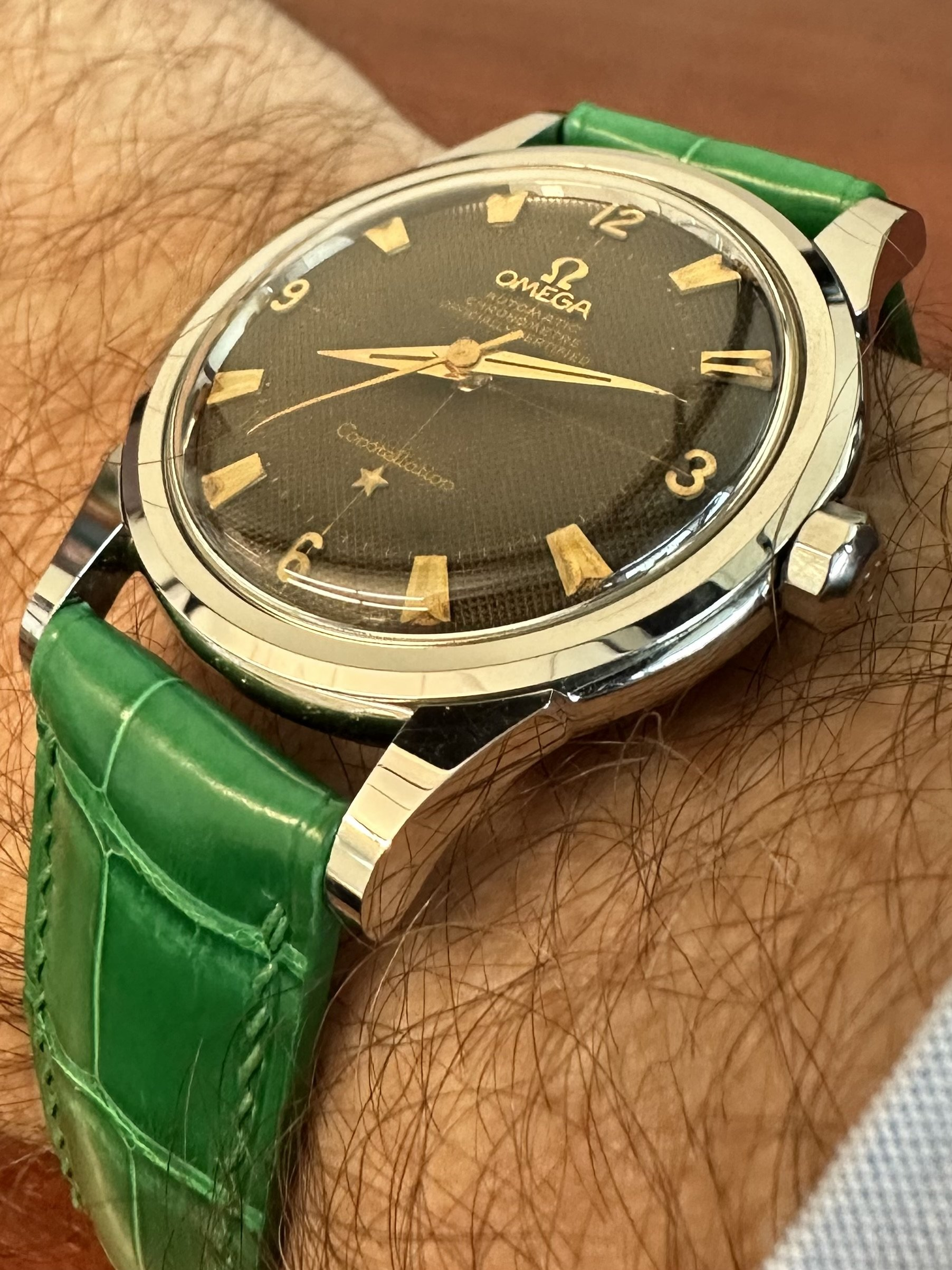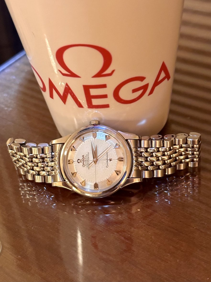 You definitely need a dress watch. If you want to stick with Omega and go new, a DeVille Prestige would be a good choice. If vintage, as I noted previously, you can't go wrong with a Constellation, but shop carefully and with advice from the forum because it's a minefield out there. Here are closer photos of a few of mine.