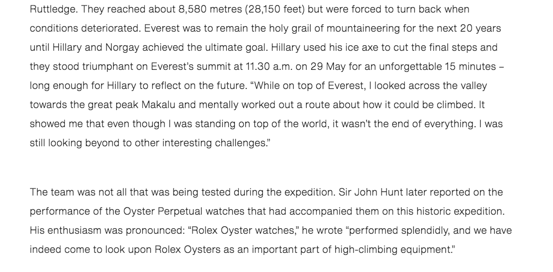 But none of these ever say the one thing necessary "Hillary wore a Rolex to the summit of Everest in 1953". Ask yourself why.