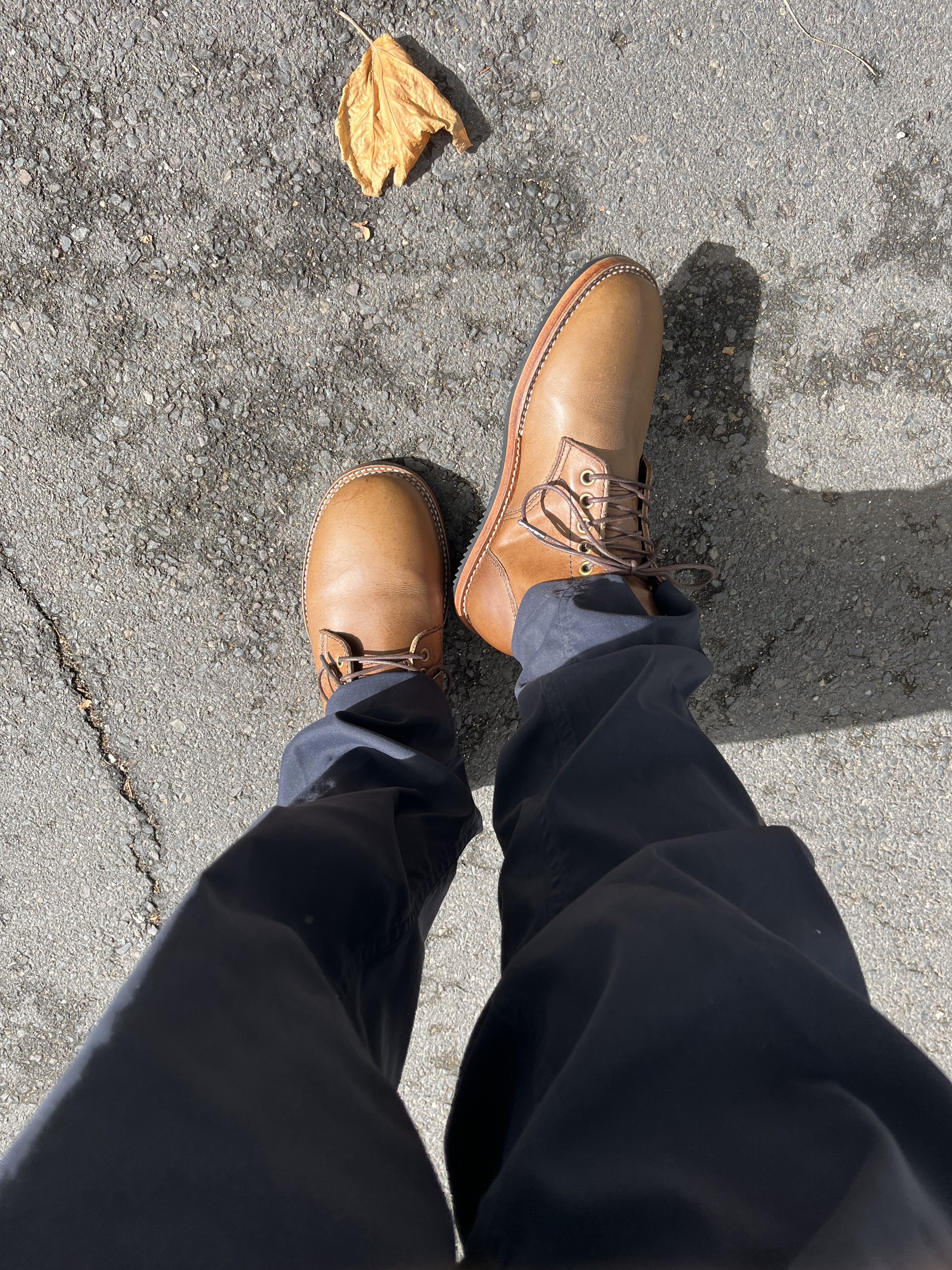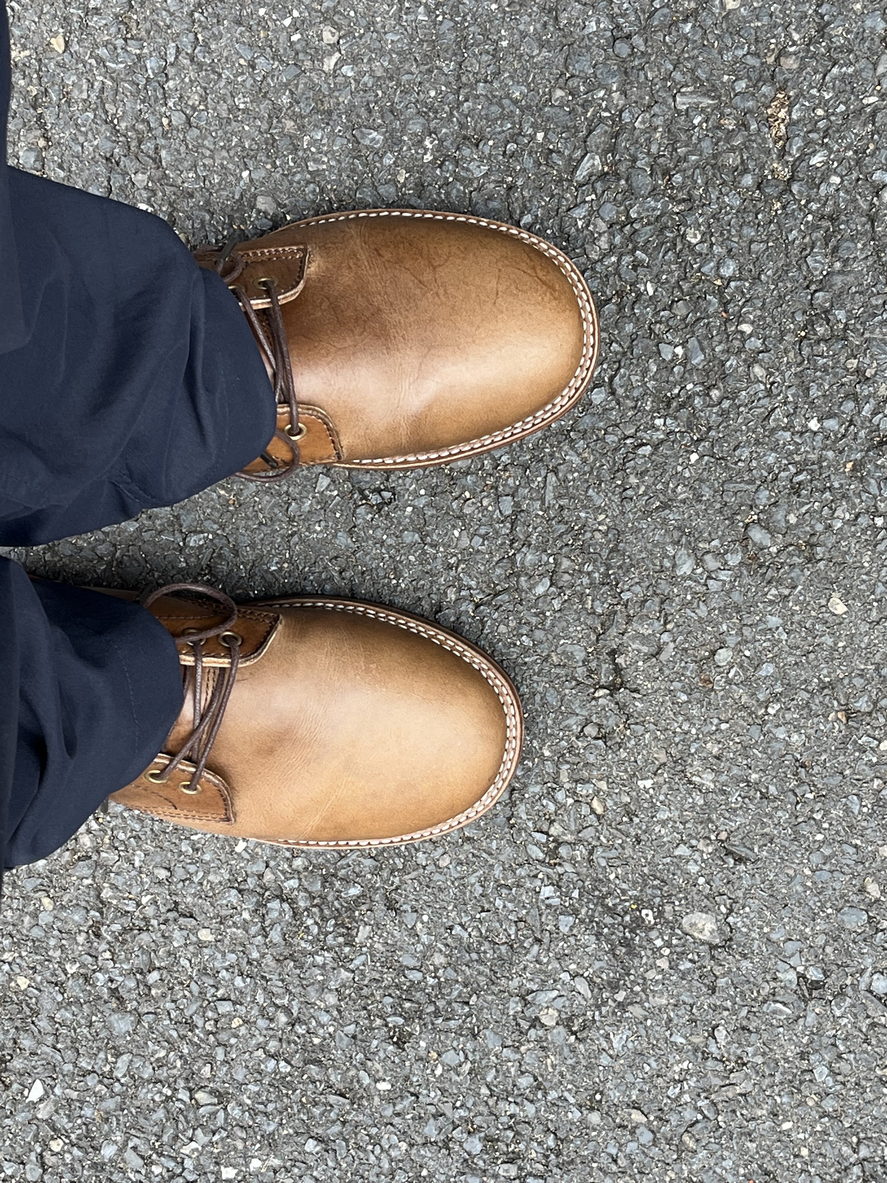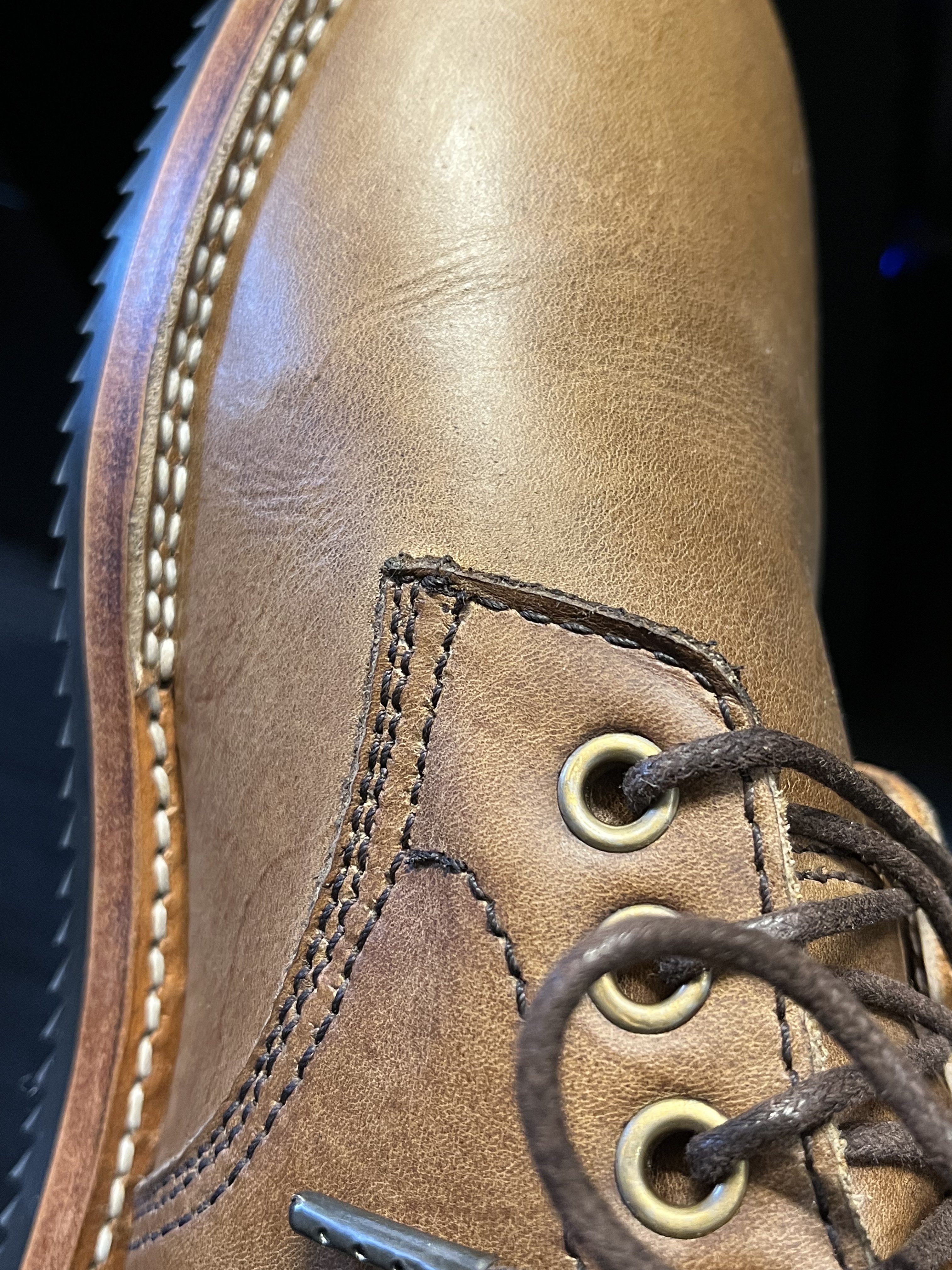 Something worries me tho. Please see below picture - super tiny "cracks" are visible on both toe caps. Very difficult to capture with phone camera. Noticeable only under heavy light and specific angle. I can barely feel it with my fingers. Leather is nourished properly so this is not because of drying out. Am I overreacting?