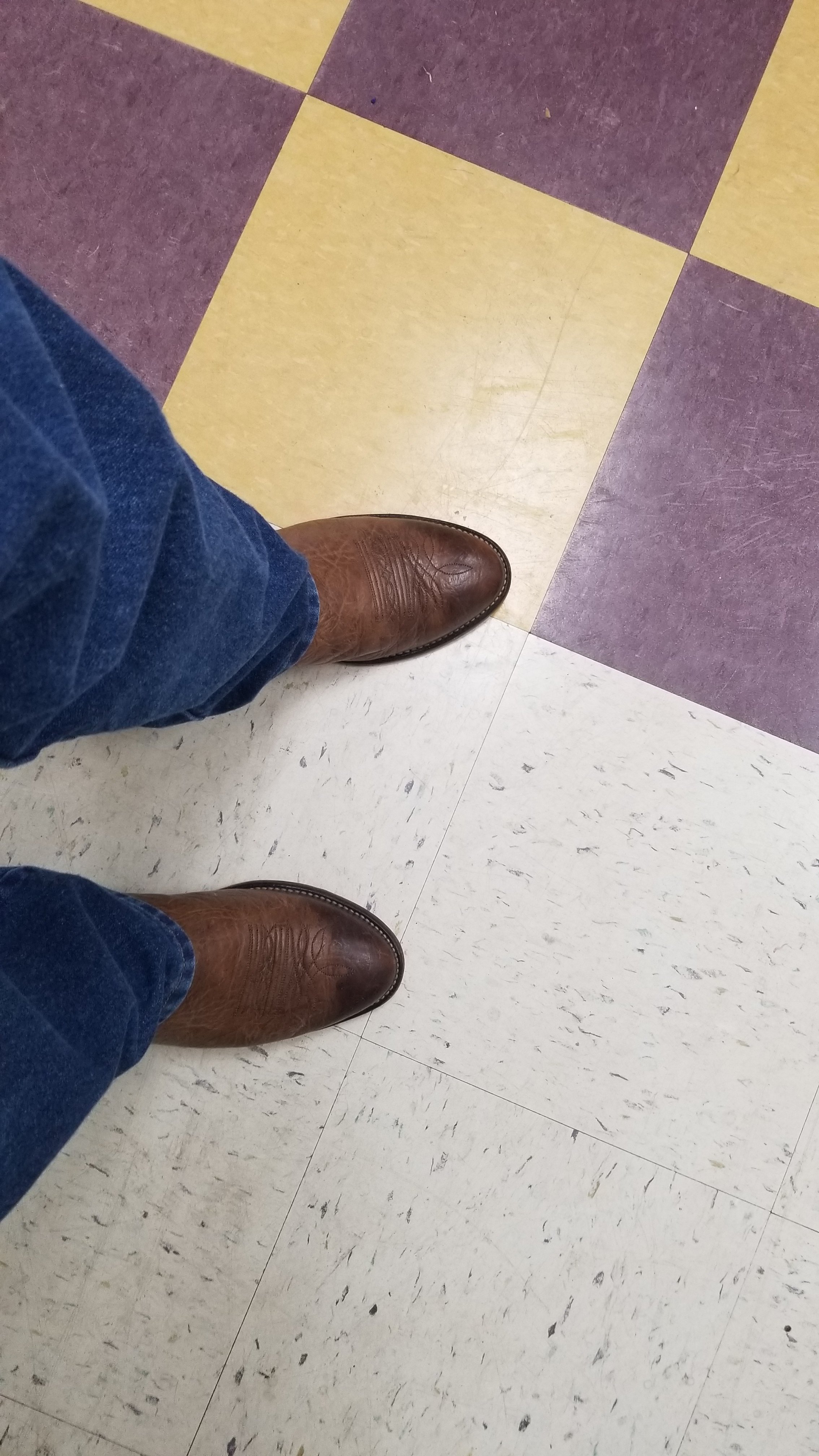 Same thing I wear most everyday, an old pair of bullhide Noconas. When I'm not in these it's a pair of calfskin Luchesse, or for fancy dress a pair of full quill ostrich Rios of Mercedes. I also have a black pair of ostrich Luchesse if I need to wear a suit. Geez, when they're all listed I sound like Imelda Marcos.
