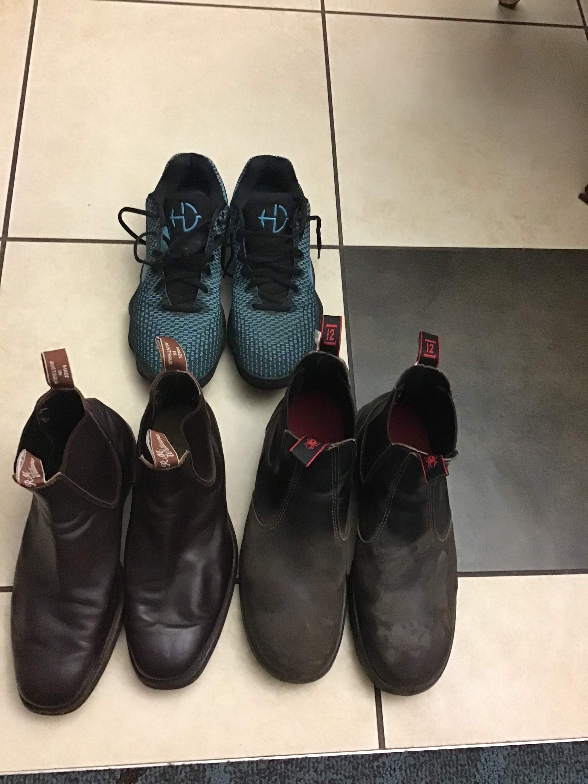 The UA smart shoes, plus hooka, sandals, cycling shoes, dress shoes. I need y to get some boots again, red wings again I don’t need them for work, but awesome stuff.