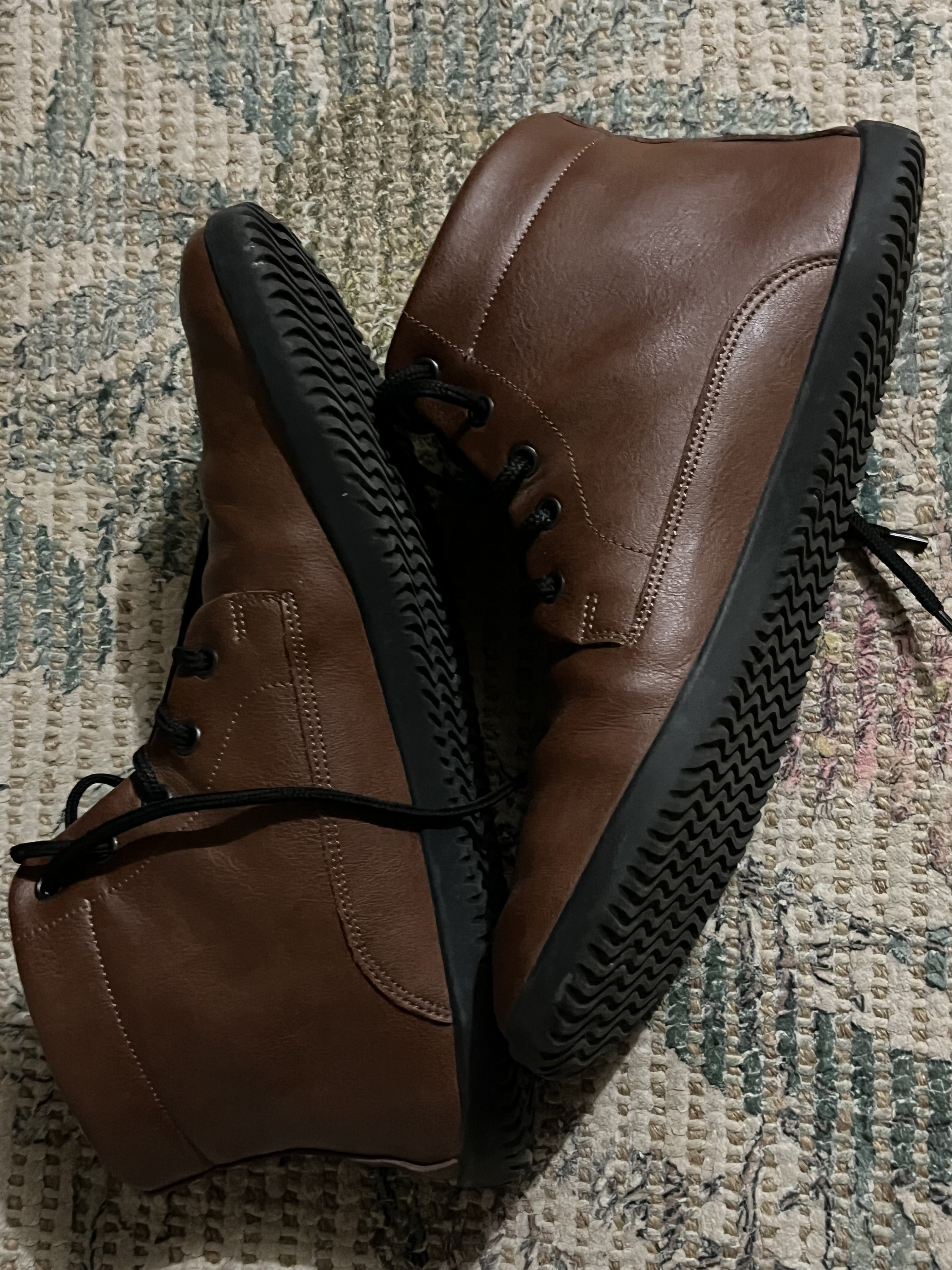Regarding heeled shoes that do not pass the shock straight up into your leg I strongly recommend Alden's with a commando sole. It's much more comfortable than Commando soles I've owned and worn from any other brand. I walked 4 miles today in an Alden with a commando sole and had some slight discomfort in the ball of my foot but nothing you'd not expect after walking 4 miles.