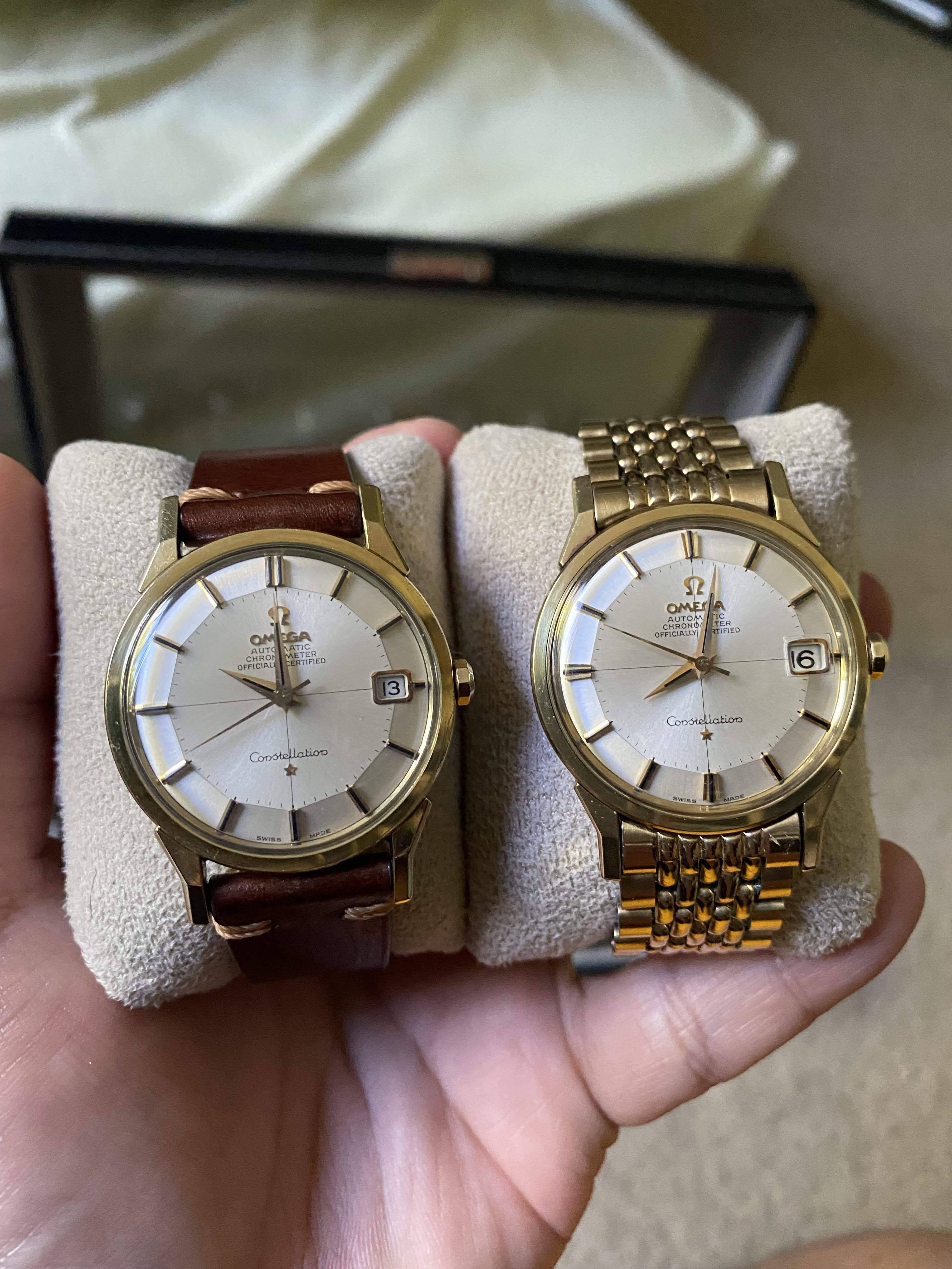 For the crown, my understanding is that Omega no longer produces the 10-sided crown, so many of them are replaced. I guess what stands out to me is how many examples of replaced crowns there are. It's more noticeable because the knurled crown looks very different than the decagon shape. Most other vintage watches that have crowns replaced are harder to notice. My question is: do you think Omega Constellation owners serviced their watches more often than owners of other watches? And if so, is there a reason that the crown in particular keeps needing to be replaced? Were the stock crowns wearing out? Is this a known issue with all Constellations - that they'd eventually need a crown replacement?