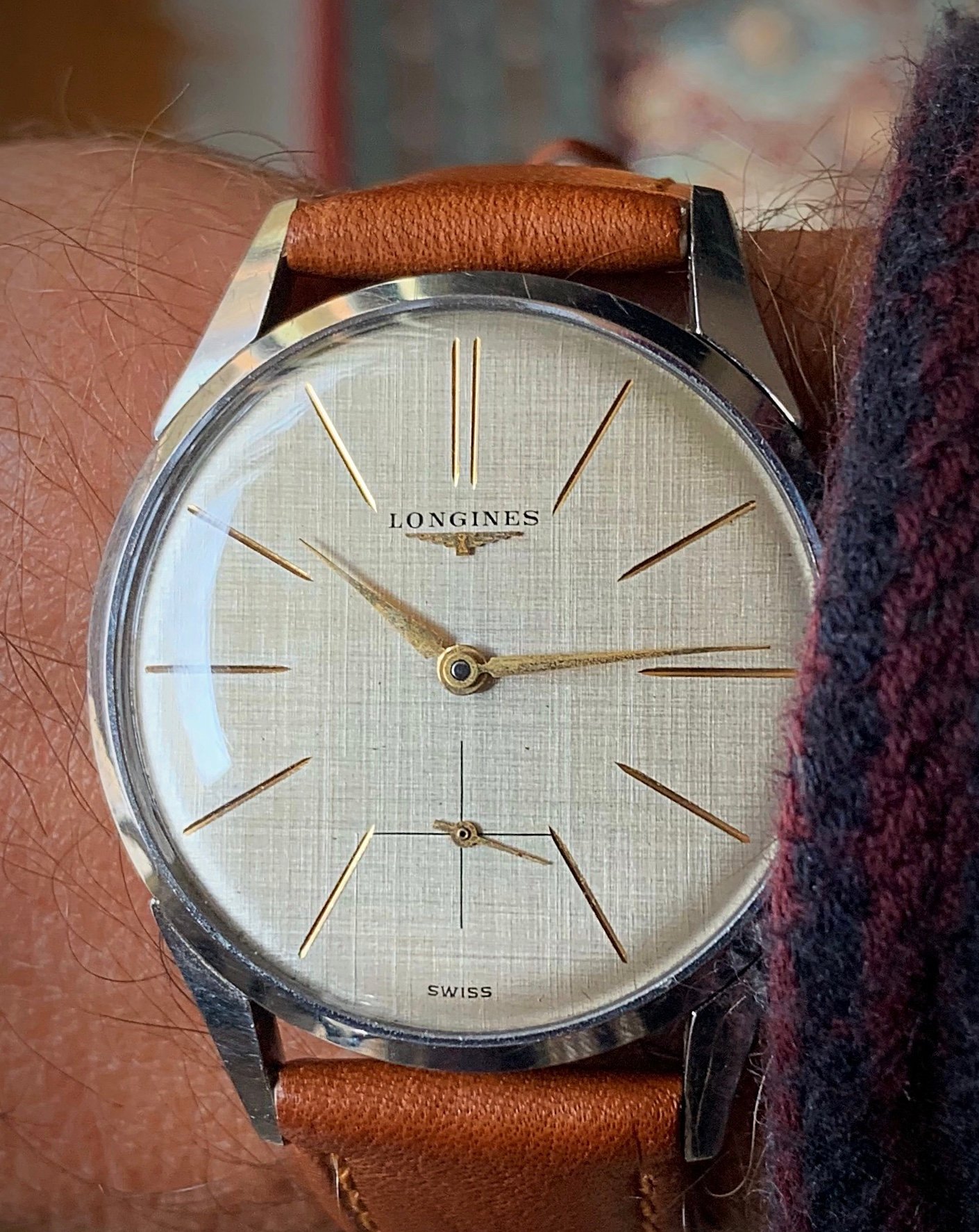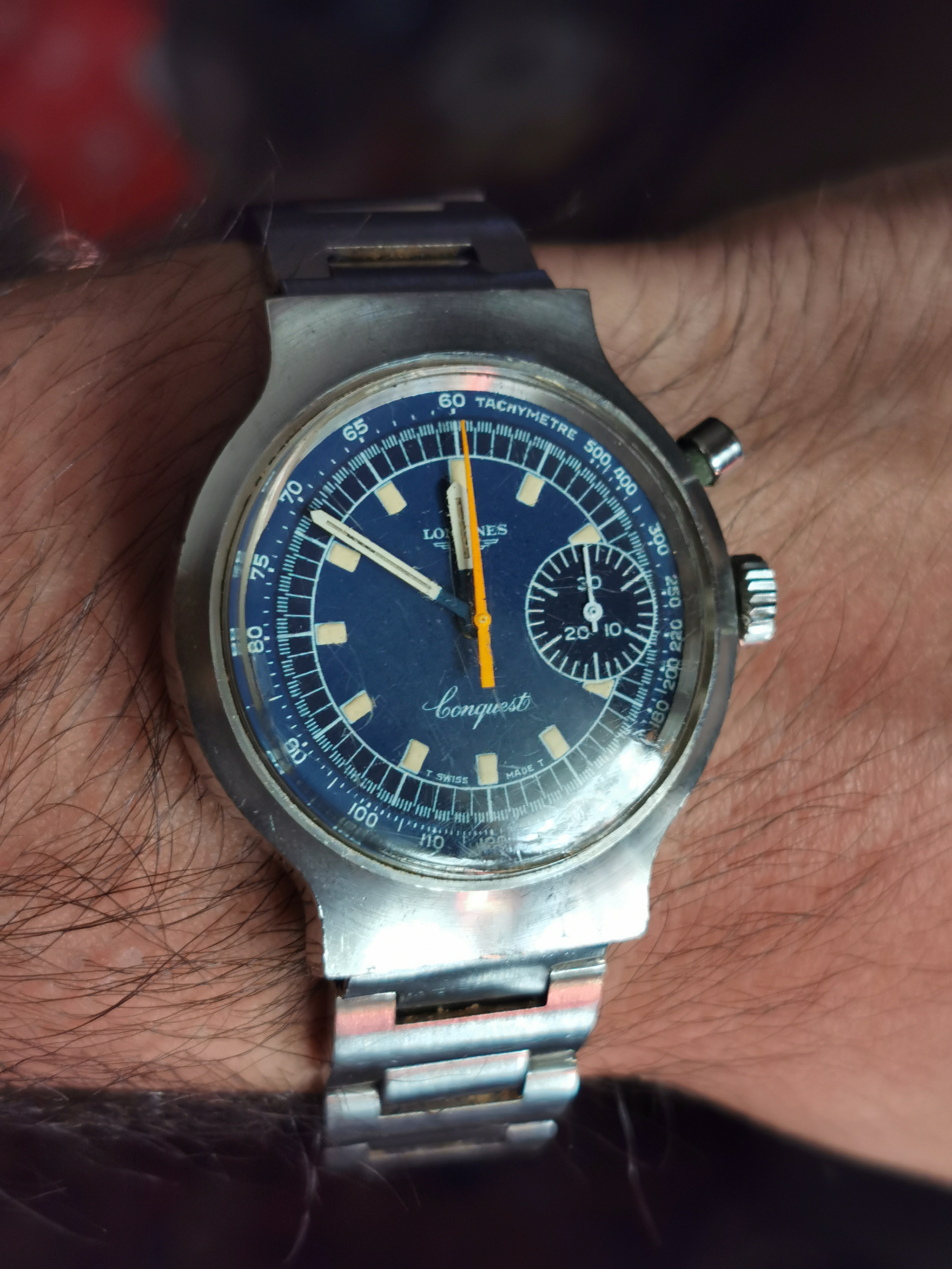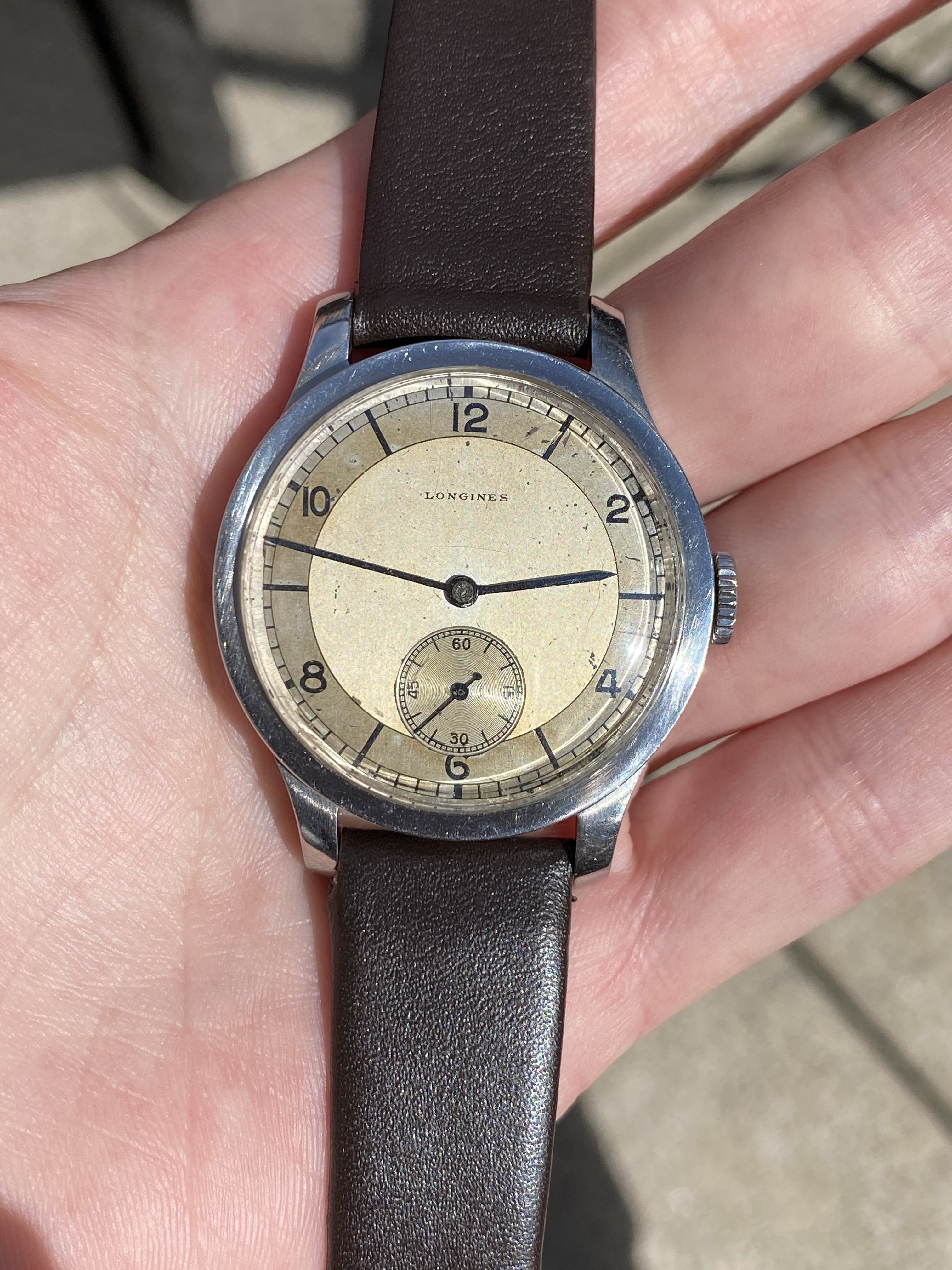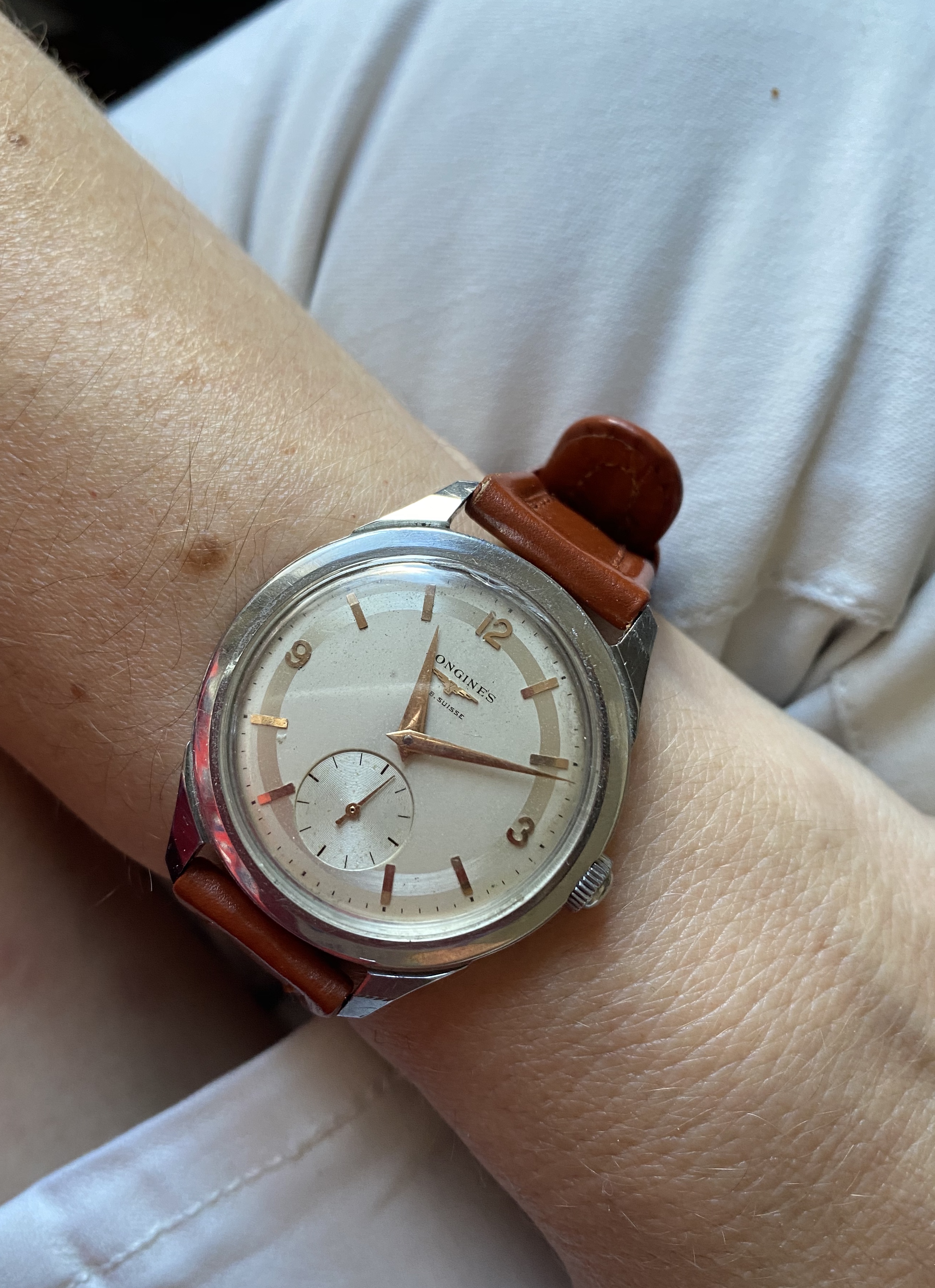 ·My grandfather passed away in 1978, his watch has just surfaced from my father's second wife and is now in my small collection. Quite tatty as can be seen but I like it as it appears to be all original, 12.68zs movement dates to 1950 that has suffered a little water ingress, Dennison 13322 stainless steel case which I like very much as I have a very early SmithS in the same (plated) case. It will go off for mvt service only when some spare cash appears.