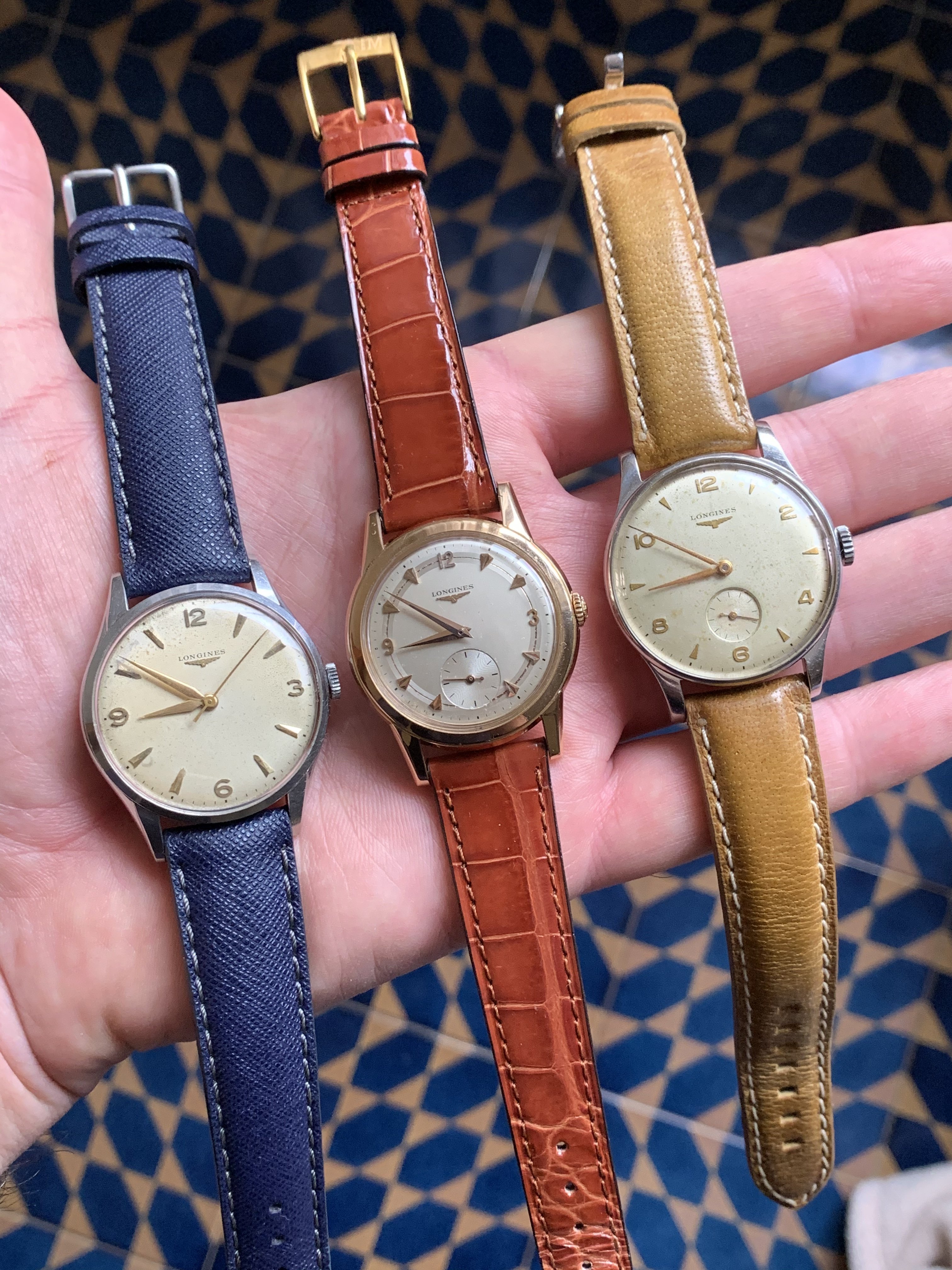 1 of my LONGINES 18k oversize and guilloche dial,with solid gold hands and markers.1 LONGINES TANK 1930 18k long.and the last pictures is many of my LONGINES I collect since the 80s.
