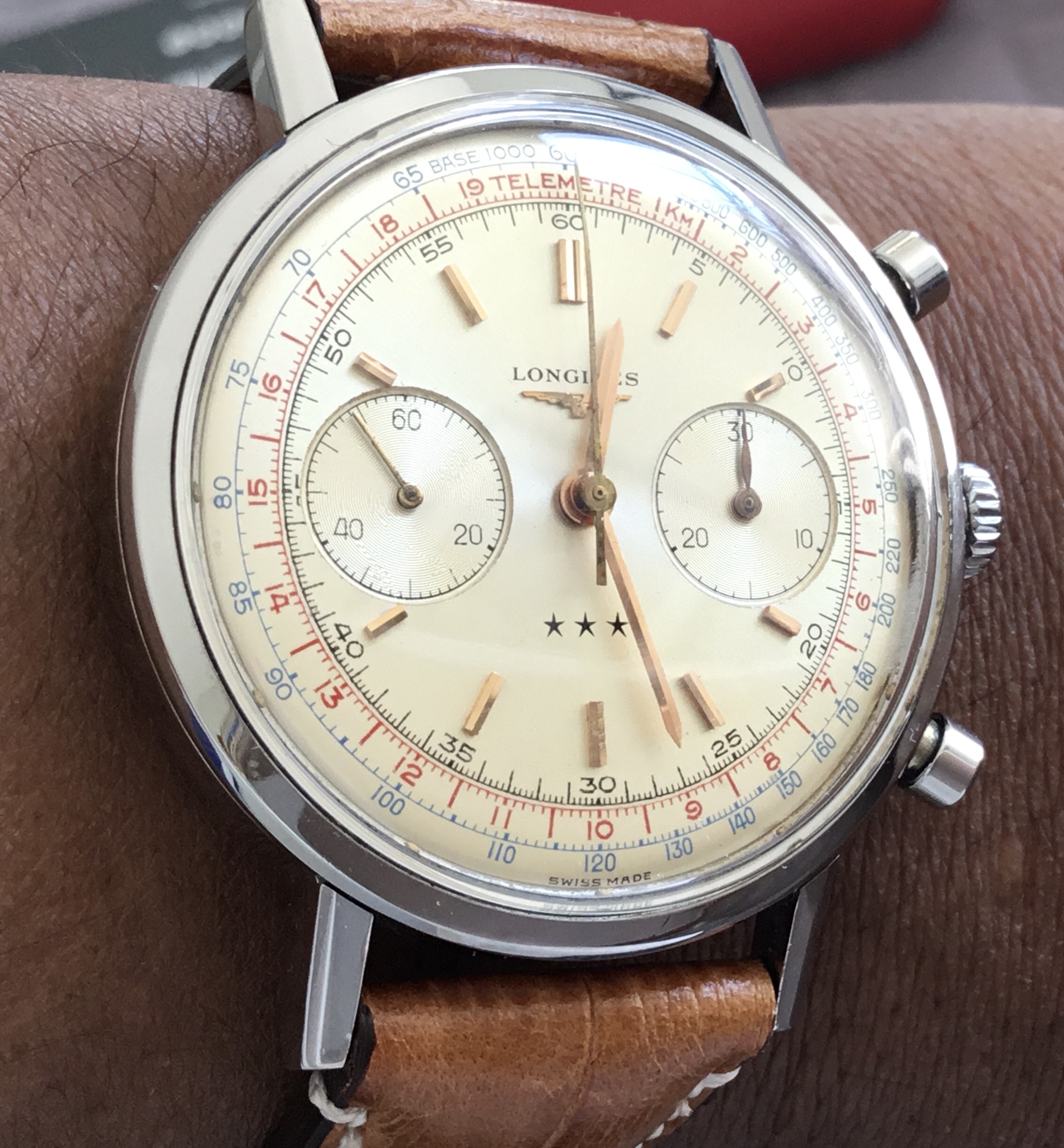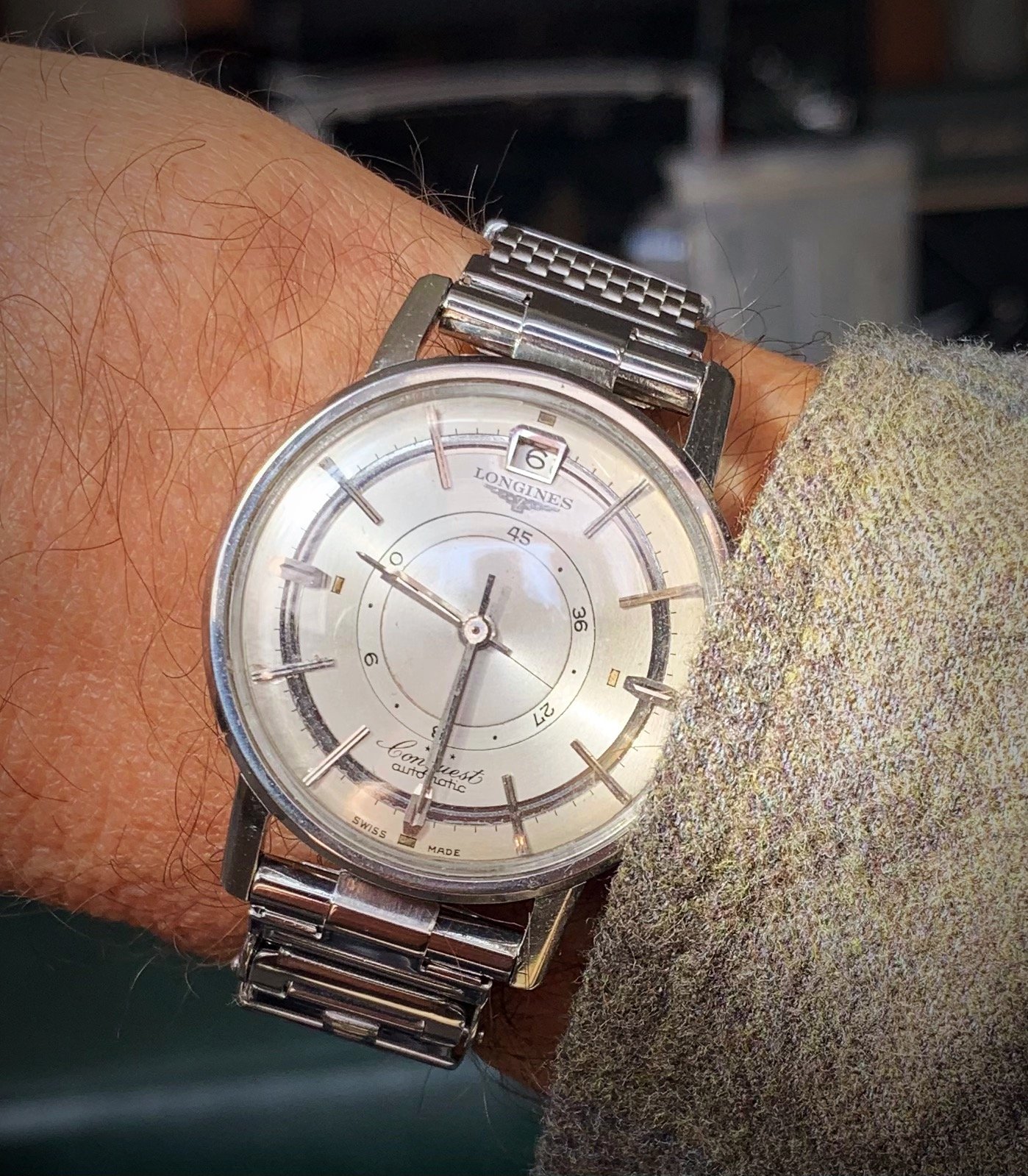Posts 4,402 Likes 5,799 JohnSteed ·Mar 13, 2021 Enjoying this gem while in the FS section 😀 Opened this box today, good to get it on the wrist another time....before it finds another good home Well preservered, the pips still holding strong around the hour markers on the inside What more can I say....example of a super nice vintage Longines dial