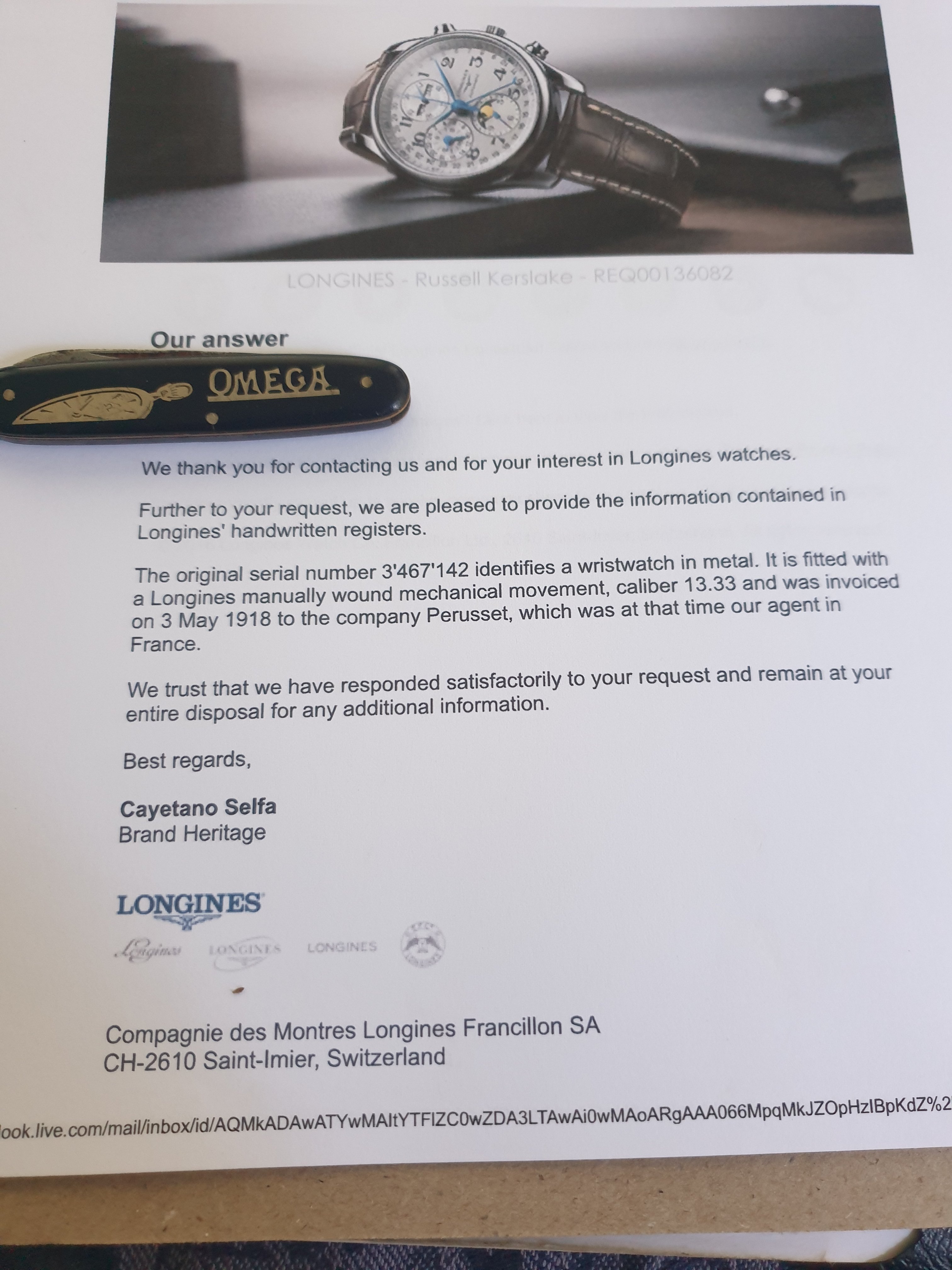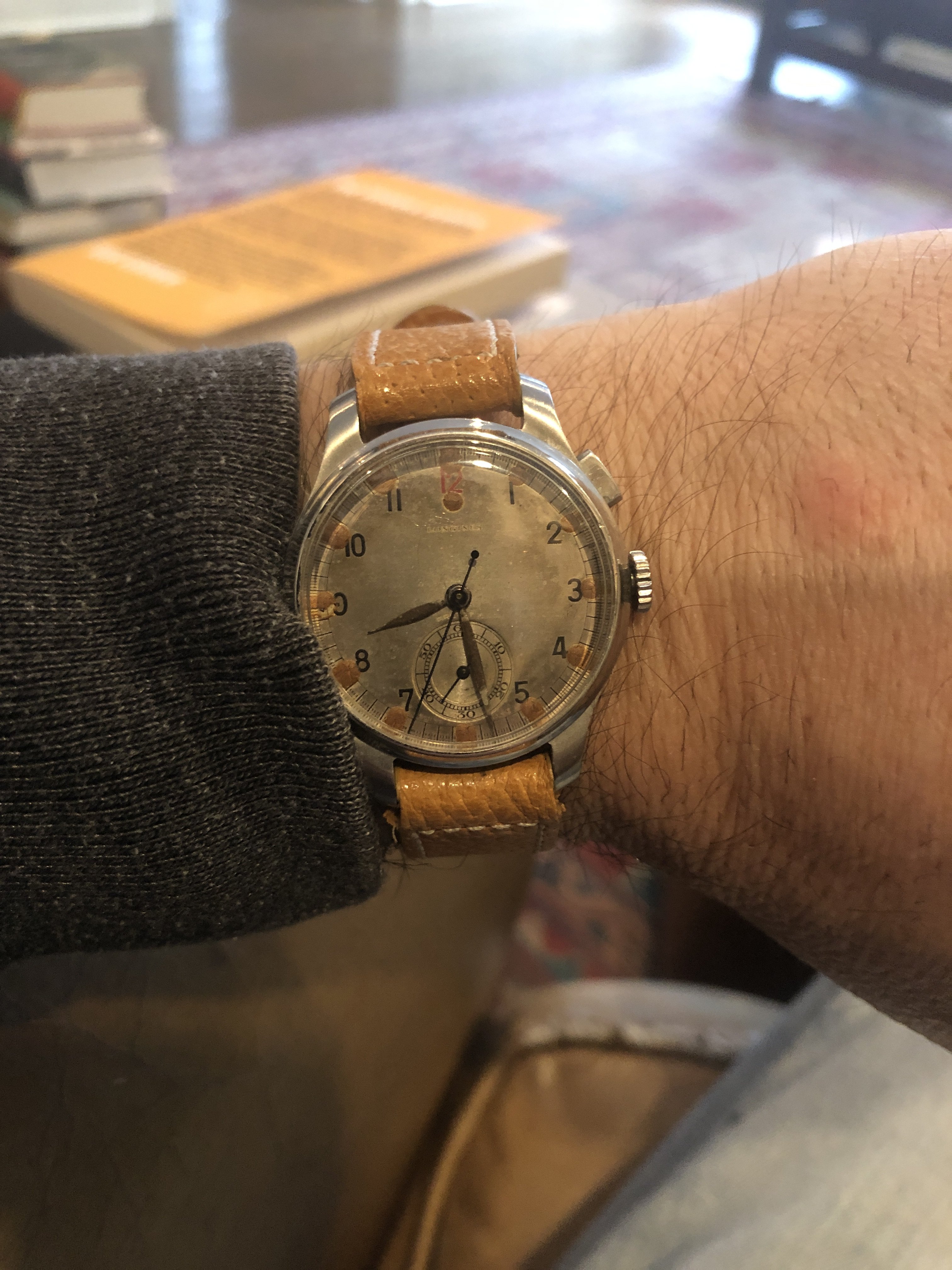 This one is just a first gen, four hander, before the minute recorder (fifth hand) was introduced, its serial is the earliest Ive seen from July 1938, sent to Baume in London. Here’s the Longines cheat sheet on the 12.68z stop