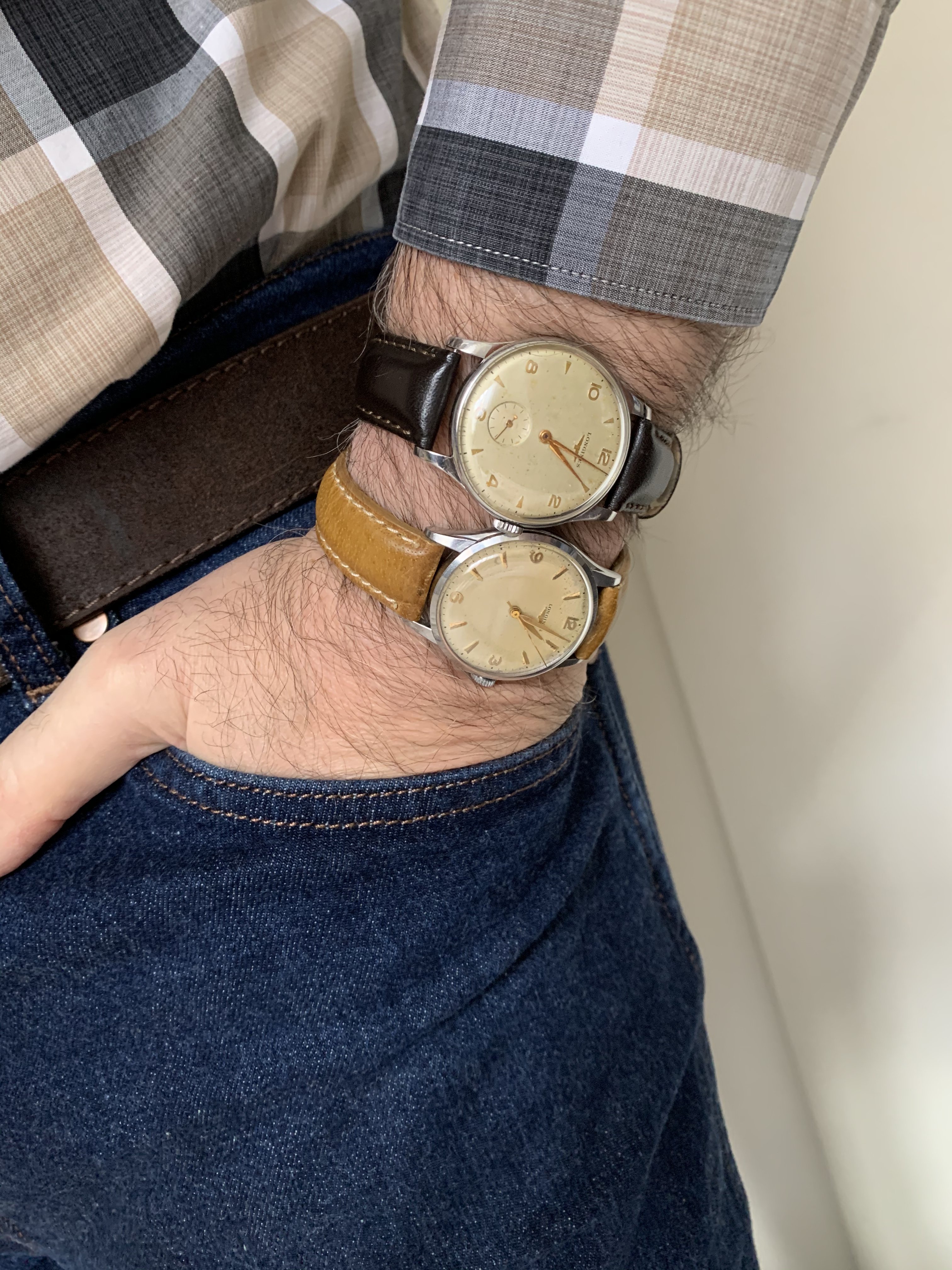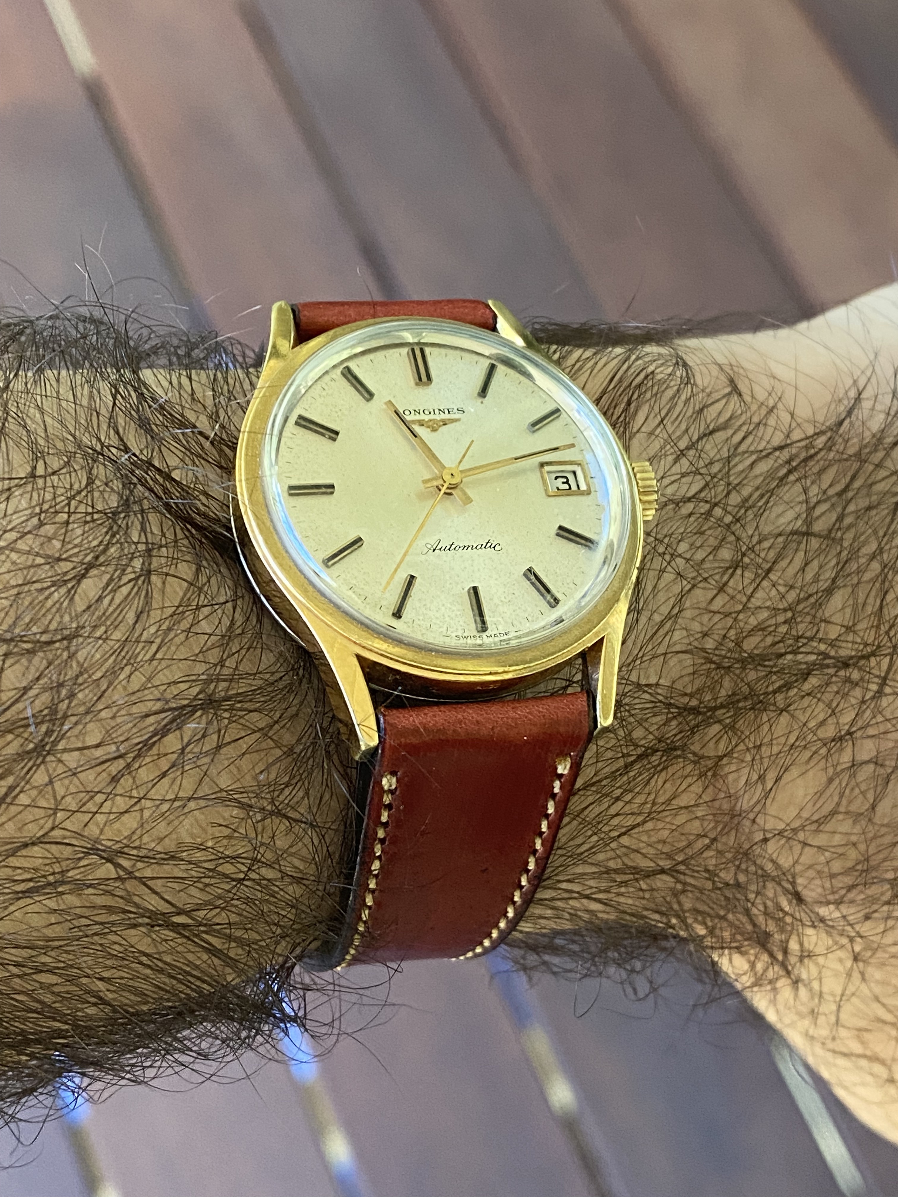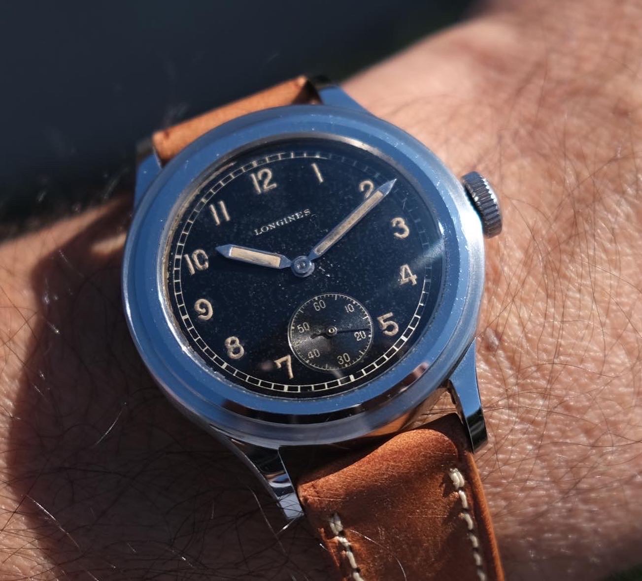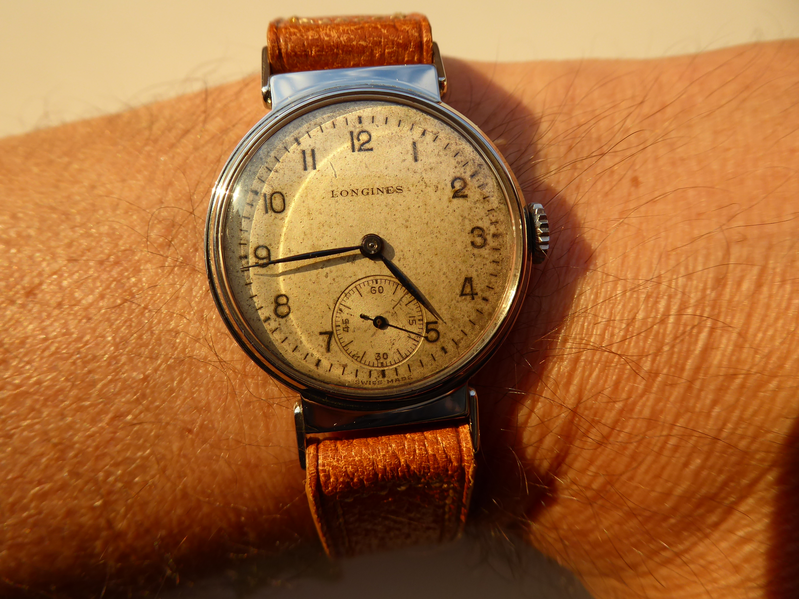 Vintage Longines Tre Tacche bearing the reference 5182 in a 35mm stainless steel step case. It is fitted with a Longines manually wound mechanical movement, caliber 12.687. It was invoiced on 16 June 1943 to the company Ostersetzer, which was at that time our agent for Italy according to the excerpt from Longines.
