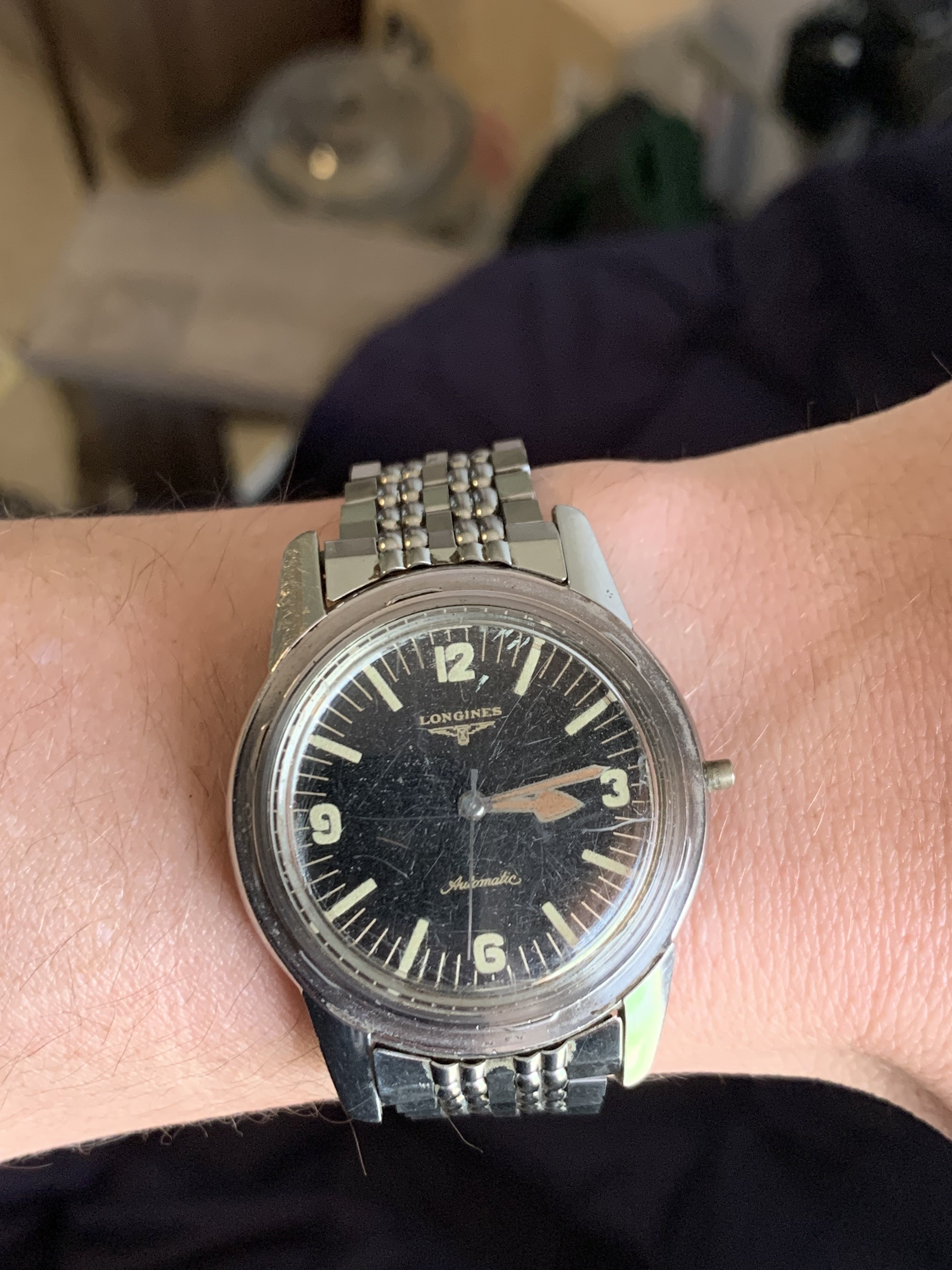Posts 223 Likes 3,547 DeathandTaxes ·May 9, 2022 Longines Admiral (Cal. 508) found barely worn (but without strap or bracelet) with box and papers (dated 1979):