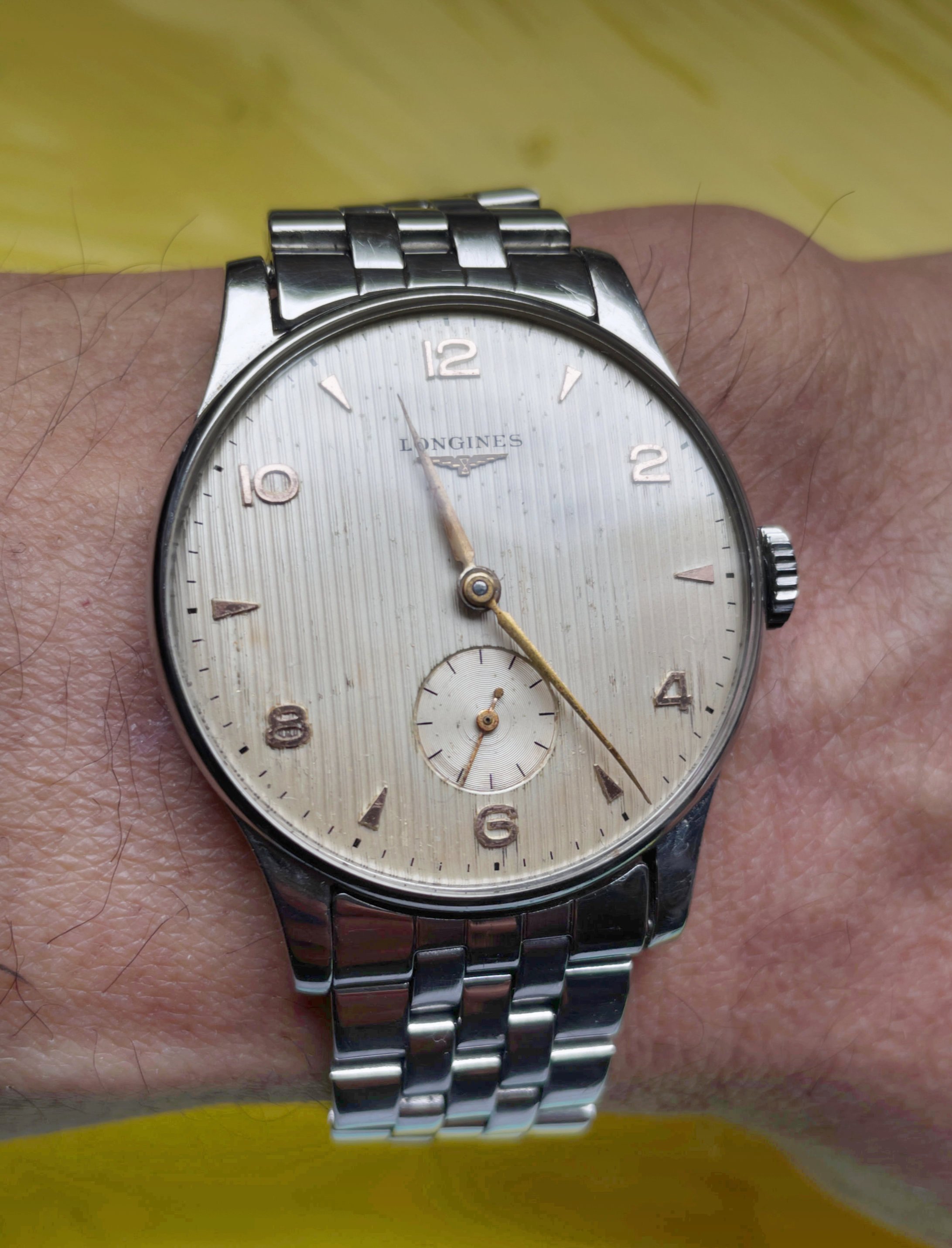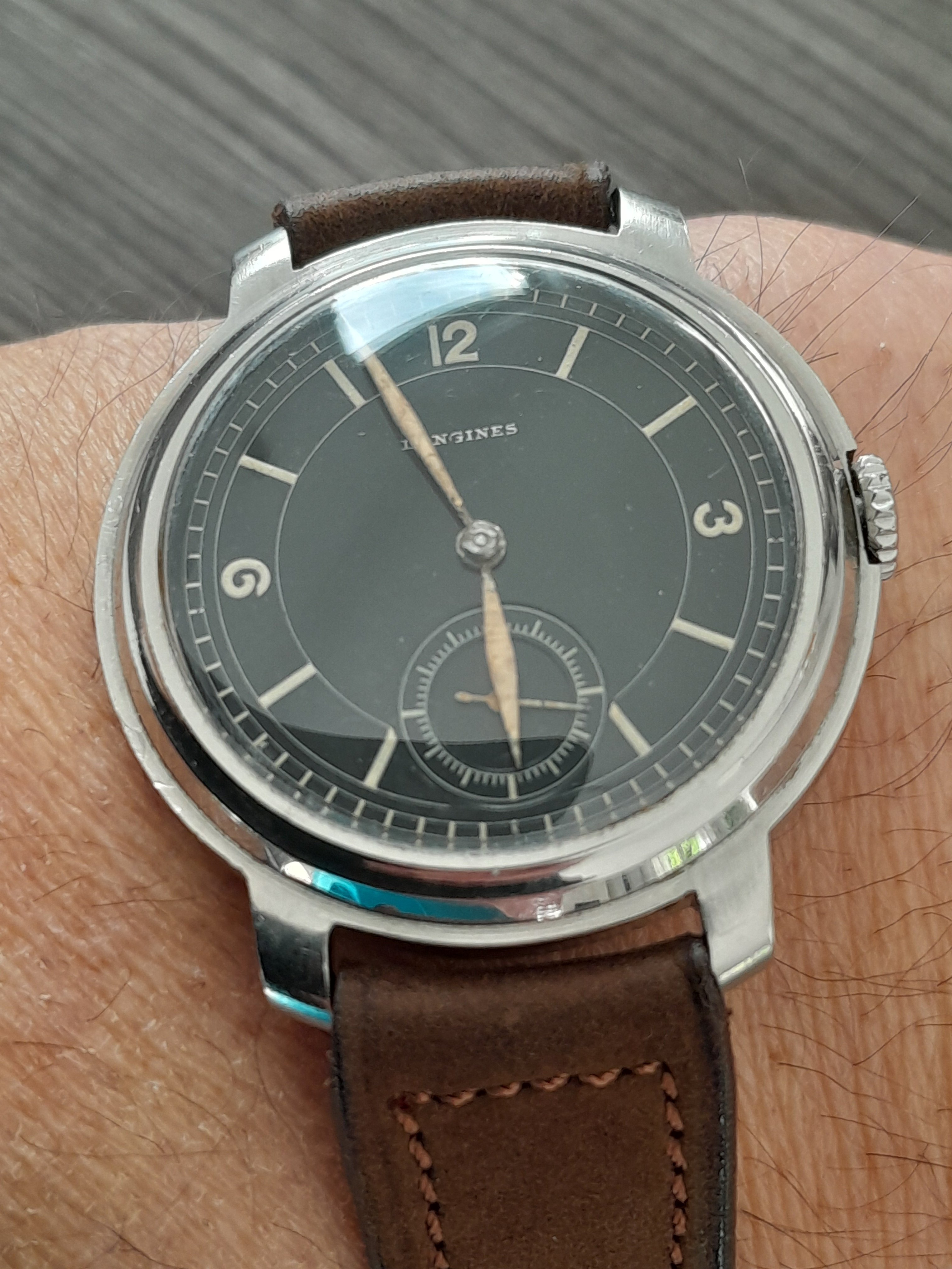 Thanks. It's 35.5-ish mm, Sei Tacche and 1945. I think I saw one on here the same or similar, have a file of pics I've mislaid. No idea what ref as yet. Either it wears quite large or I'm thankfully getting accustomed to reasonably sized watches.