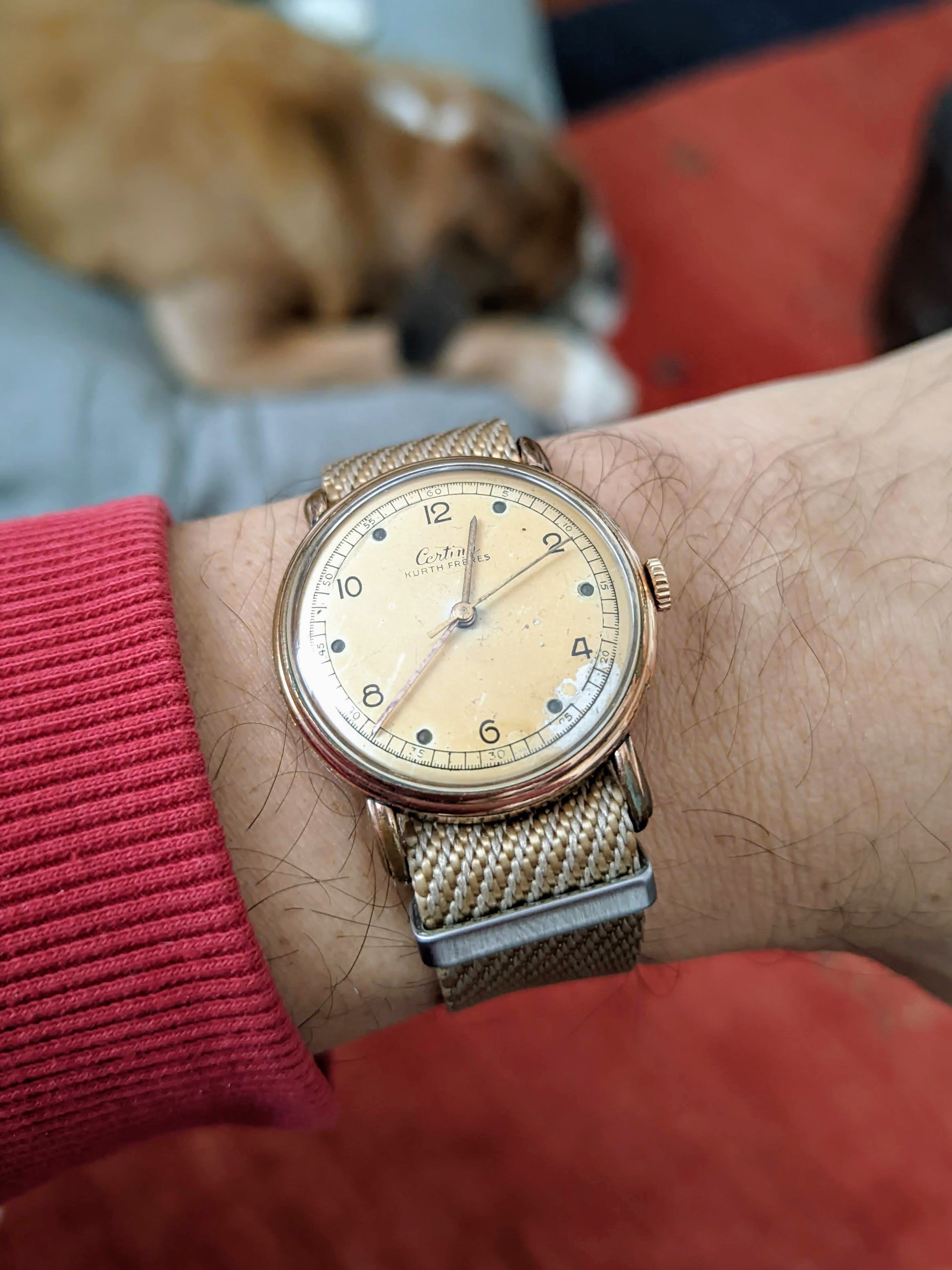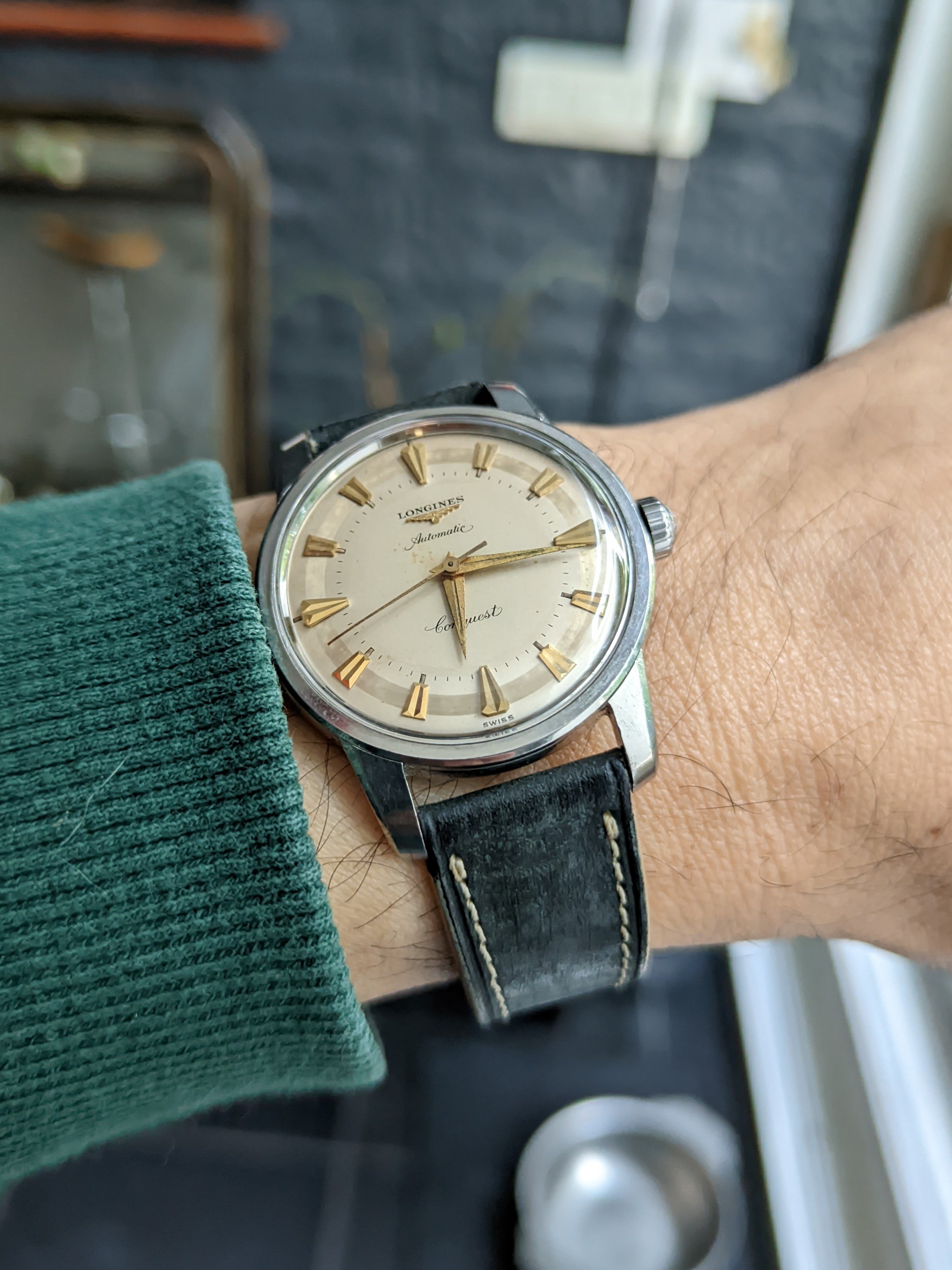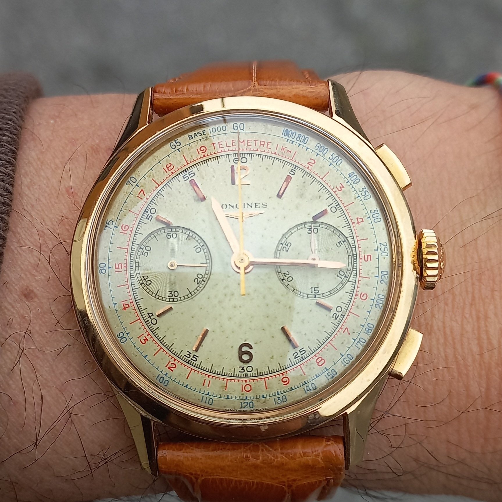 I only own the one on the right below but, with apologies to the Longines' true owner, the look of your watch just triggered me into posting this photo. The case style was not that enduring and didn't always work, but at its extravagant best this is what you got!