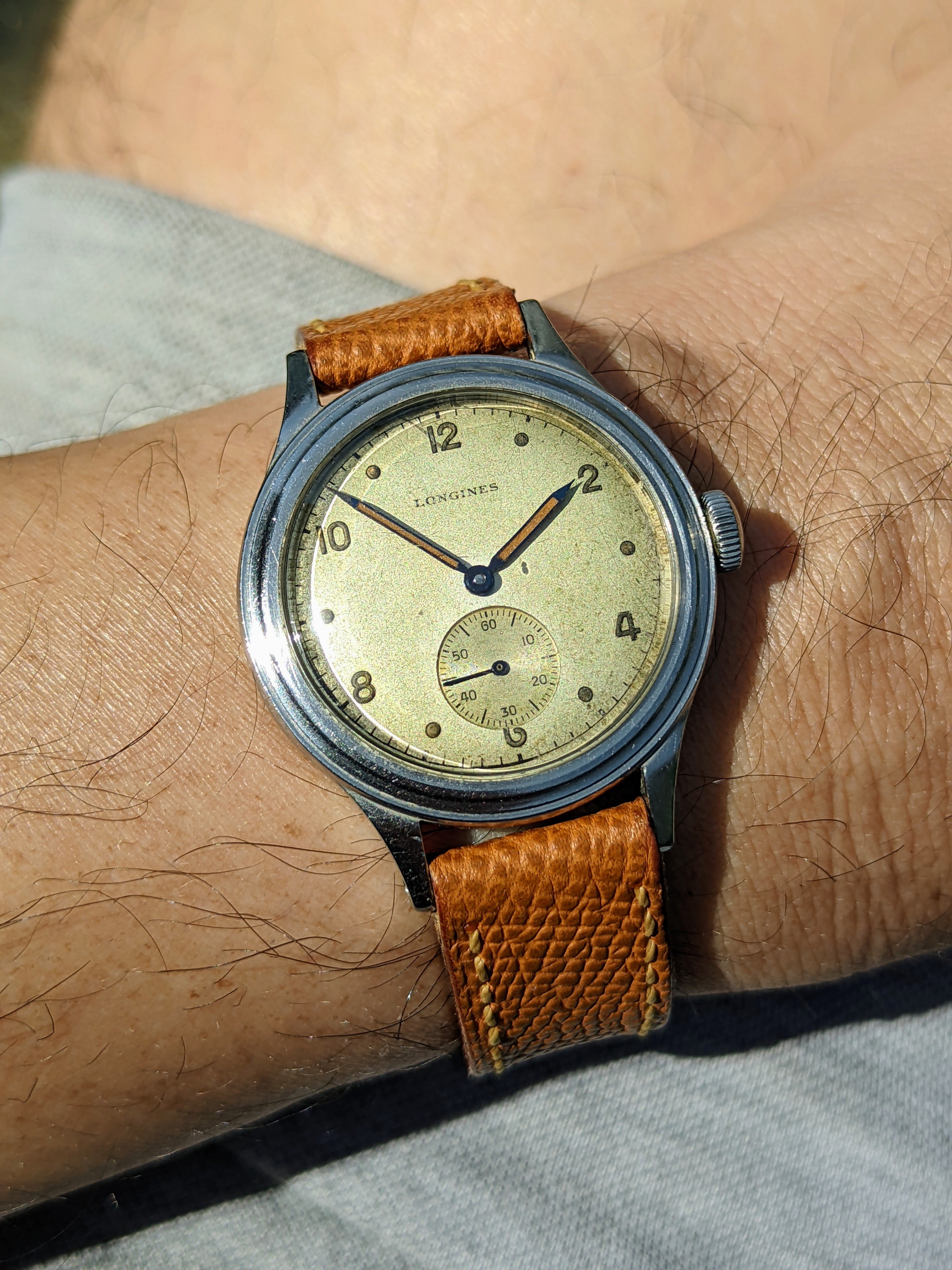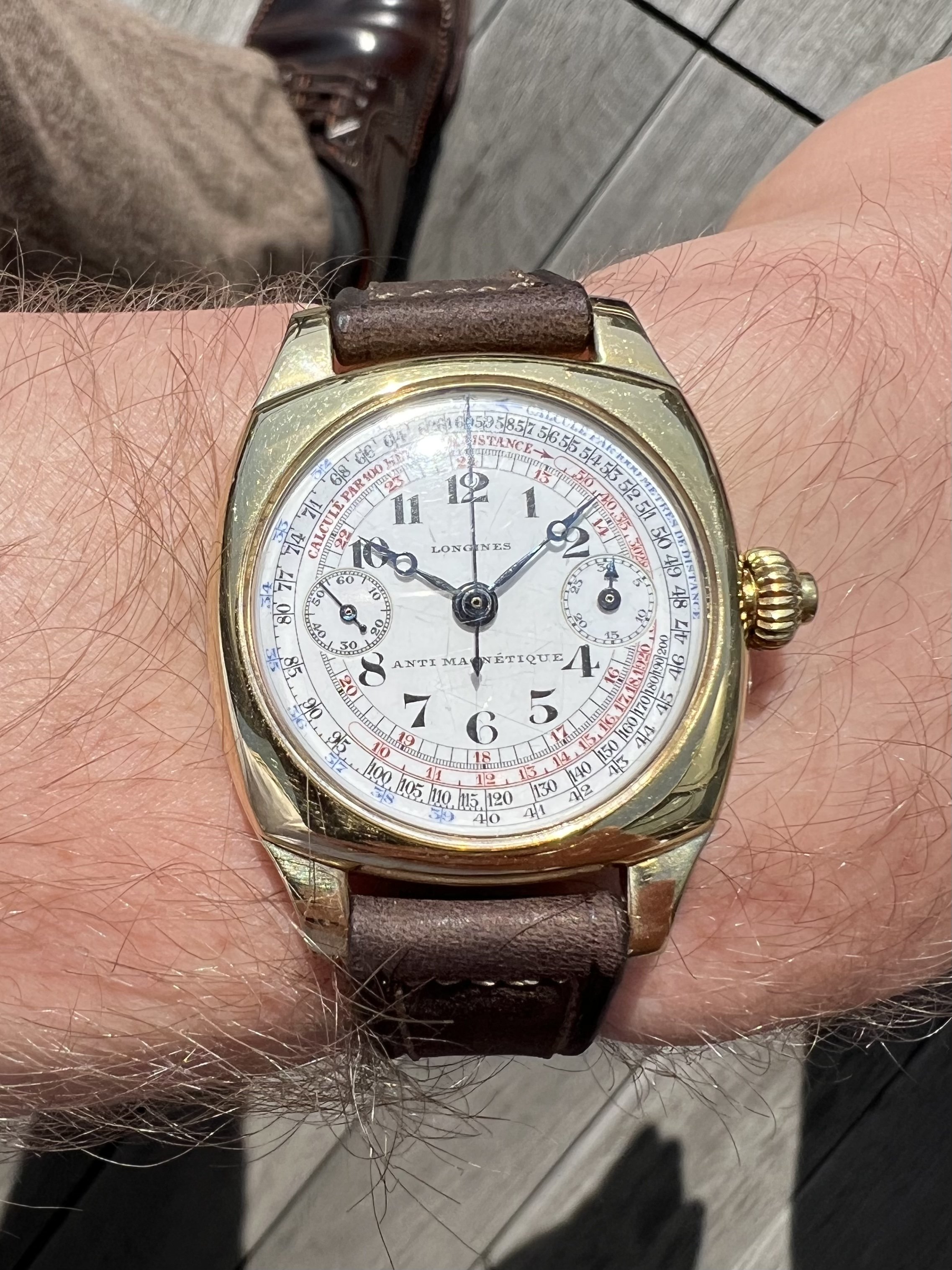 Lacquer had discoloured to a really dark red. Have noticed some others in similar condition from the period. Tried alcohol first, but best result with meths, though careful because it'll take the printing off eventually. Unfortunately previous work on hands had destroyed the gold plate.