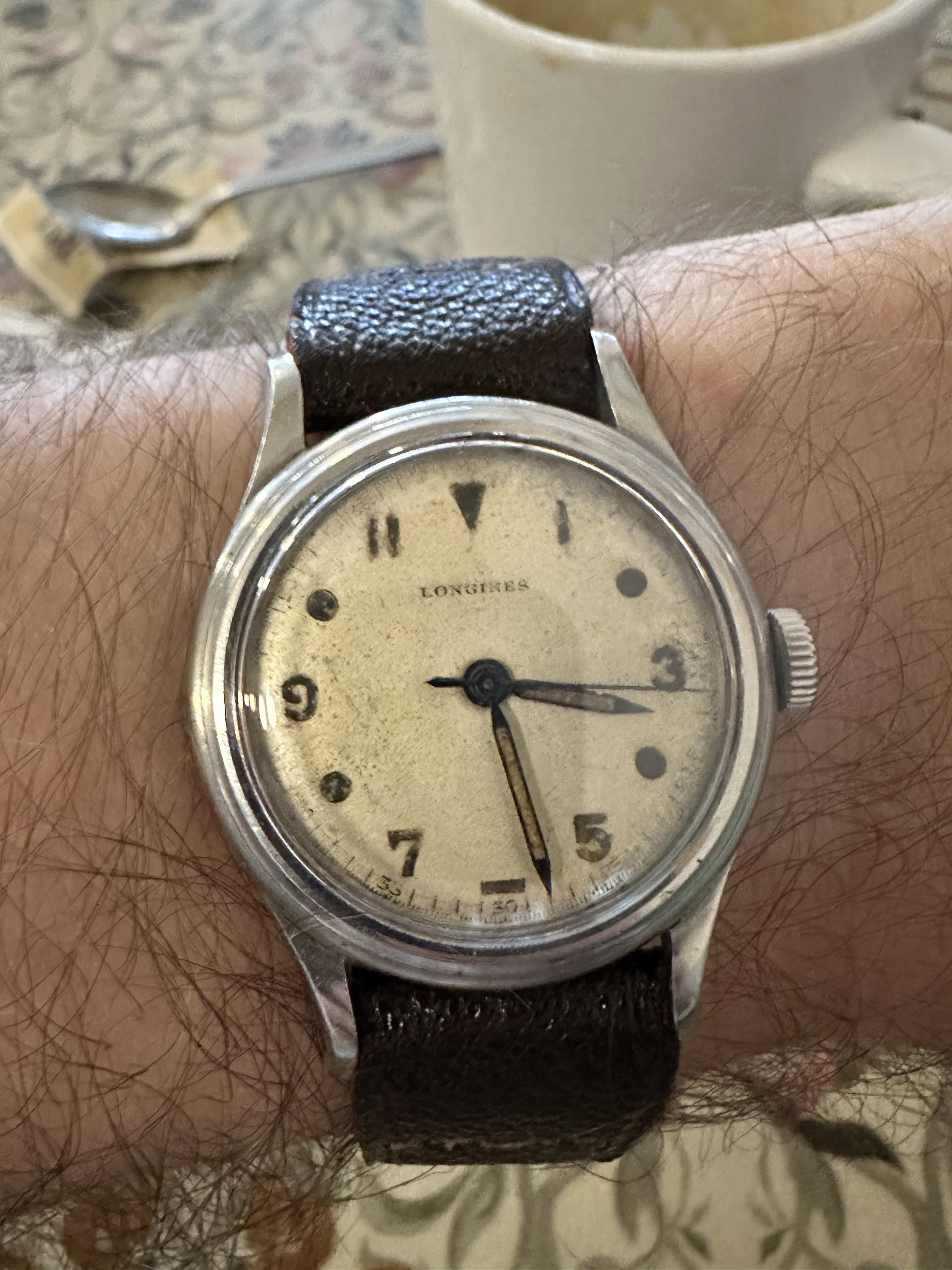New entry 14 carat radium bling. What do you ladies and gentlemen think about the hour and minute hand on this one? Radium patina matching dial, but I have never seen this style before😕