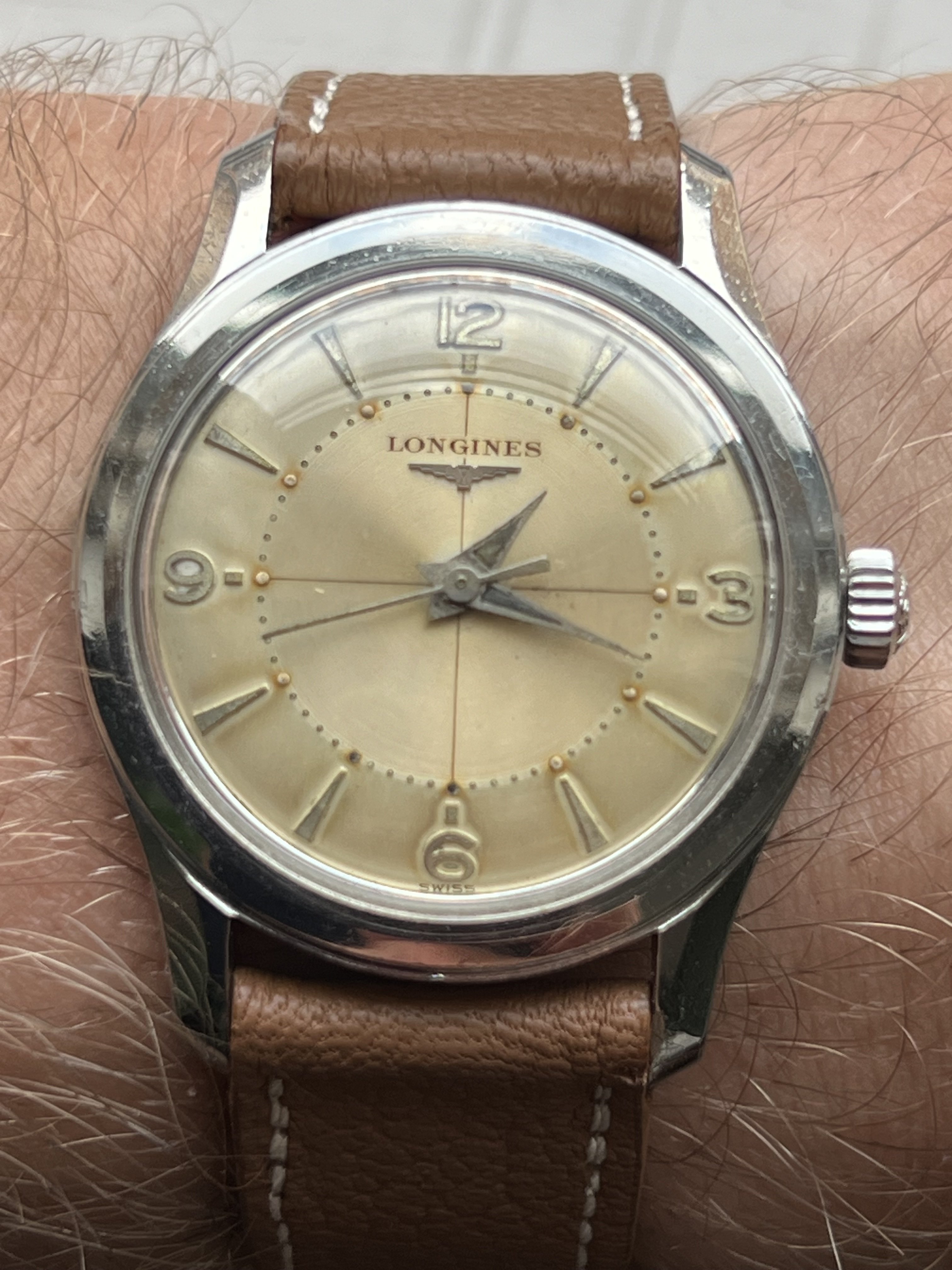 New entry 14 carat radium bling. What do you ladies and gentlemen think about the hour and minute hand on this one? Radium patina matching dial, but I have never seen this style before