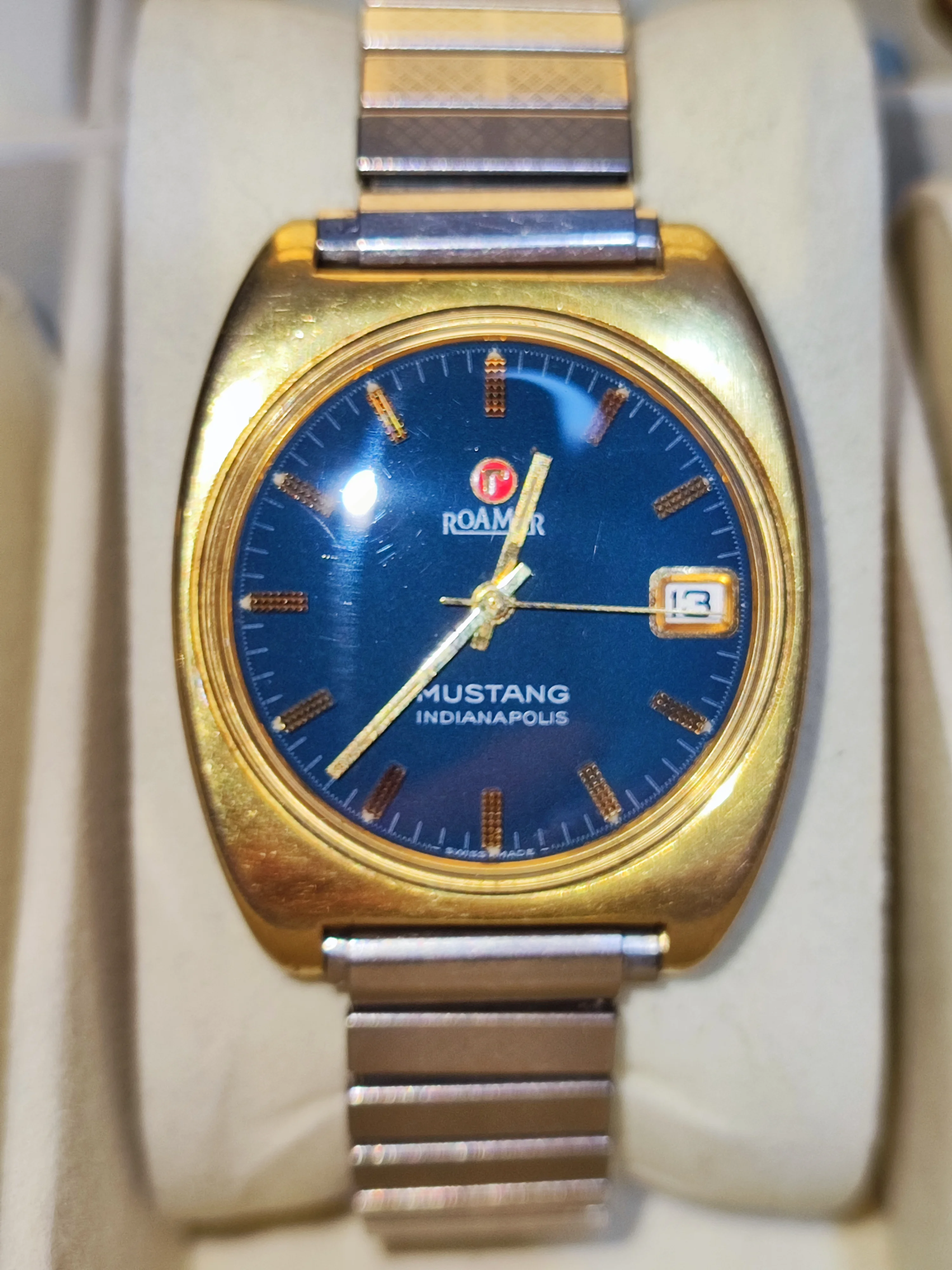 Good looking Meyer & Studelli movement for the price! Don’t see a lot of these movements nowadays. The blue dial in the yellow case would take me a while to get used to.