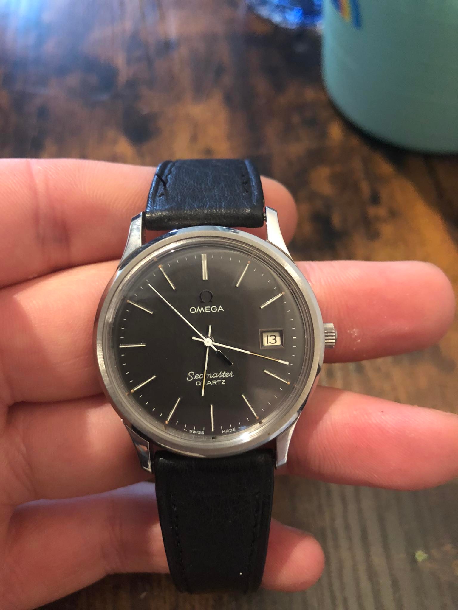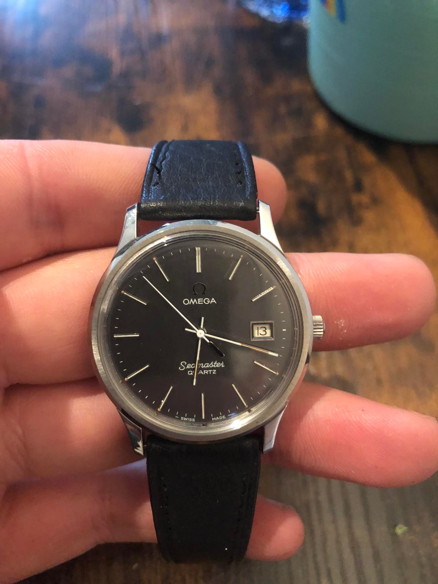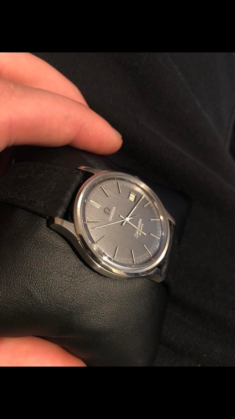 I don't see what's wrong with the hands. They look perfectly good to me. I would say the watch should fetch around 200-250 dollars if it runs and keeps time as the case seems in good condition and it has the Omega strap and buckle which is a plus.