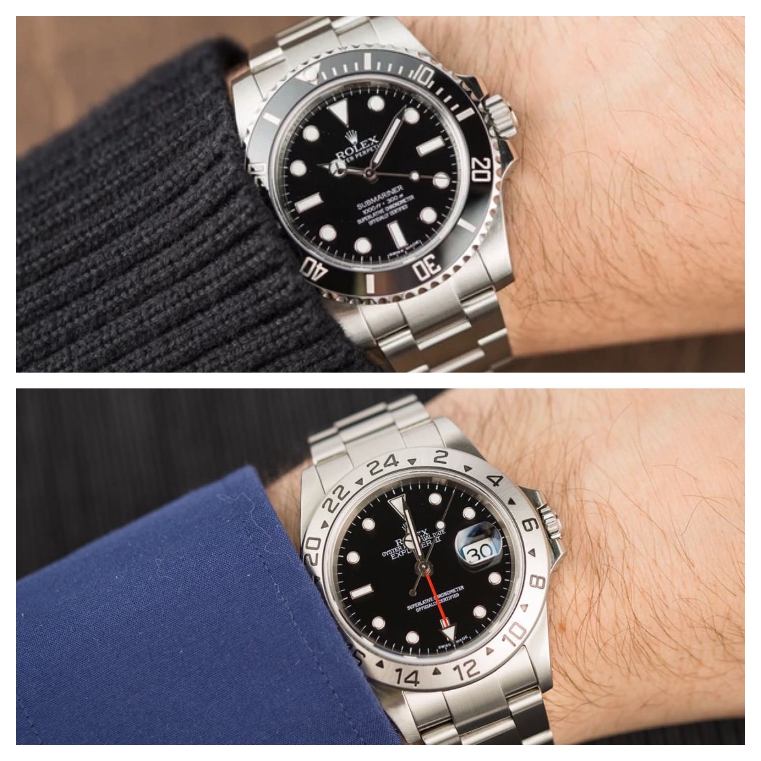 - Classic Rolex, a late-1980's Rolex GMT Master with black bezel in stainless steel.