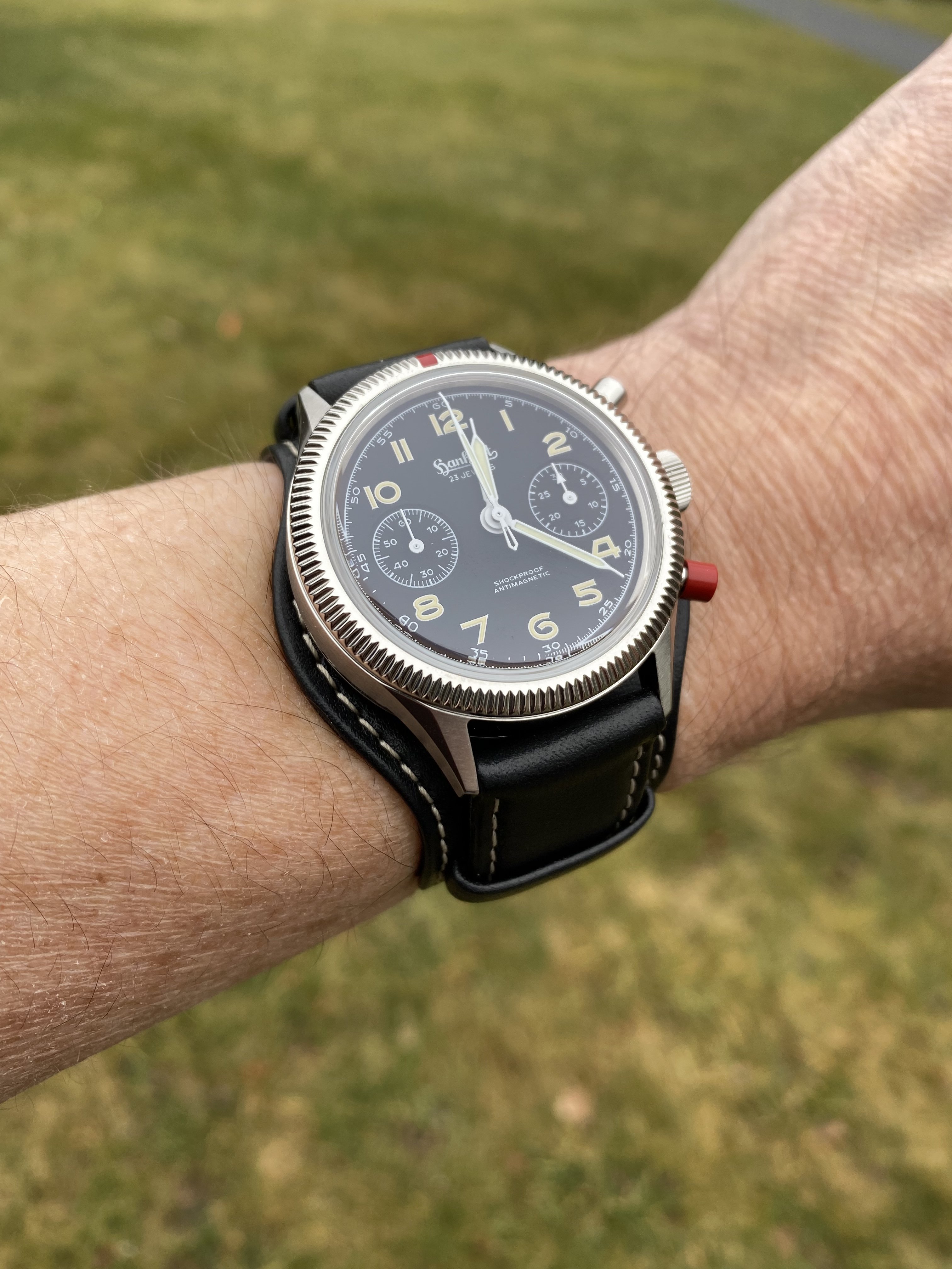 ·How are the red accents formed on the Hanhart? is it rubber coating over the chronograph pusher or is it a coating applied to the steel? I guess my question also applies to the mark at 12 o'clock. Thanks and Merry Christmas!!!