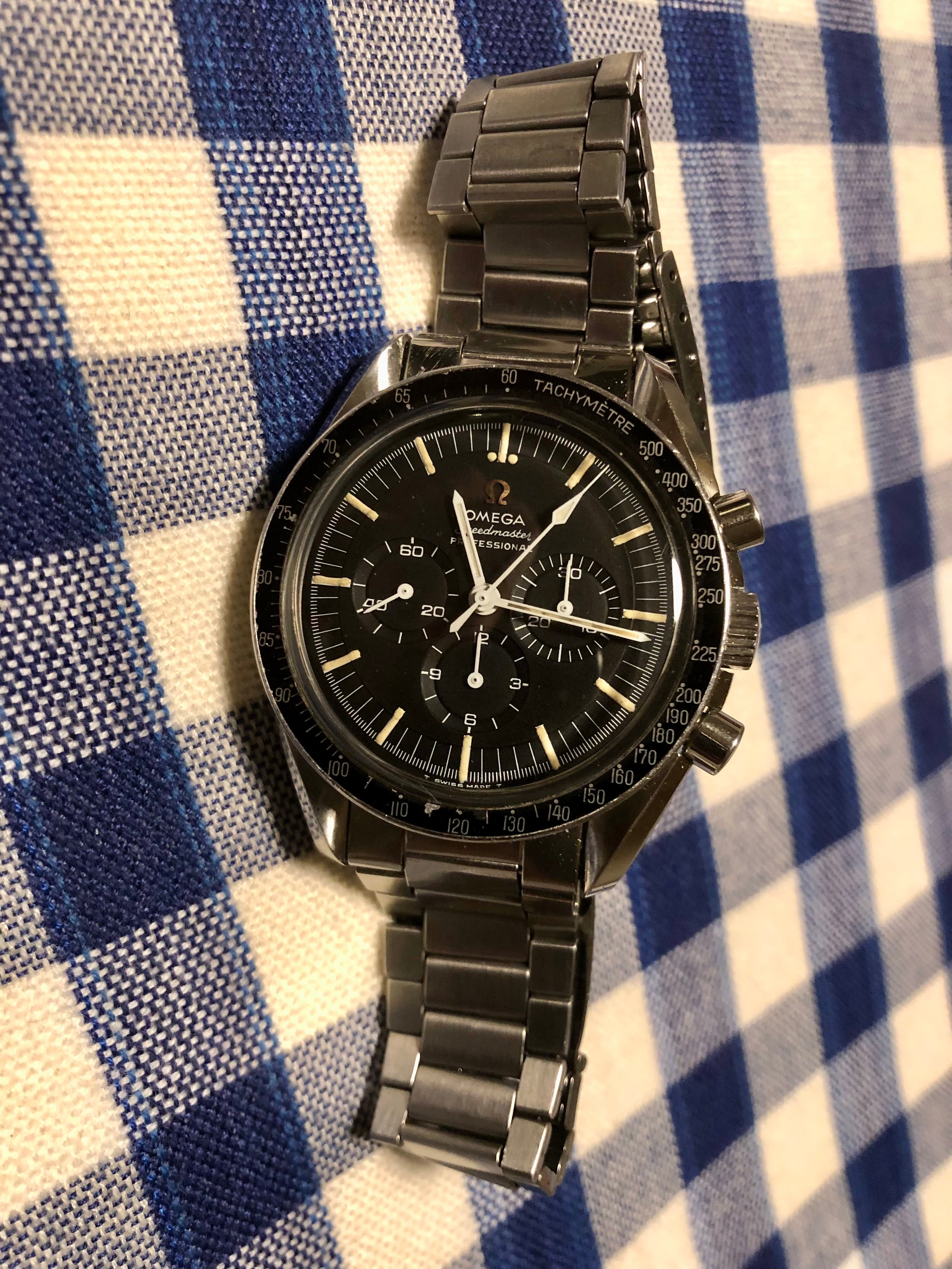 My first purchase of the year 2022 was already a big bang: a Speedmaster 145.012-67 found on a local auction site, my first serious Speedy purchase. To feel comfortable to go for it involved a combination of my own research and great help of forum members here. The nerve-wrecking final minutes of the auction, the excitement of actual winning and the anxious wait for the delivery are unforgettable. I shared my buying experience in a separate thread. What makes this purchase extra special is the fact that I made two new friends on OF who I now have regular contact with and happened to meet in person: @Aludic who was most helpful in assessing the watch and encouraging me to go for it and @perenowell who I had not known before and who entered the auction in the final minutes (thanks for driving up the price lol). He ended up being the underbidder, but showed so much sportsmanship and appreciation for my win.