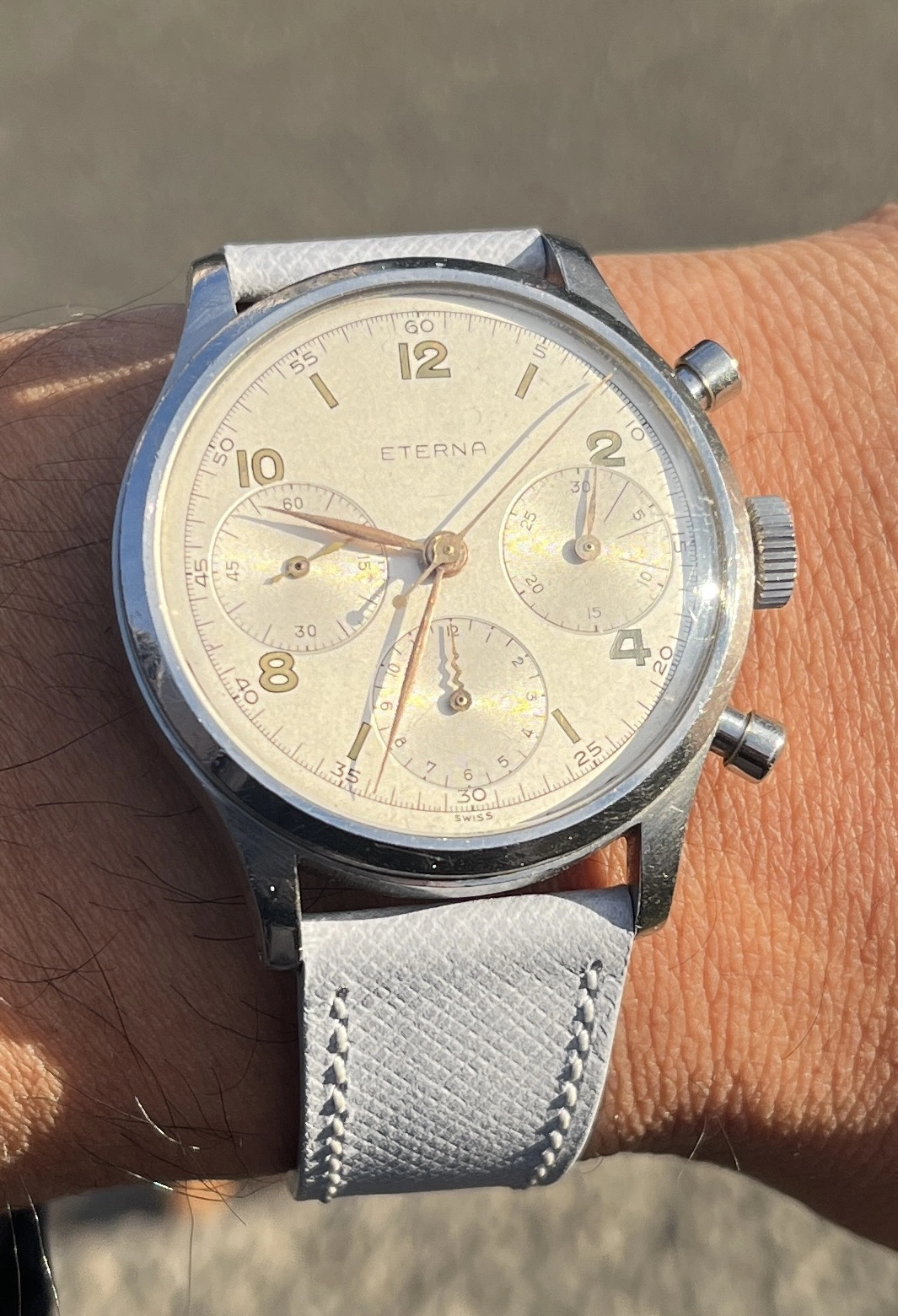 Oversized Eterna chronograph powered by the Valjoux 71 movement.