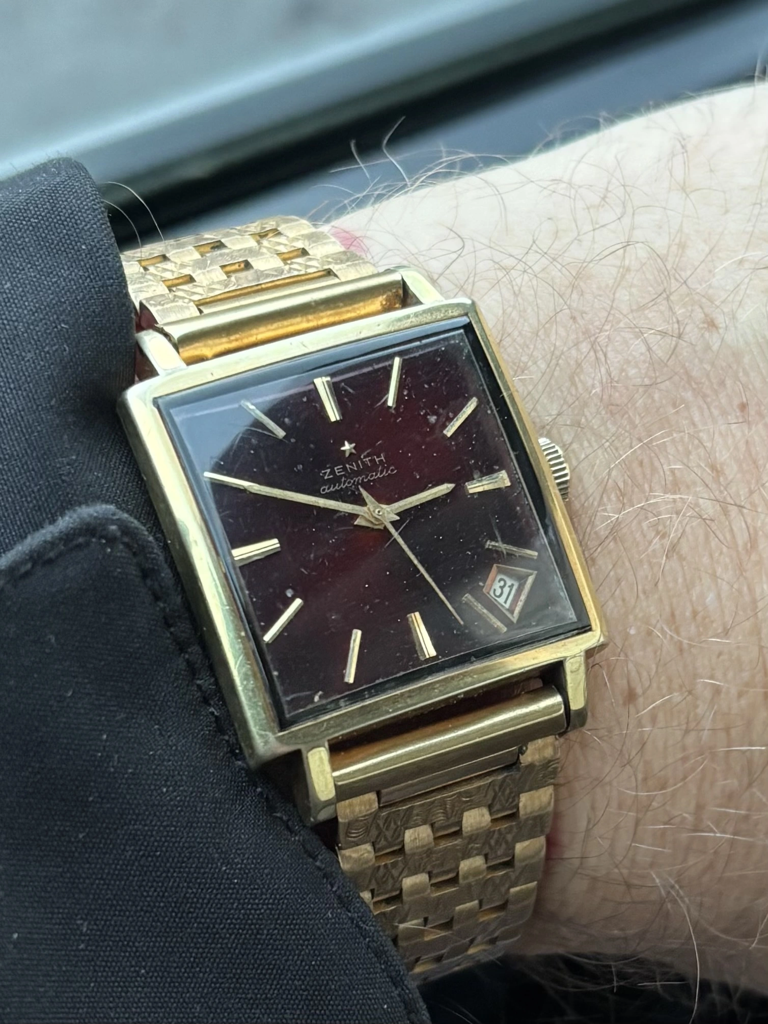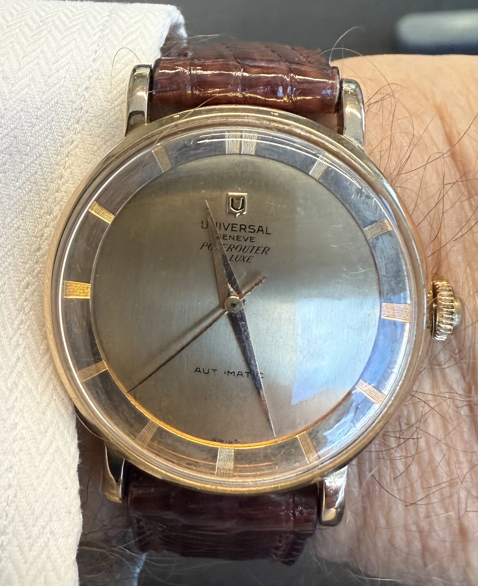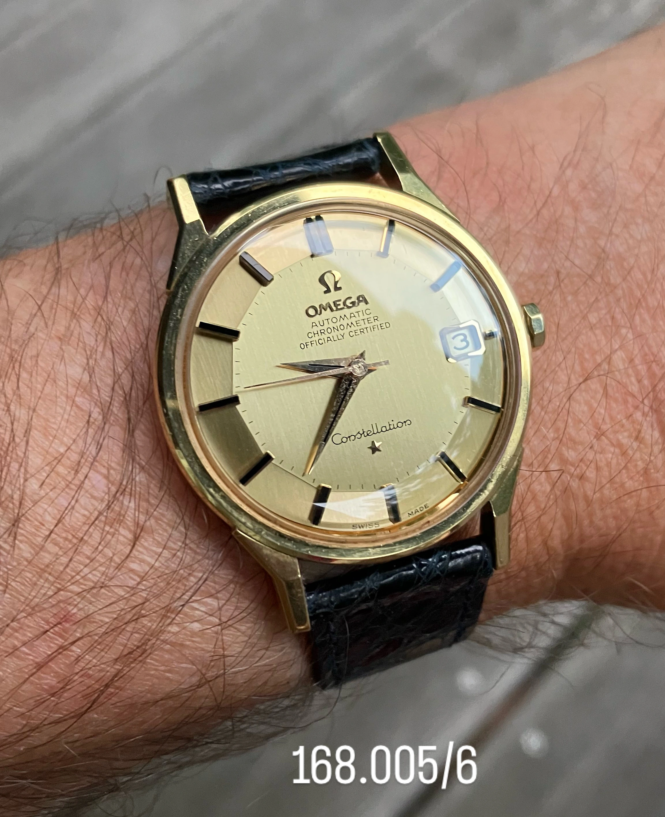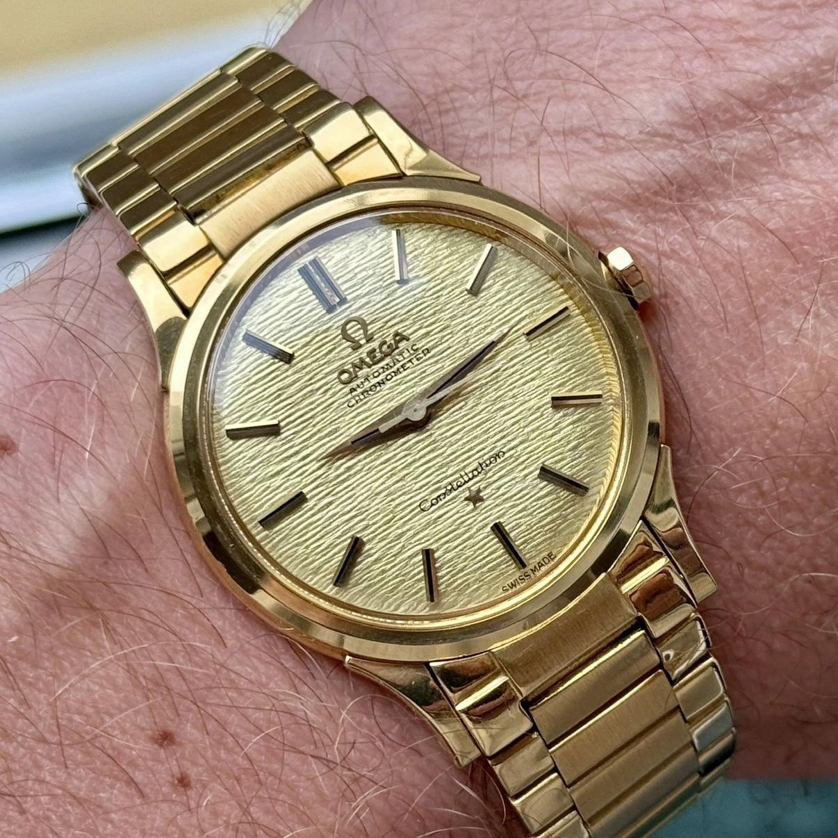Another one I haven’t shared here yet, and another one that’s in a configuration I’ve failed to find another example of so far. Meet this 14381/2 solid gold Connie with a rare structured dial:
