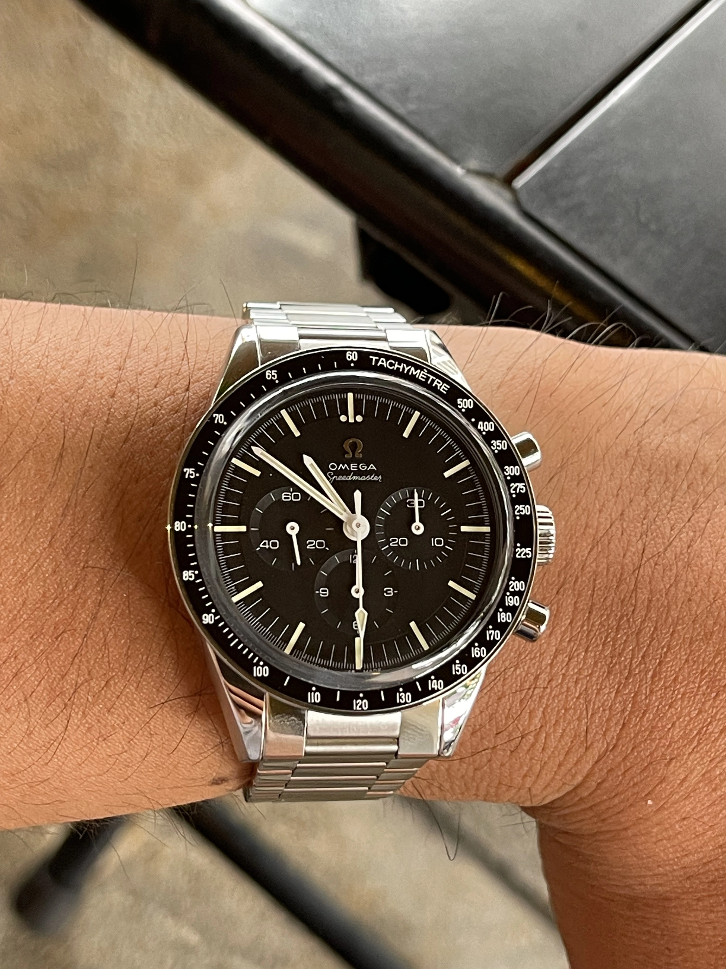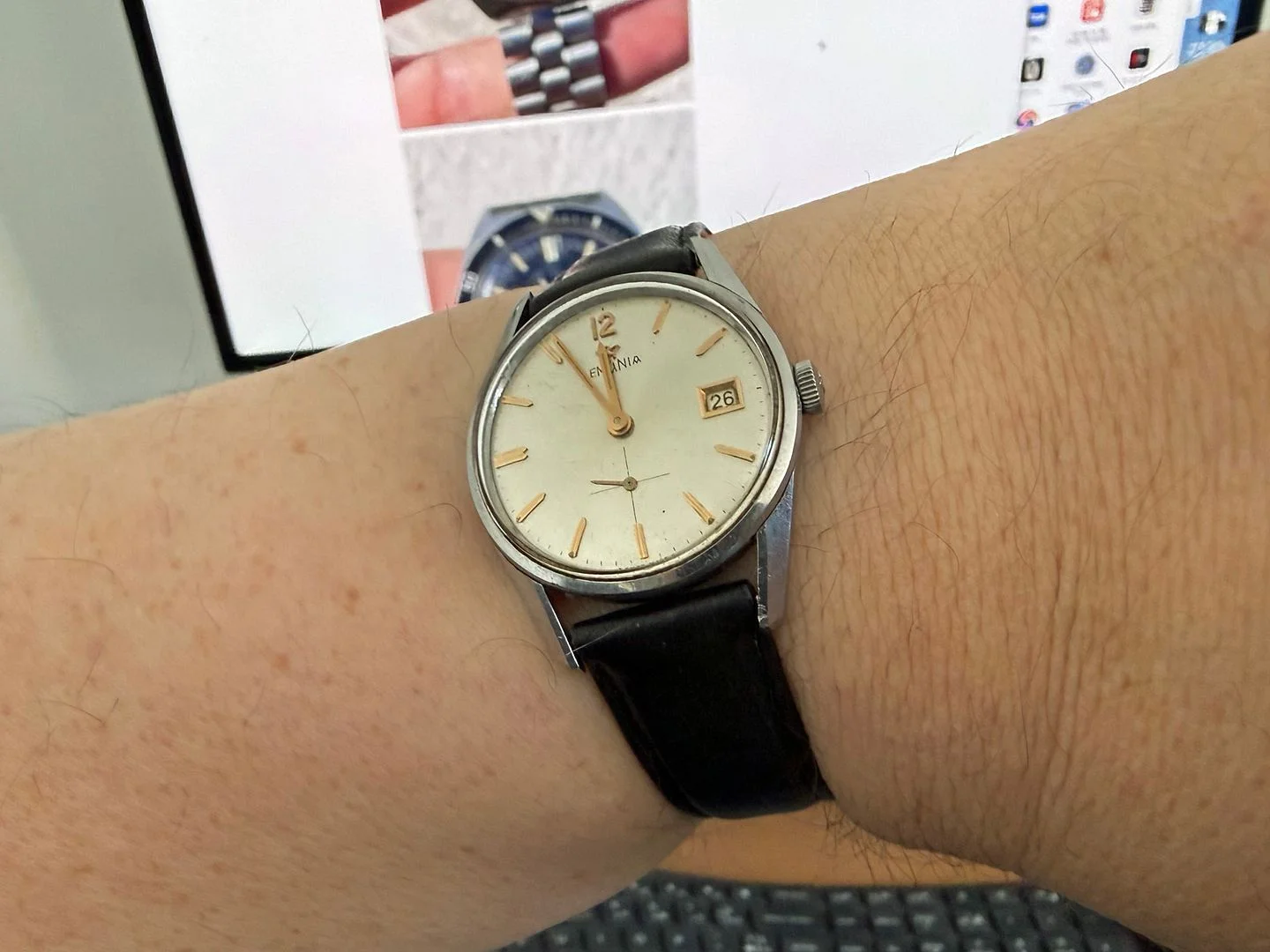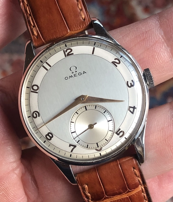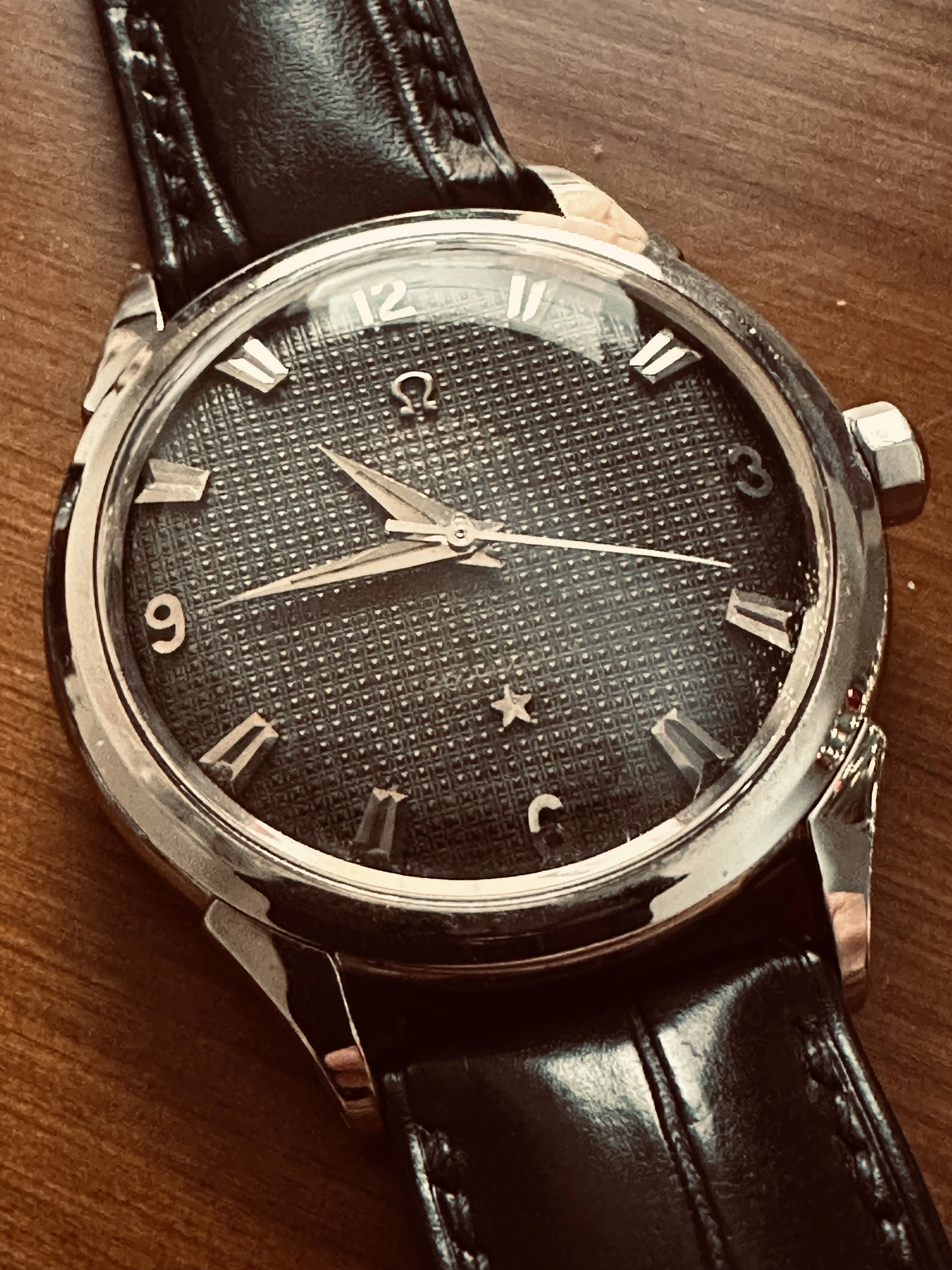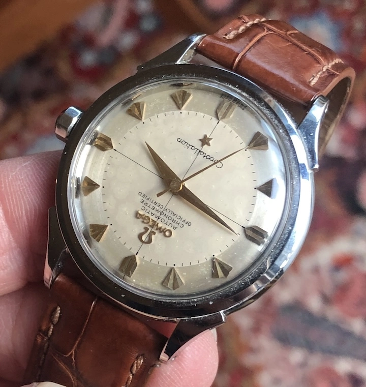 This one only came to me a few days ago and I still can’t quite get over the combination of incredible condition, a dial that’s very lovely and yet was unknown to me until I saw it at auction a few weeks ago. Also the first 2577 I own that comes with this sticker on the case back. I suppose I won’t be able to actually wear it, will I…