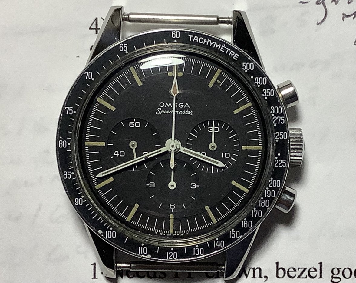 ·Originally, I was going to stabilize the cracking luminous with binder. Then, I noticed upon careful inspection that there are rust spots and paint loss to the chrono hand, and paint flaking on the minute hand, and quite a bit at the base of both the minute and hour hand, if you expand the photo. So would you:
