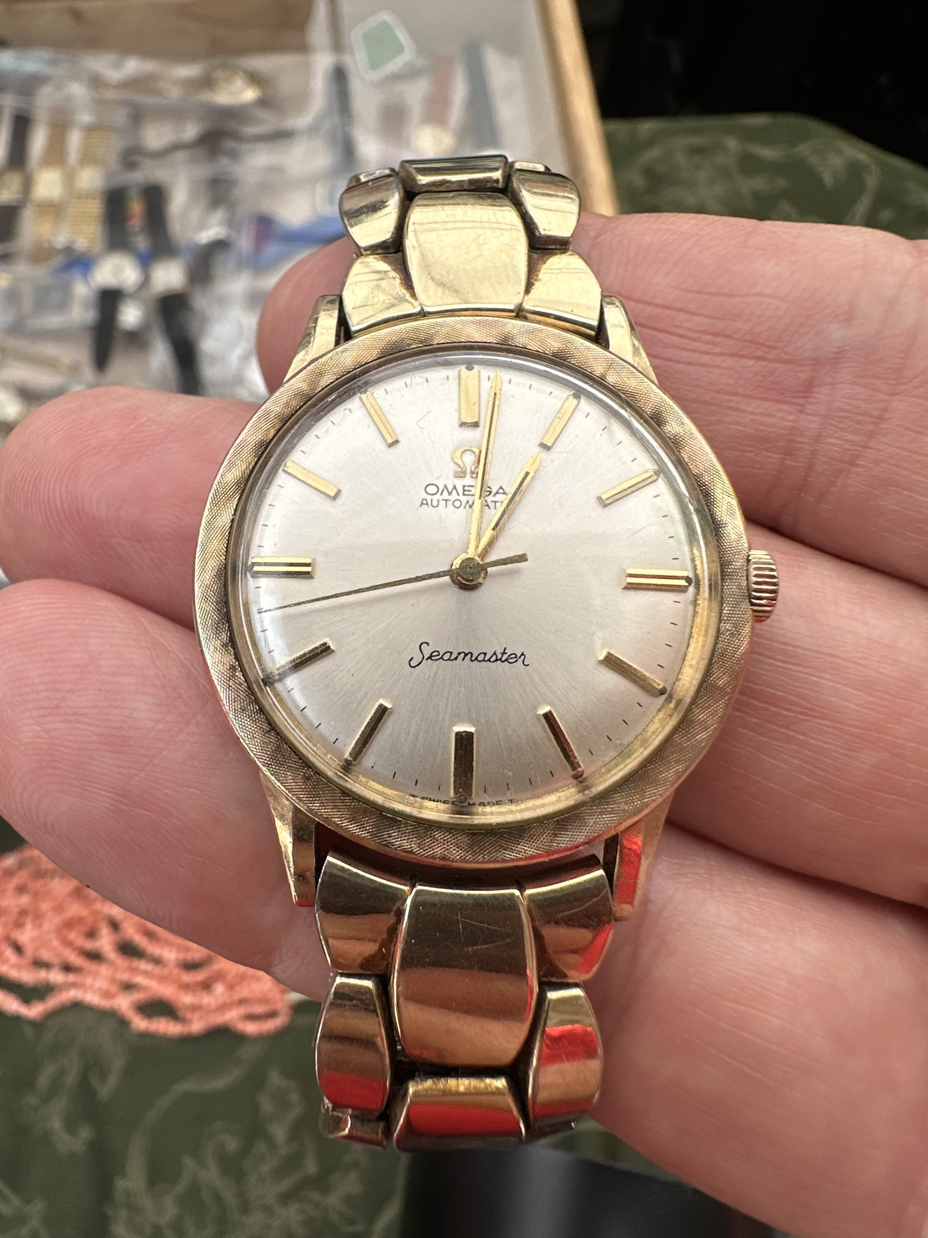I saw this at the Chelsea flea market today. I was with my son and thought it was the most “buy worthy” object d’art there. It has been a while since I bought a watch at a flea market, so was not sure of the correct price. 14k gold filled, likely US cased, runs when wound, no rattle and no brassing under the lugs.