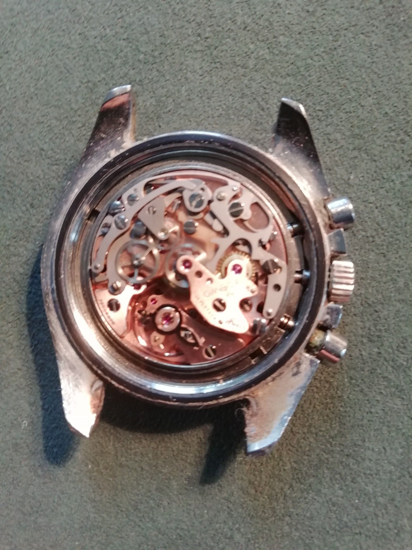 Movement serial number 26556898 is too early, and could match with a 145.022-68 if it’s a Speedmaster movement. Strangely, it seems that the brake was made of Delrin, making this movement pretty odd (or a super early prototype