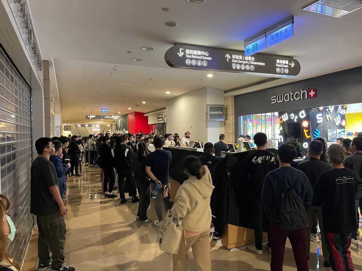 Looking at the people in the queues, it’s got a much more of a “queue outside Supreme” feel than anything else… but if these aren’t limited (which Swatch have said they’re not) then those kids who are used to flipping Supreme swag for 10x it’s RRP might be in for a shock.