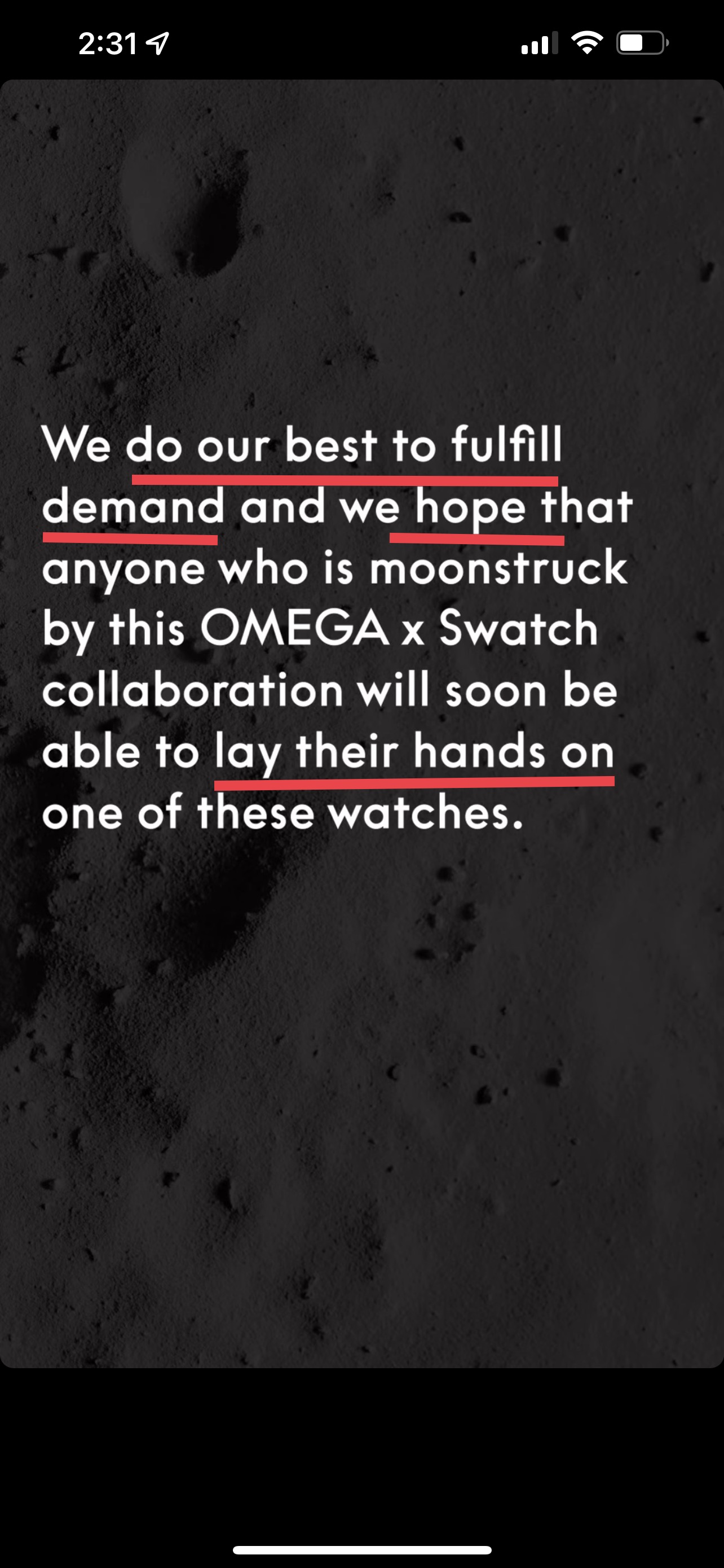 Im further biased in this conclusion based on what exactly they say they are “hoping” for: that people can “lay their hands on” the watches - not “buy,” not “take home,” etc. They’ve used this “lay hands on” phrasing now in 3+ different iterations of these marketing notices.