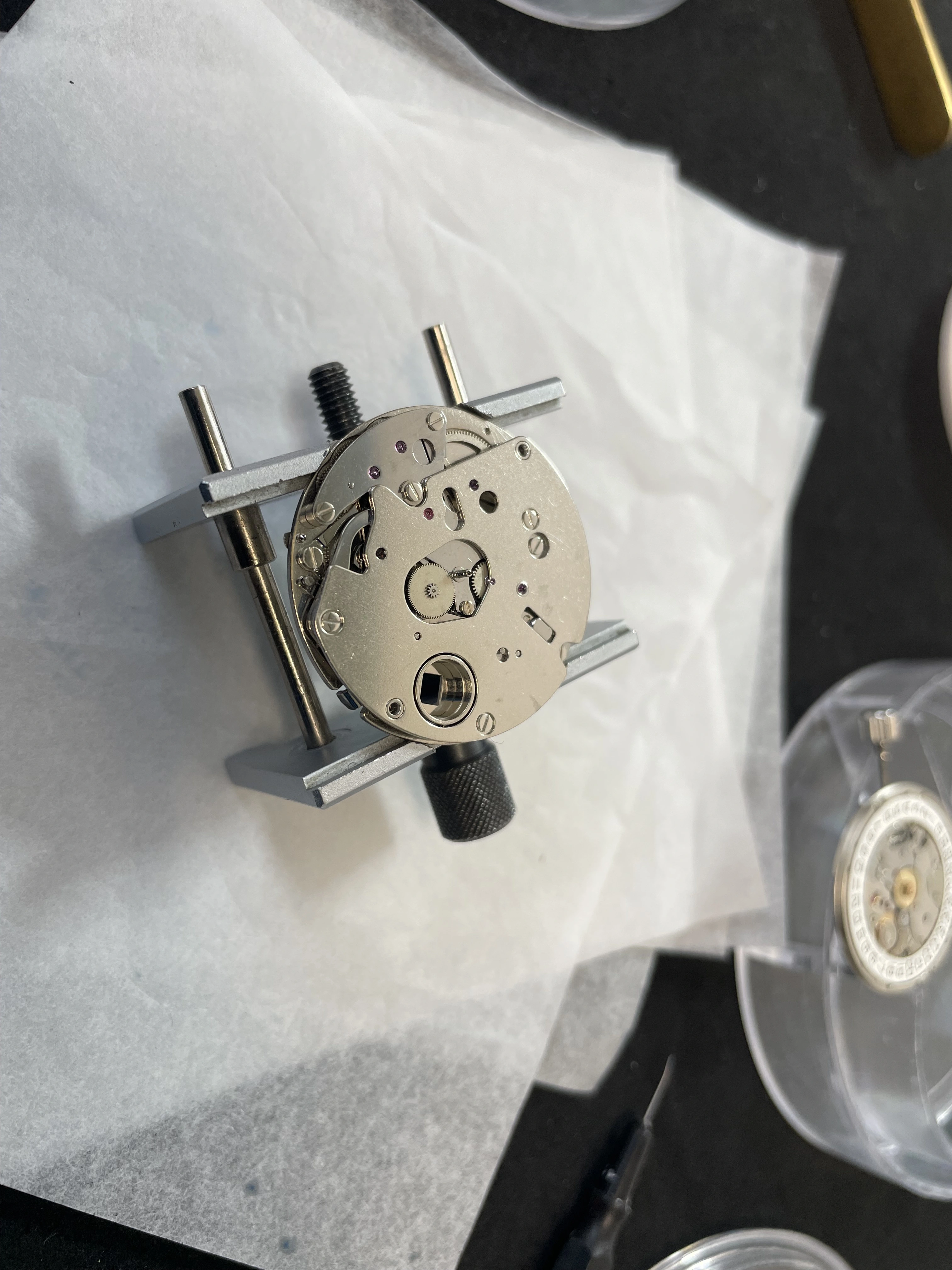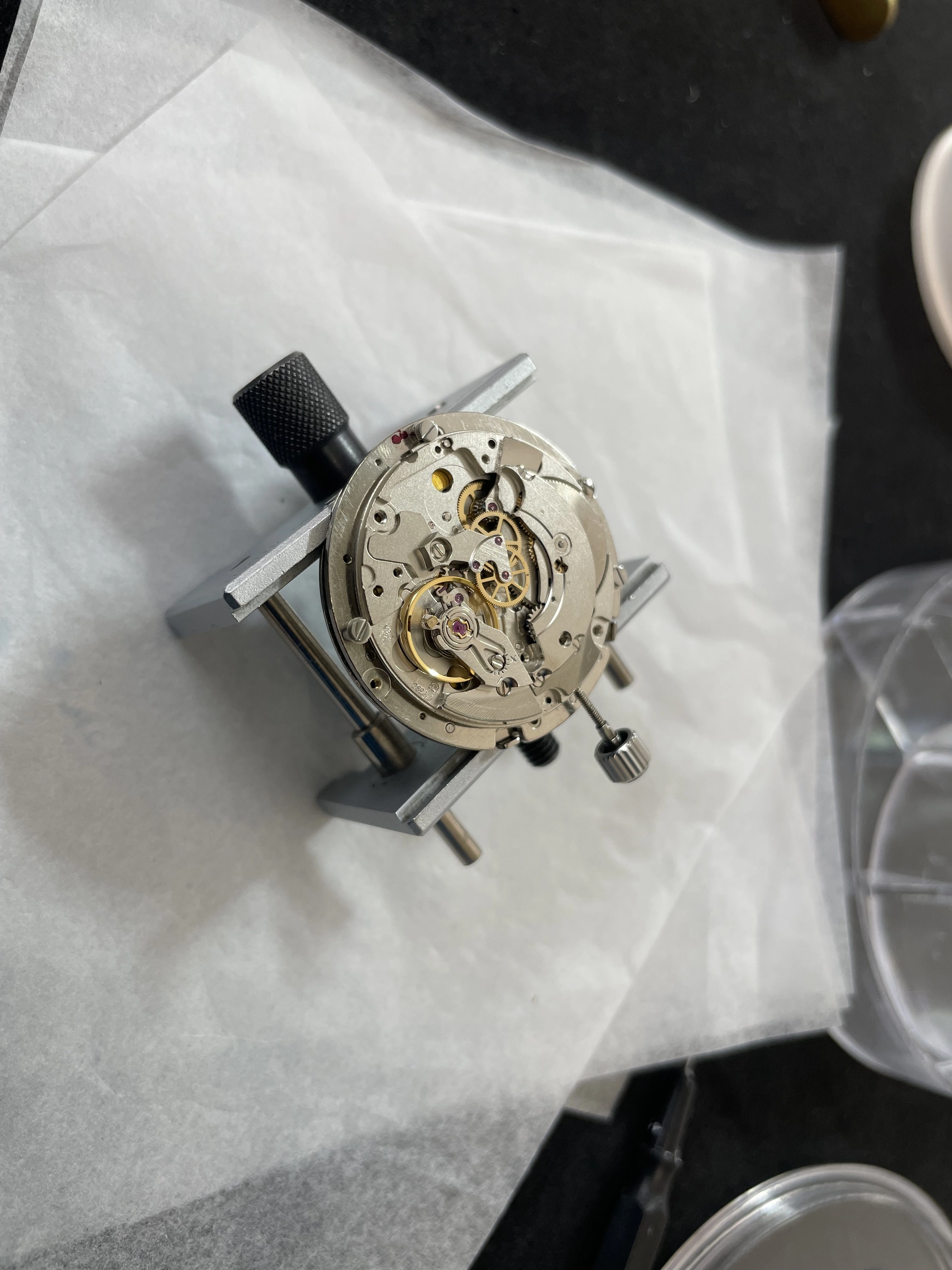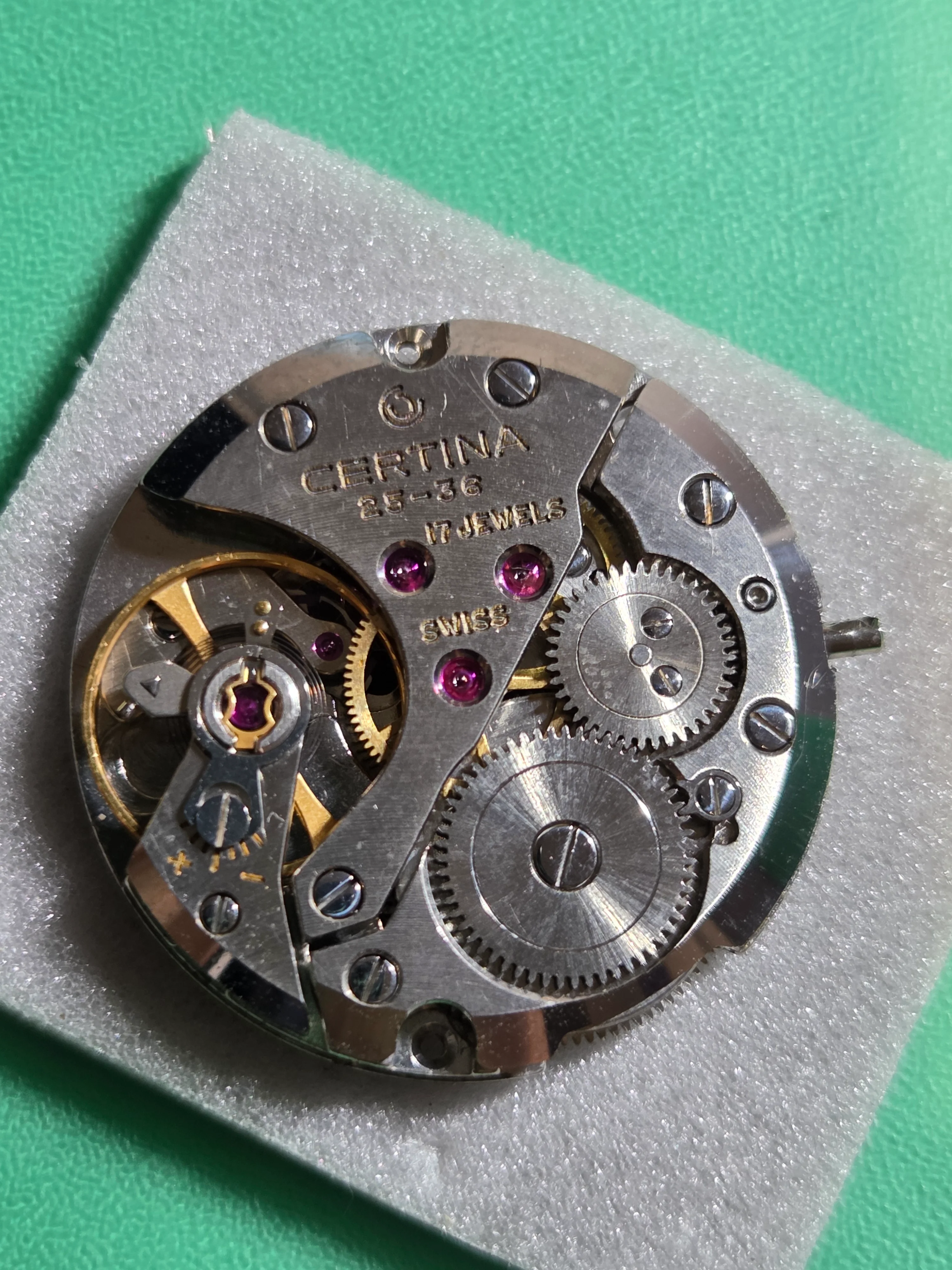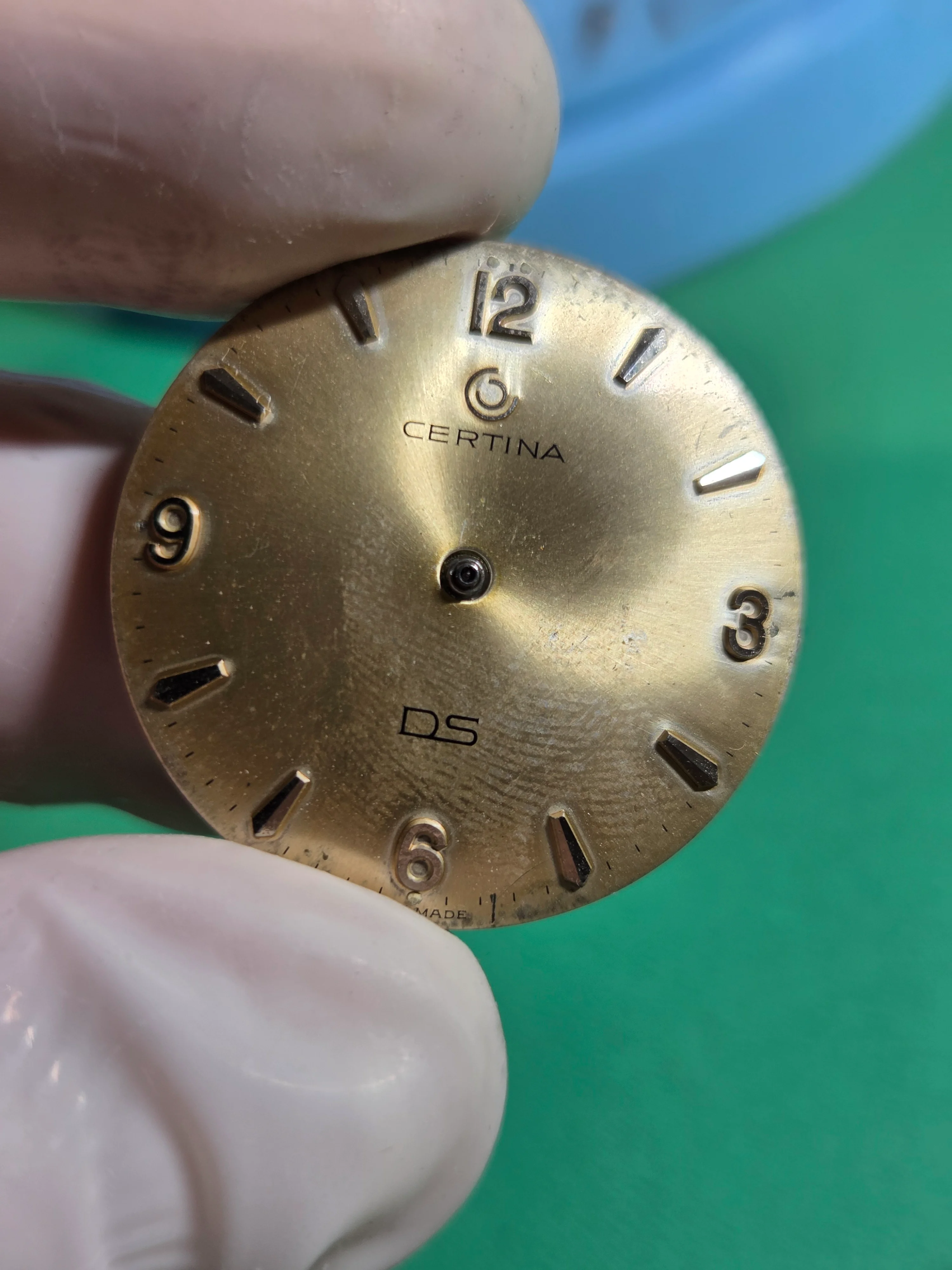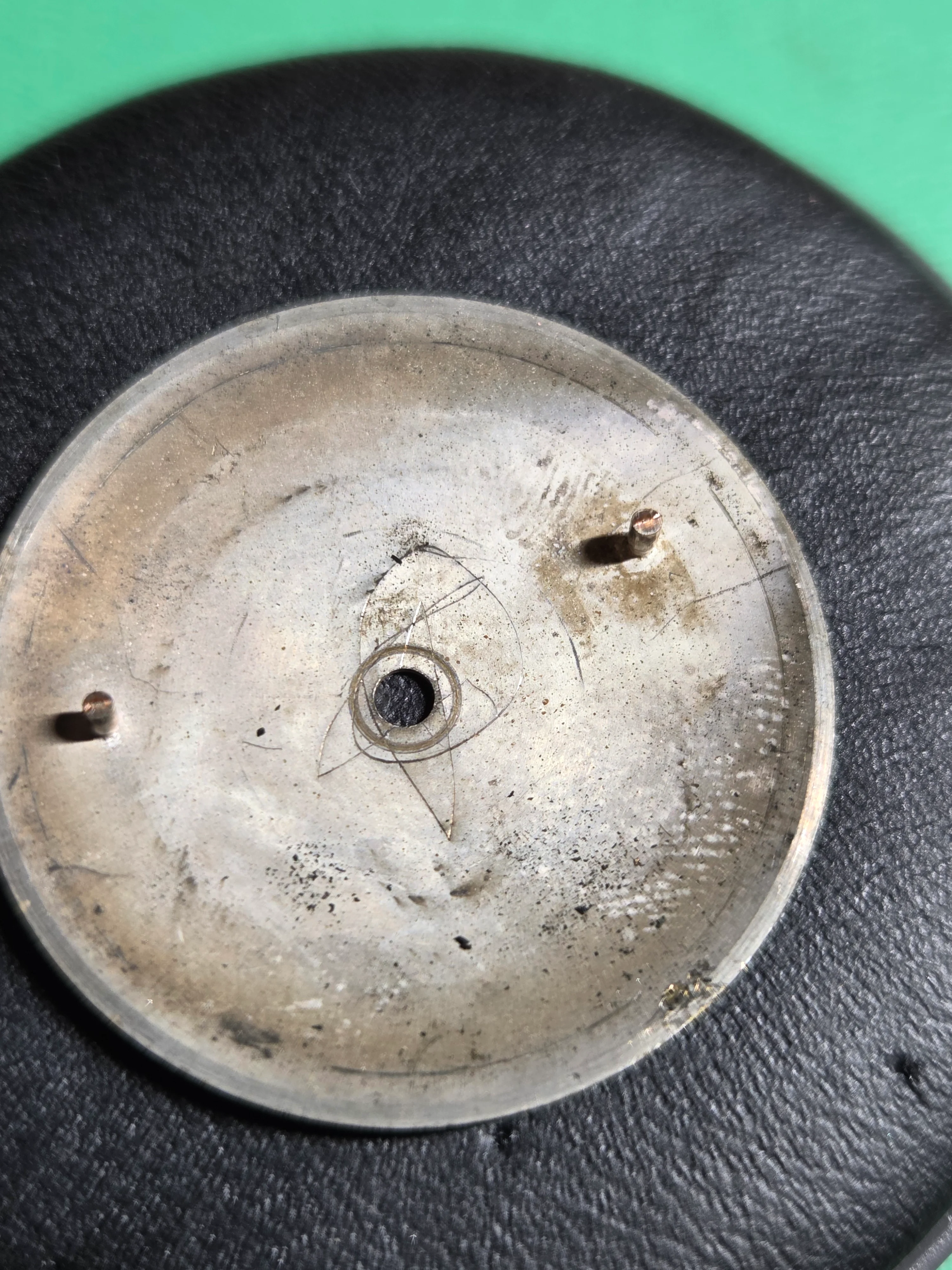 when I was polishing the crystal I was pleasantly surprised to find it was an original, but less pleasantly surprised to find fine circular scratches on the inside surface... luckily this is a white(now off white) dial so they dont stand out too much, so I will leave this be.