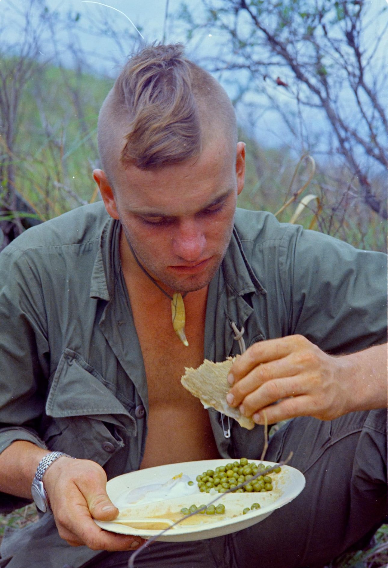 Posts 1,053 Likes 4,262 CBM1590 ·Apr 11, 2024 Plucked this pic from FB. Saved it to blow up and try to deduce the watch being worn. What you think? “SP4 Hendrick Greenwood eats his first hot meal in five days, Vietnam, September 8, 1967”