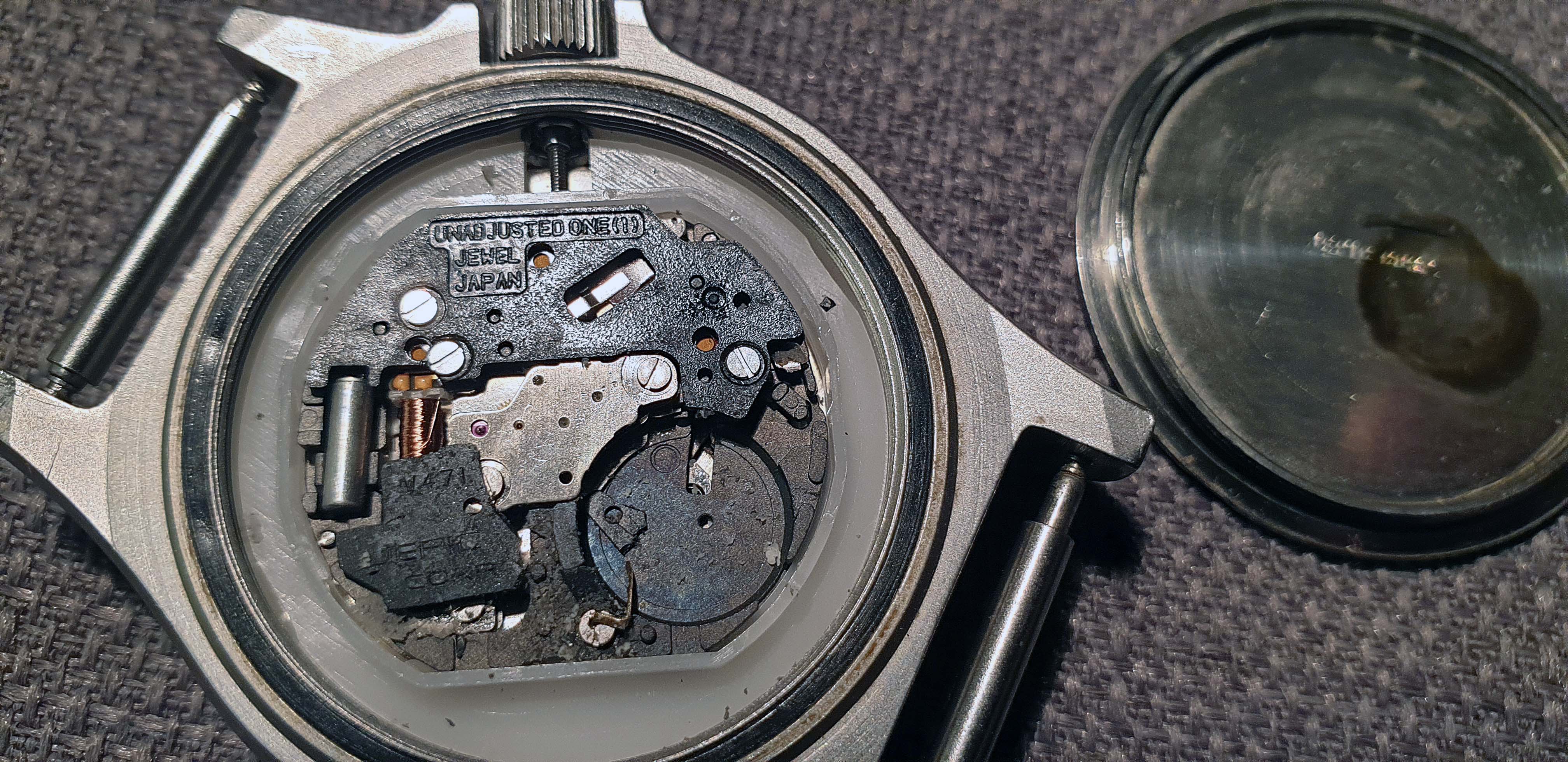As I see it, your only hope would be to try to pin down the identification of the subject watch using the numbers at the bottom of the dial below the 6, to try to pick up a donor watch with (hopefully) a useable movement. Forget trying to fit a mechanical, self-wind movement to the case. An auto wind movement would be about twice as thick, so no room in the case.