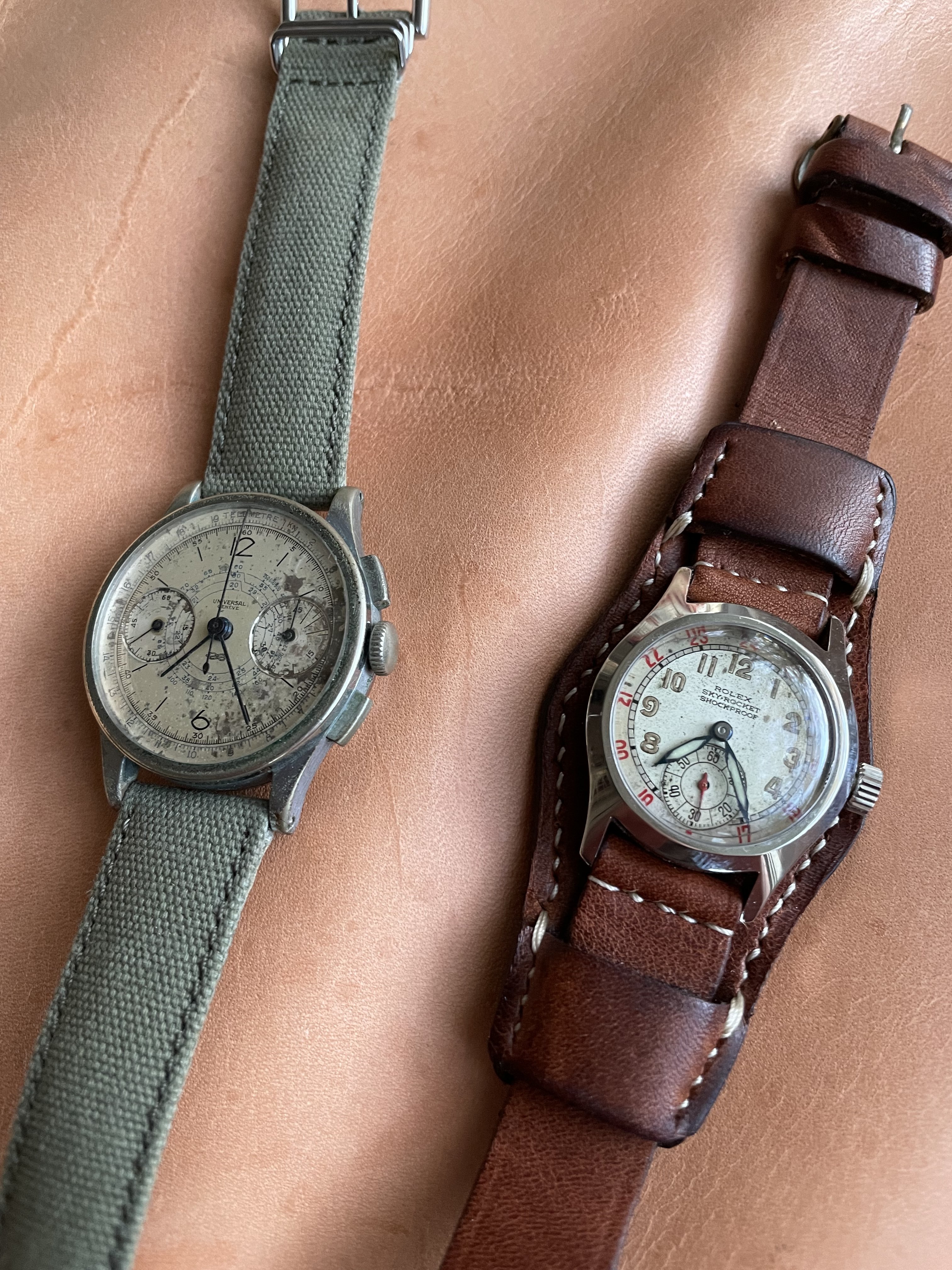 Tough question. I have pocket watches from the 19th century but my oldest wristwatch? It’s a toss up between my Rolex Sky-Rocket (late 30s? @Canuck may know) and my UG Compur. Both watches are freshly serviced and I wear the Rolex quite often. The UG? Not so much.
