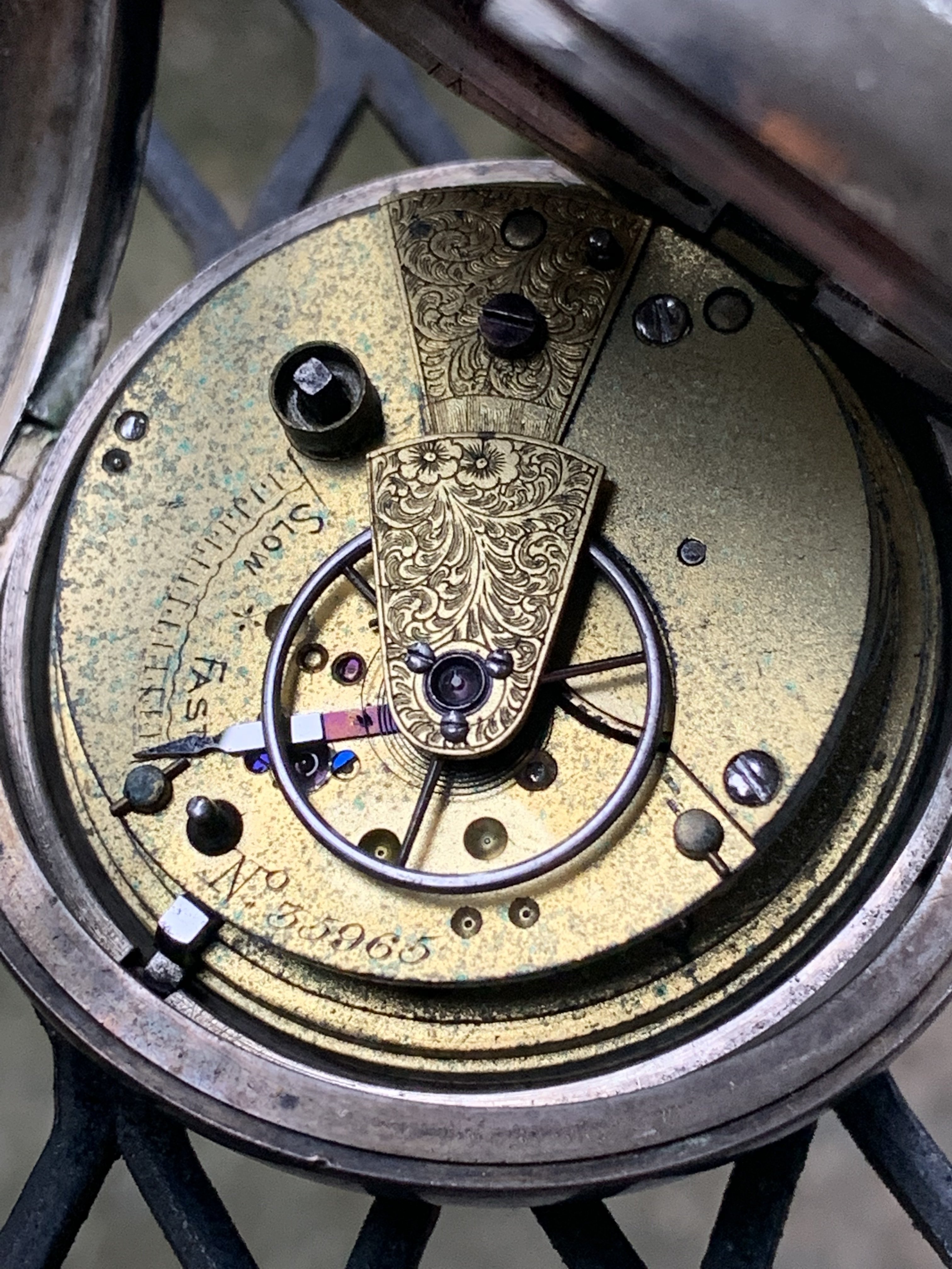 My oldest is this Jos. Johnson of Liverpool pair cased Pocketwatch dating to 1849 if I'm reading the hallmarks correctly.