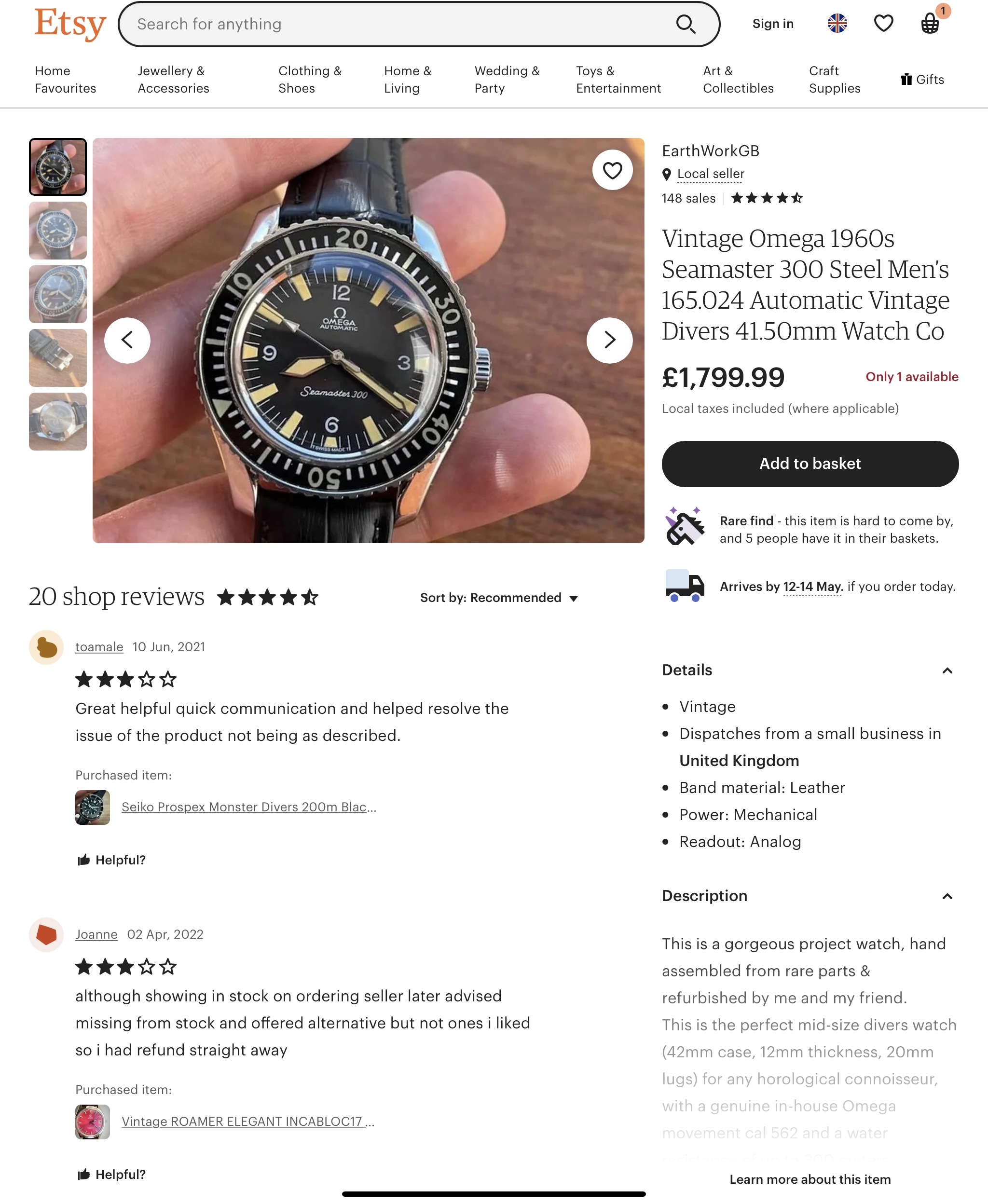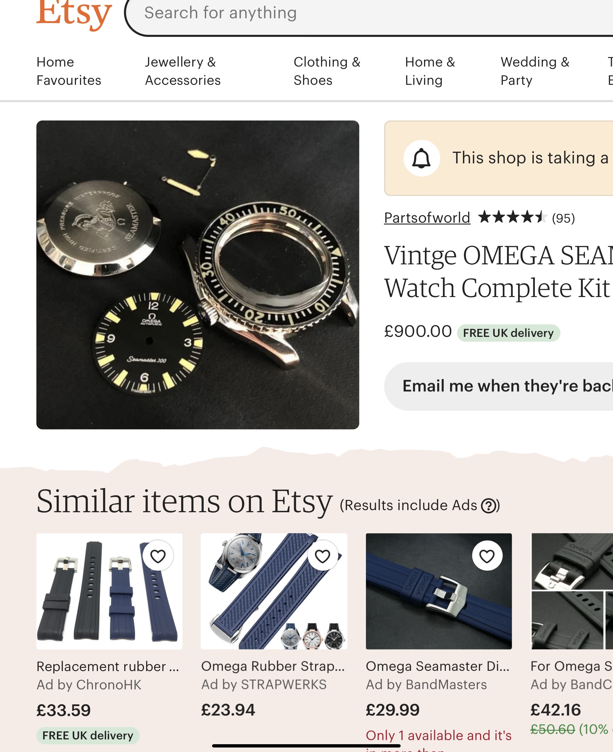 I’ve been on the hunt for a watchco seamaster and happened upon sellers on etsy doing full watch part kits I also saw someone selling one built from I suspect these kits on eBay now I’m not hundred percent sold on if these are genuine omega parts, I’ve looked very closely at the dials and the wording looks a little off especially the e which has a downhill curve also all the dials say Swiss t on the kits and made watches would they really be that many t dials available? Also the seconds hand is a silver colour not white