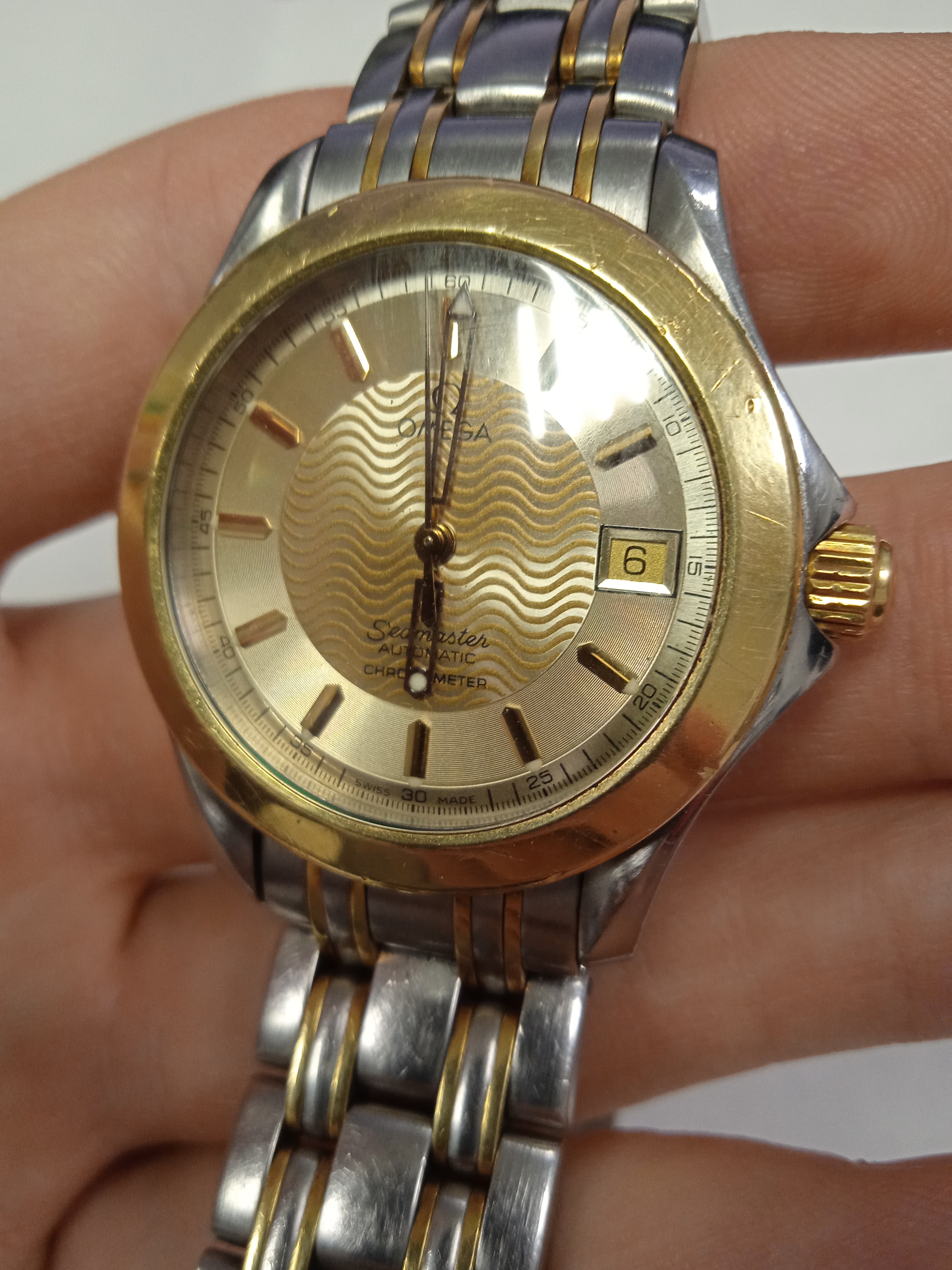 This appears to be a Semaster 120 from the nineties, a sort of dressier predesessor to the "Bond" Seamaster 300s.