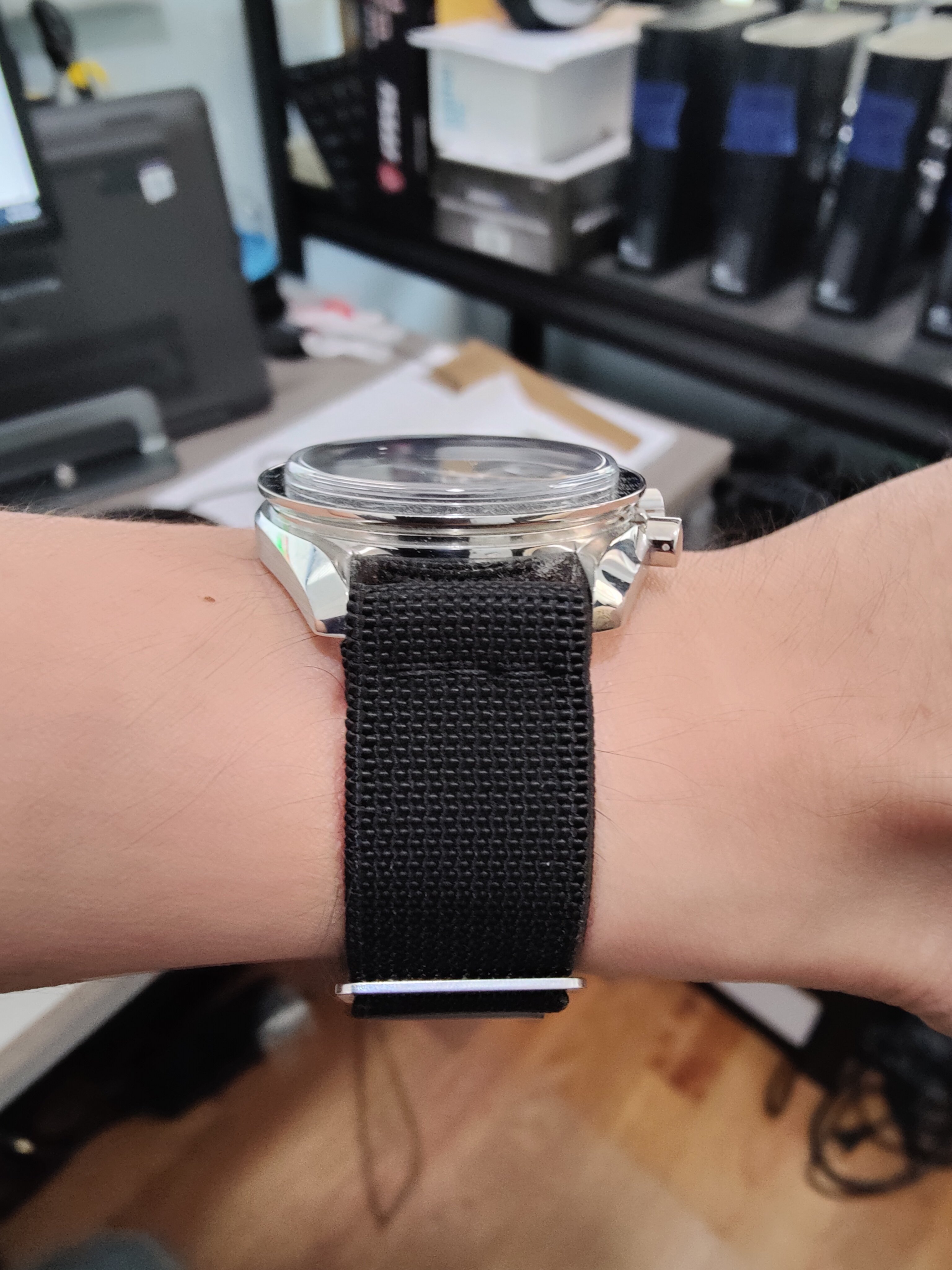 路Quick query on straps and specifically I believe one of the fabric ones (not nato) 2 piece. Was there an OEM one that had curved springs bars in that bought the strap inline with the case more, rather than have a gap? In my head I'm sure it was a blue strap on the Snoppy edition or black strap.