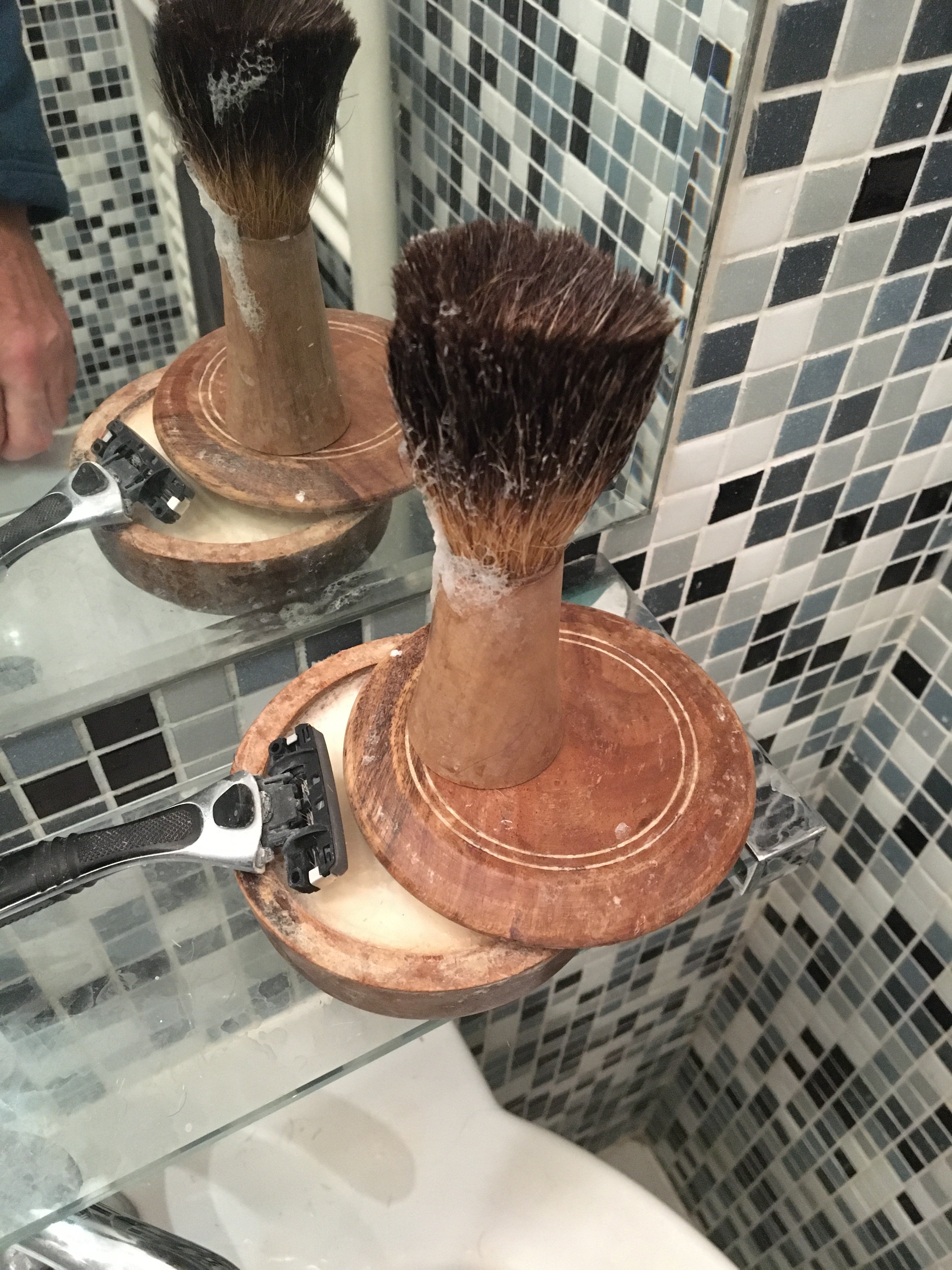 My eldest son and I spent an afternoon a few years back re-crafting three vintage Ever Ready brushes, outfitting them with silvertip badger knots. Since then one of the two Ever Ready C40s has been the daily shave brush for me.
