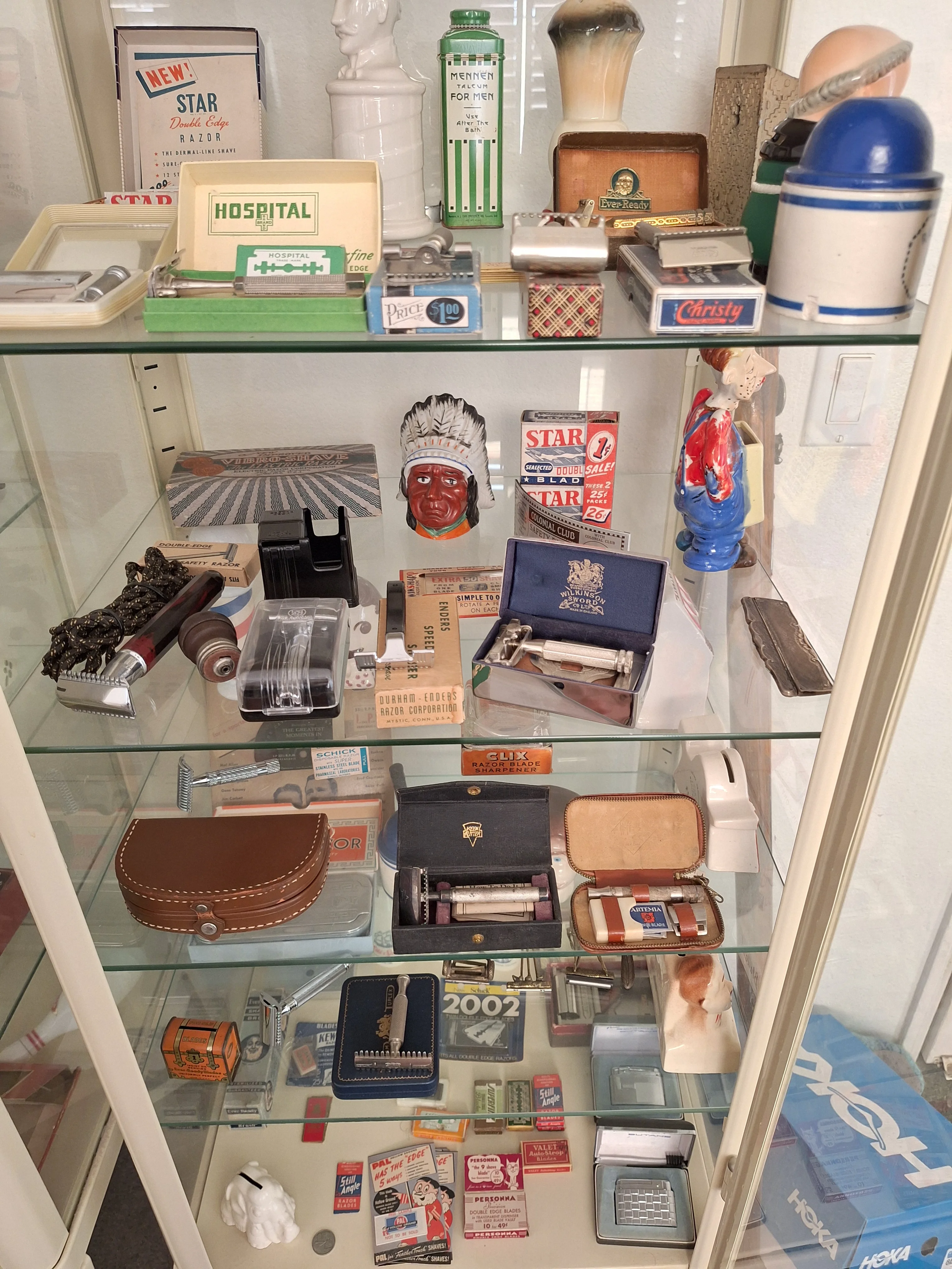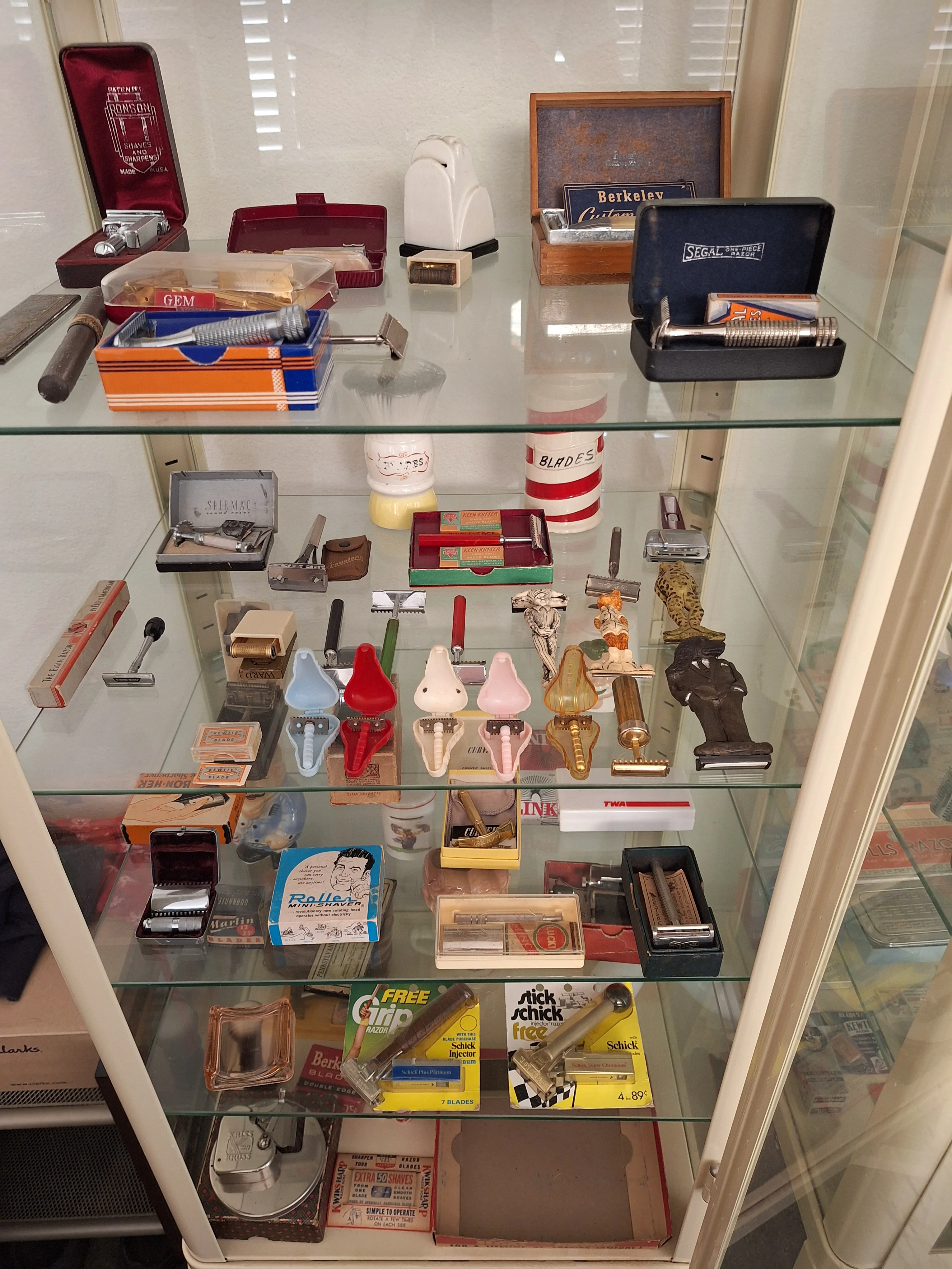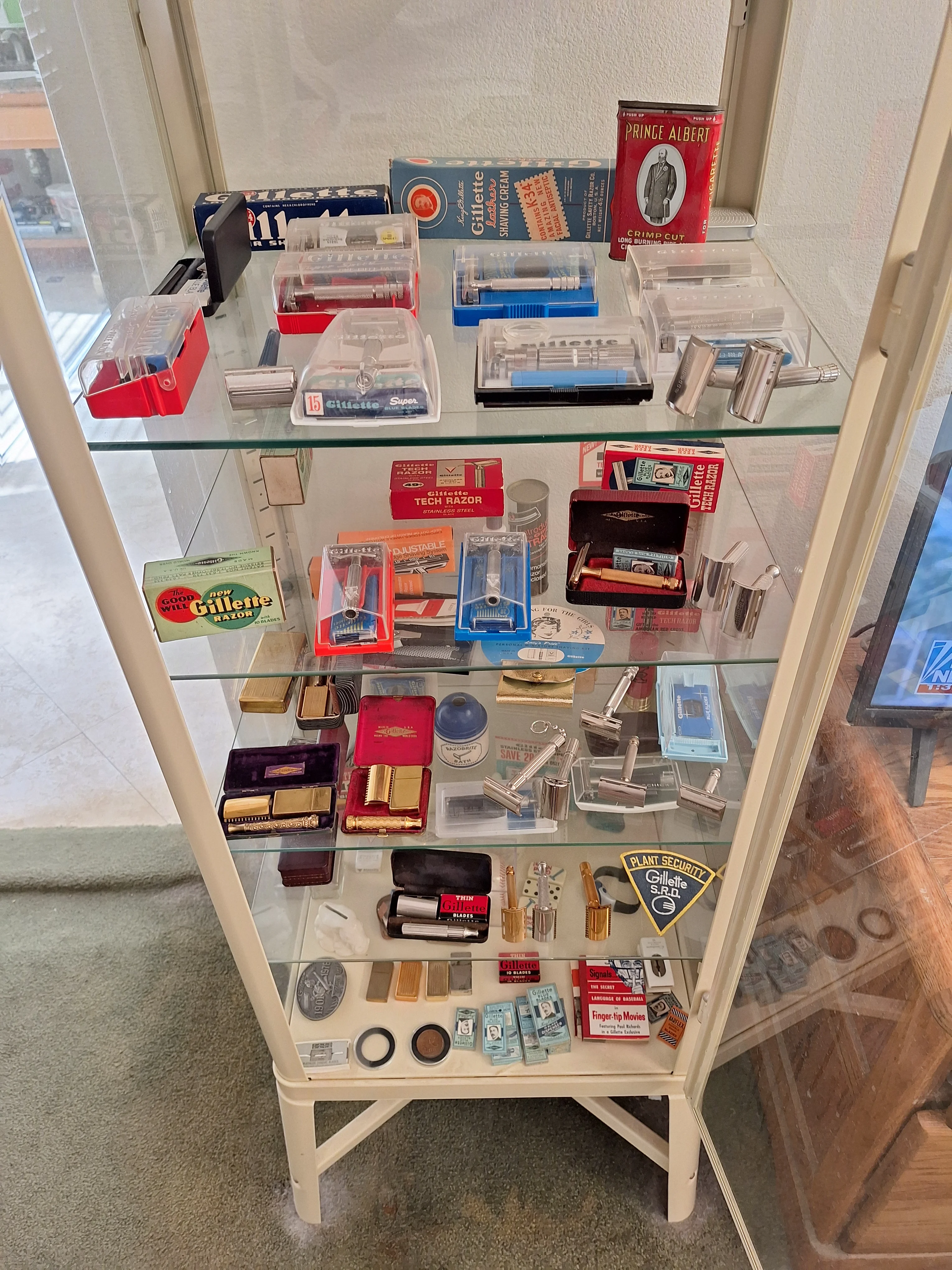 This 1930s Gillette Aristocrat is the most used razor. Makes a person feel like Cary Grant, Clark Gable, or Gary Cooper to use it. I generally use the collected razors in rotation. It's a week of the Aristocrat and then a week of which ever other vintage Gillette in the collection gets the nod. All the major Gillette models and variants since 1904 have been gathered in over the years and are stowed in an antique glass front medicine cabinet in the bathroom. The razors and shave ritual are a bit of whimsy and provide a measure of fun in what is otherwise a daily drudgery.