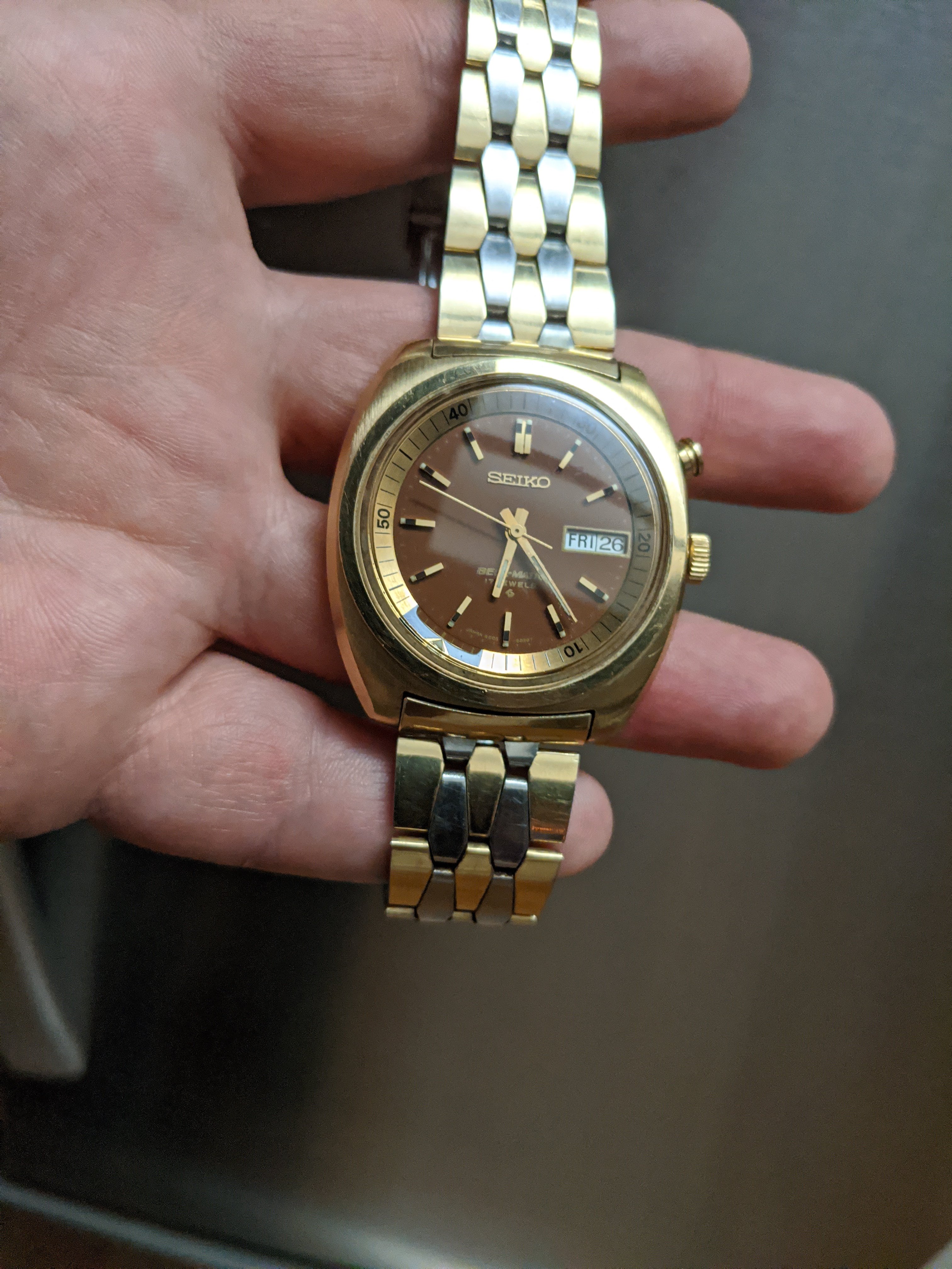 ·I found a treasure at a local store yesterday, a funky two-tone version of the Seiko 4006 BellMatic from 1971. I collect vintage Seiko, so I plunked down $150 for it, even though I didn't really covet this model. "Meh, I'll keep it in the box a few months, wear it a few times then flip it", I thought.