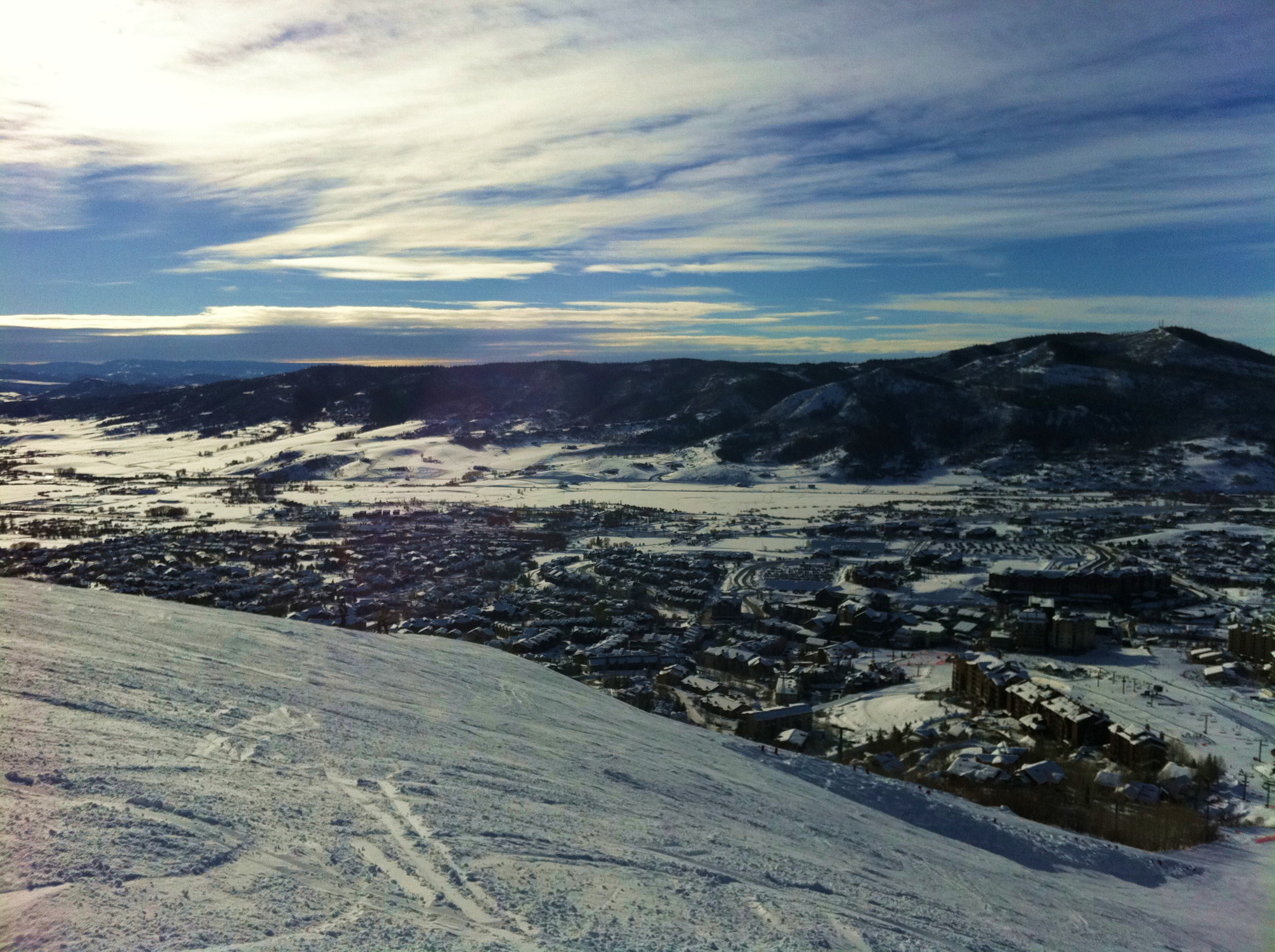 After a full day of skiing, this spot on the mountain above Steamboat Springs was quite heavenly....